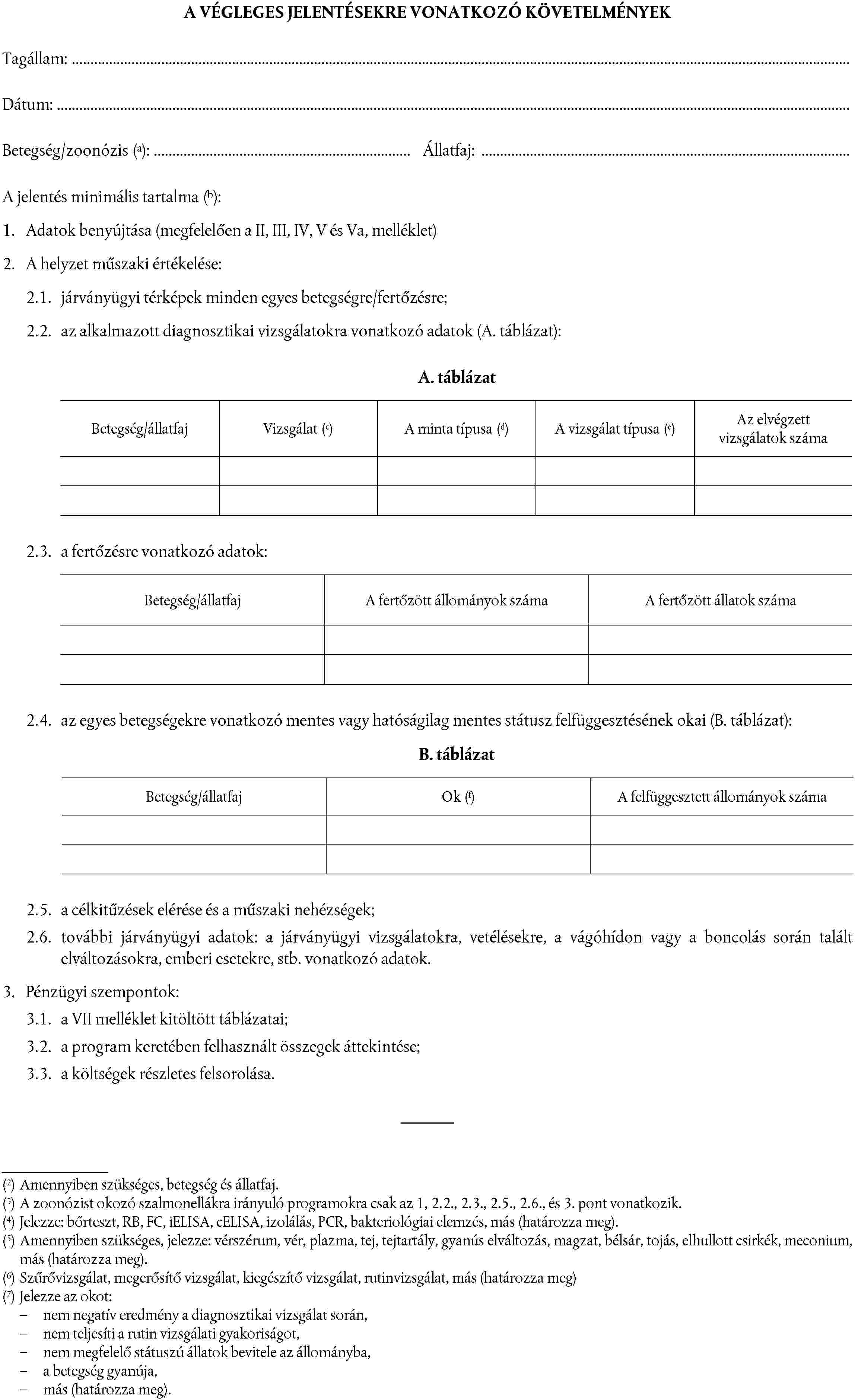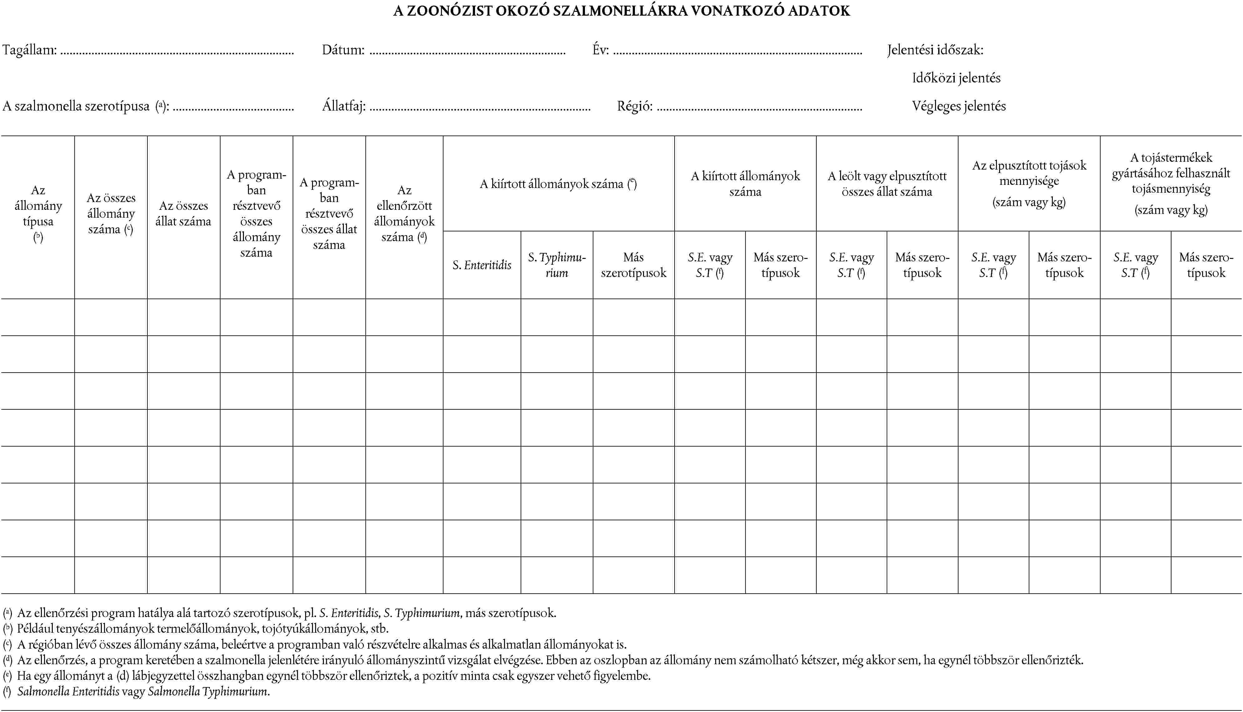A zoonózist okozó szalmonellák tekintetében a végleges jelentések legalább az Va., a VI. és a VII. mellékletben meghatározott információkat tartalmazzák.