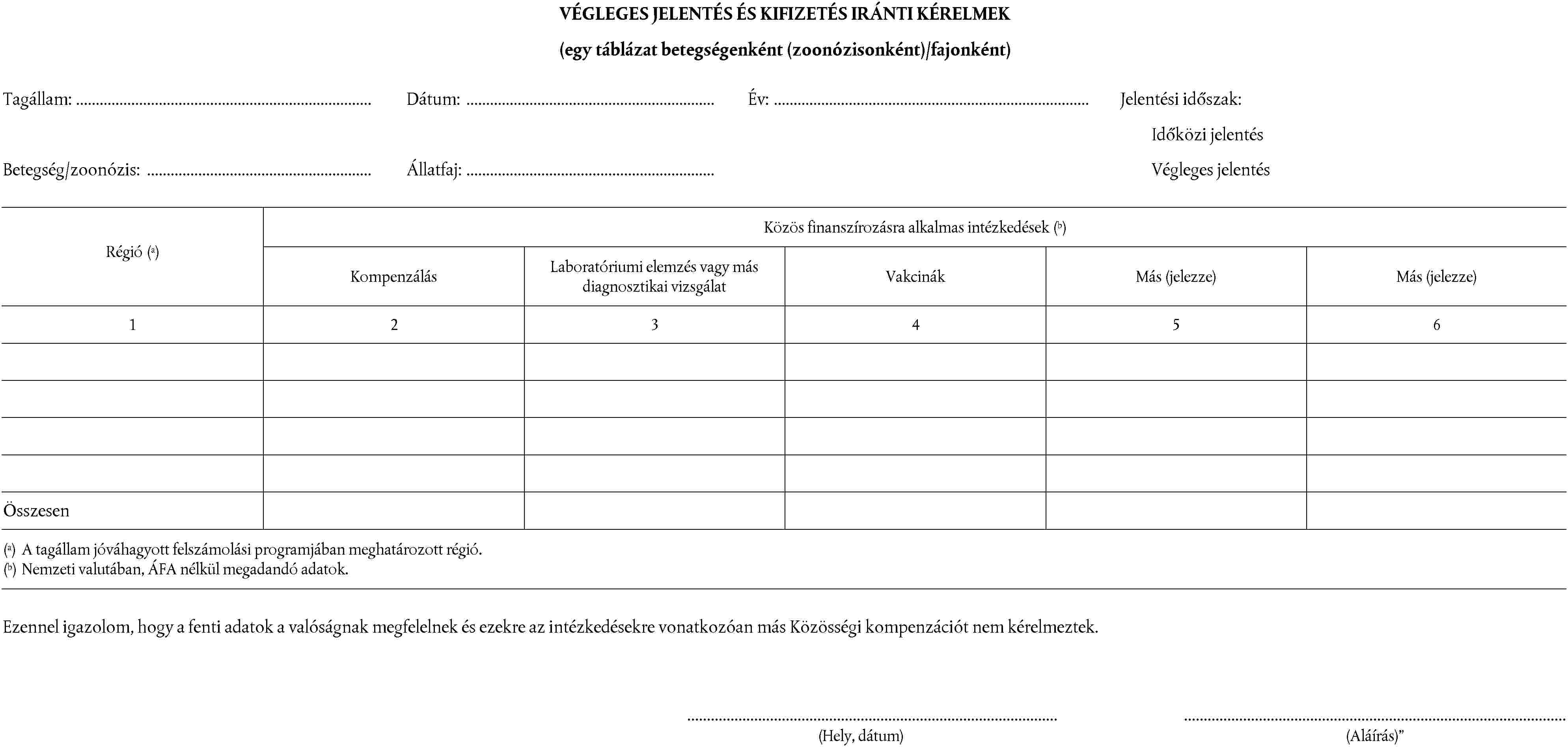 (1) A kifizetés iránti kérelmeket tartalmazó végleges jelentések a következő betegségekre vonatkozóan - megfelelően -, legalább a II., III. és IV. mellékletben meghatározott információkat tartalmazzák: