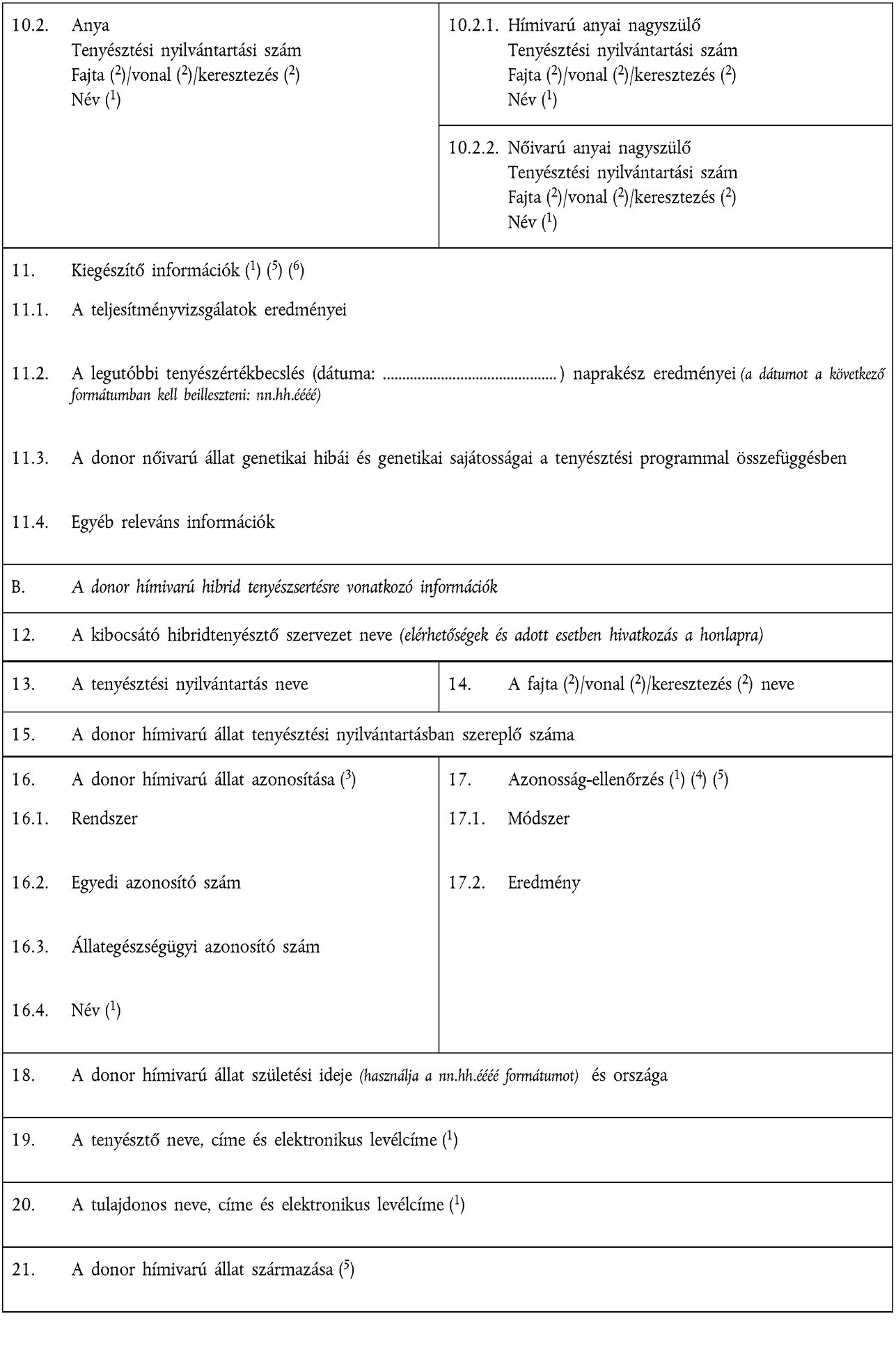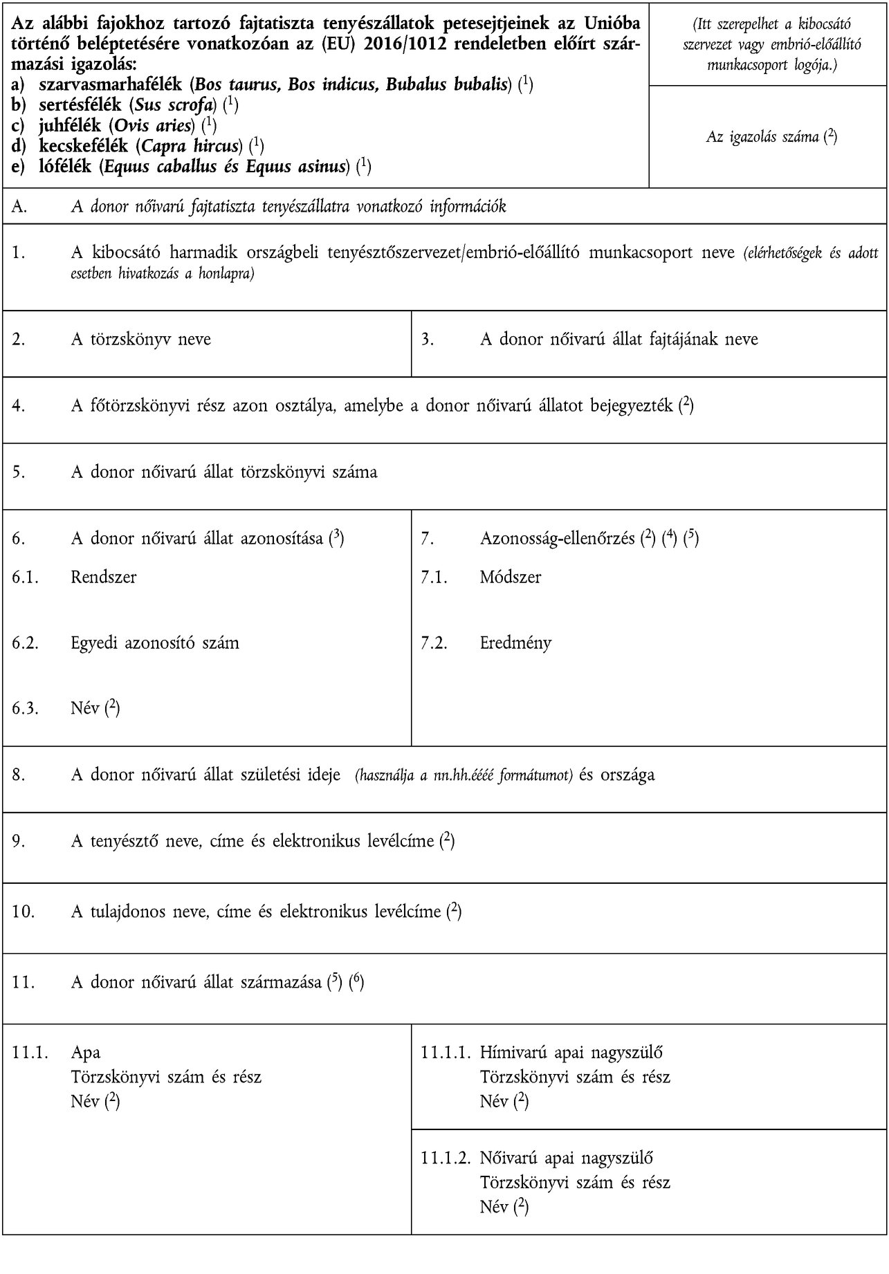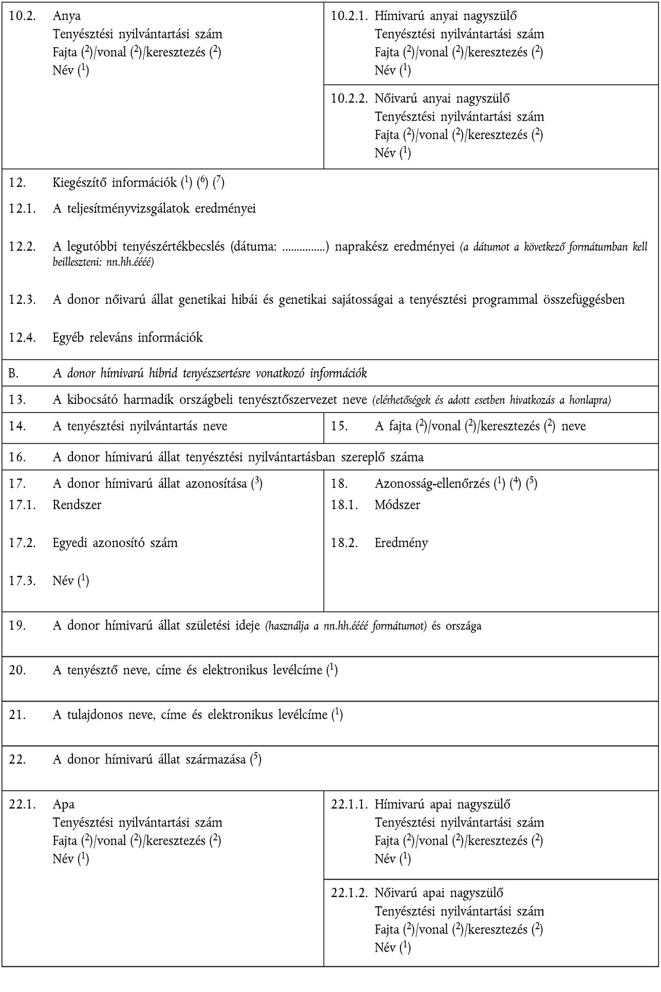 (4) Ezen információ megadását az (EU) 2016/1012 rendelet 22. cikkének (2) bekezdése alapján a petesejtek gyűjtéséhez igénybe vett hibrid tenyészsertések tekintetében előírhatják az azon tenyésztési nyilvántartást vezető hibridtenyésztő szervezetek, amelybe a donorállat utóda bejegyzésre kerül.