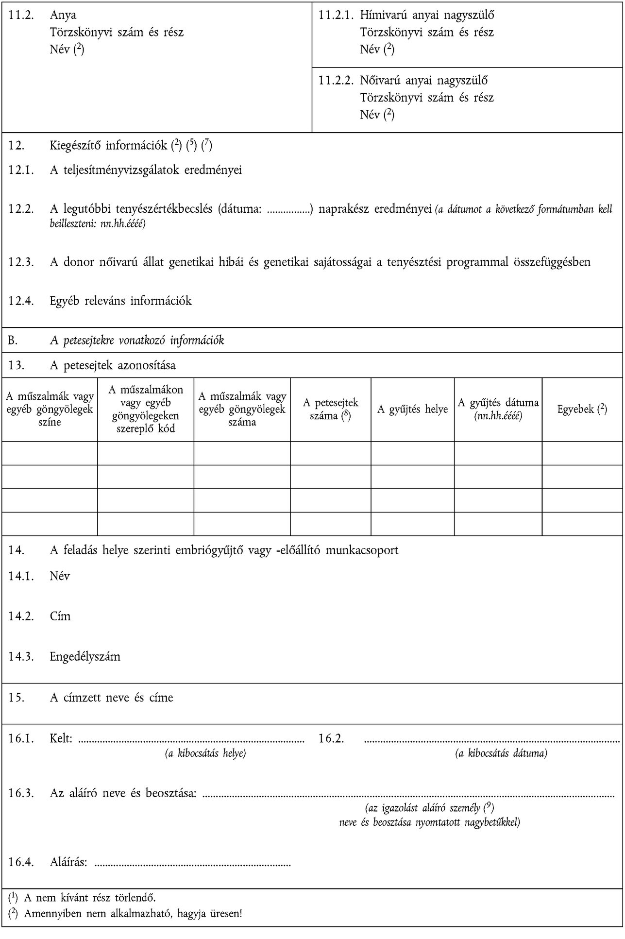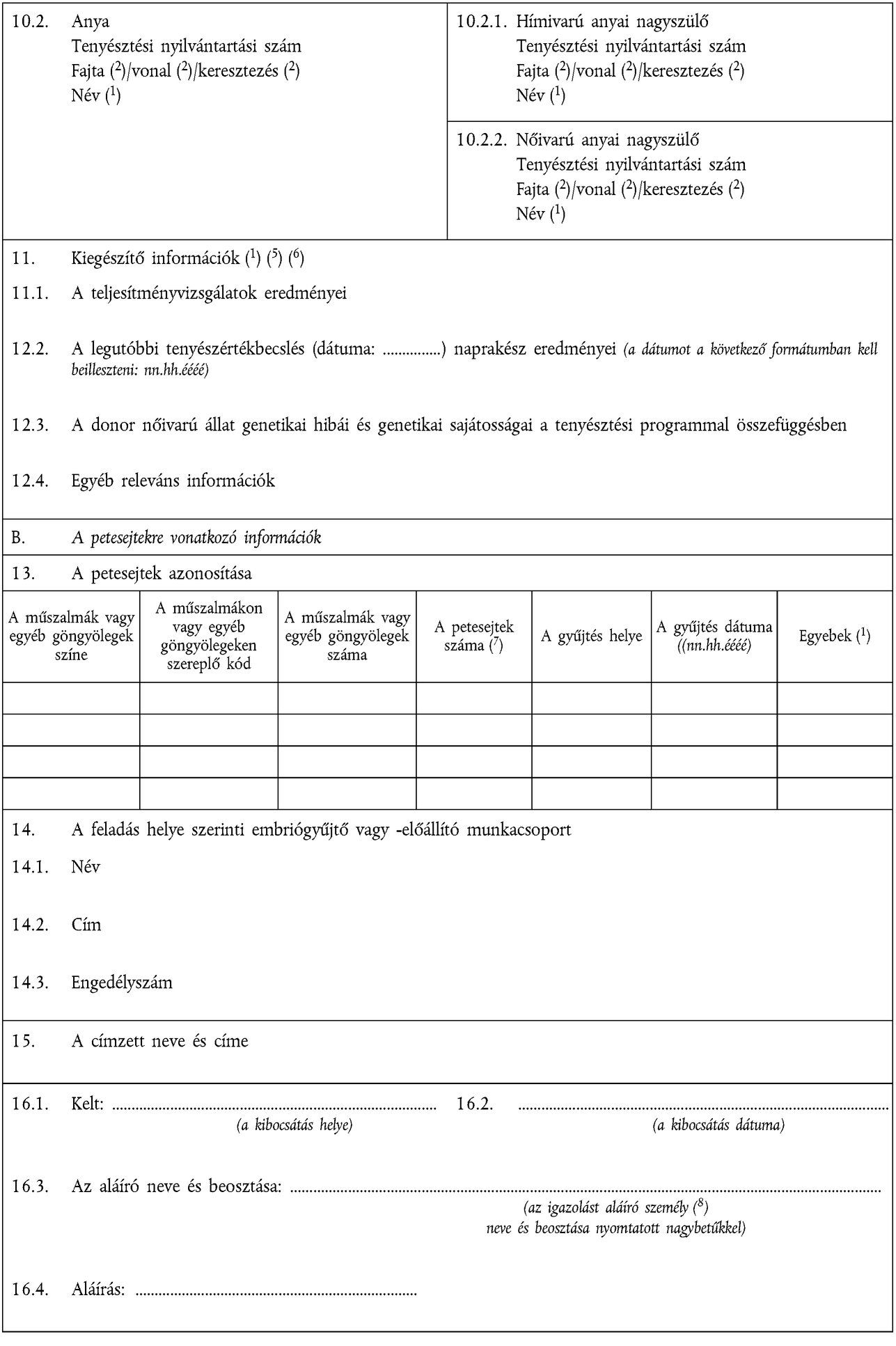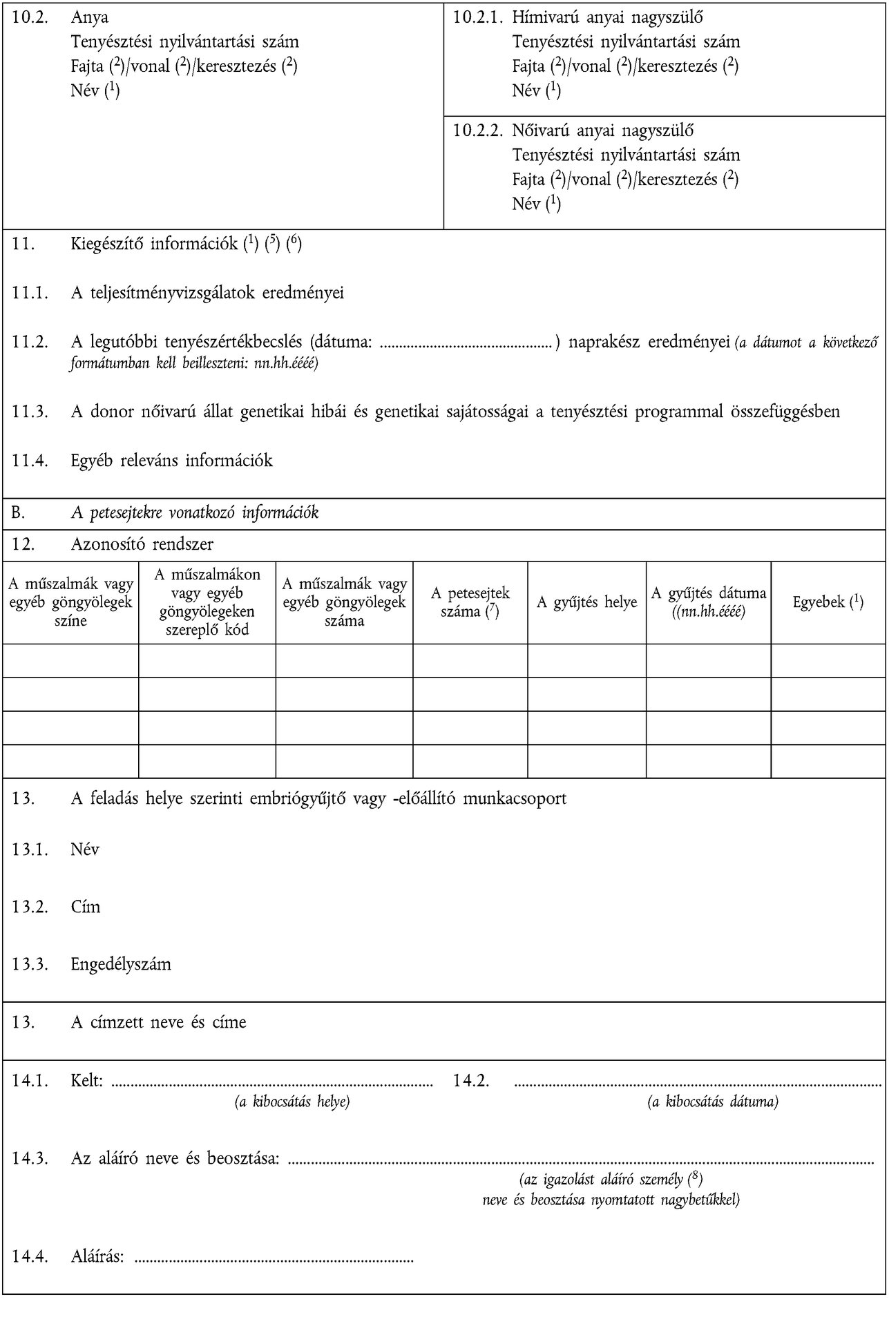 (4) Ezen információ megadását az (EU) 2016/1012 rendelet 22. cikkének (2) bekezdése alapján a petesejtek gyűjtéséhez igénybe vett hibrid tenyészsertések tekintetében előírhatják az azon tenyésztési nyilvántartást vezető hibridtenyésztő szervezetek, amelybe a donorállat utóda bejegyzésre kerül.