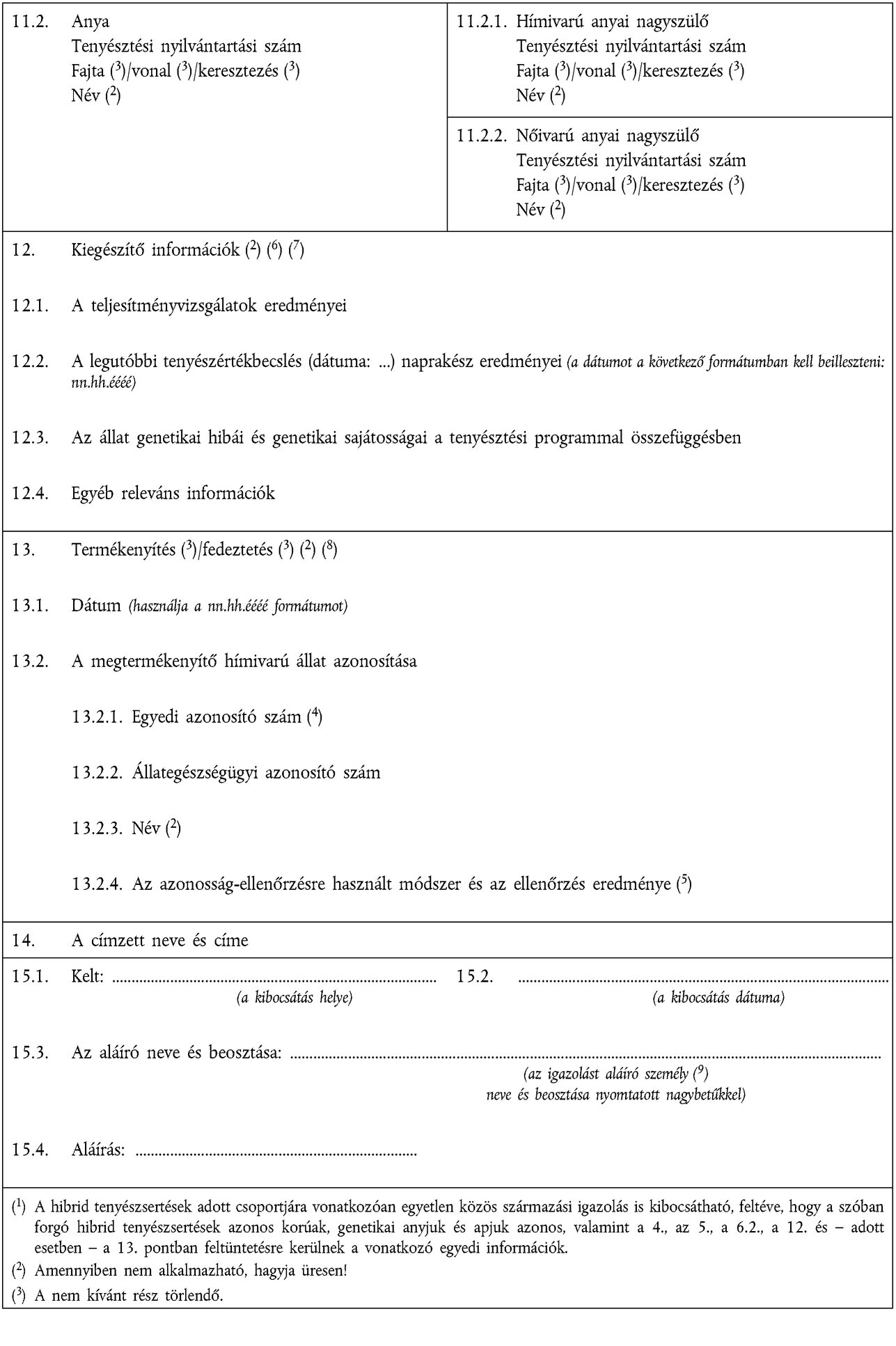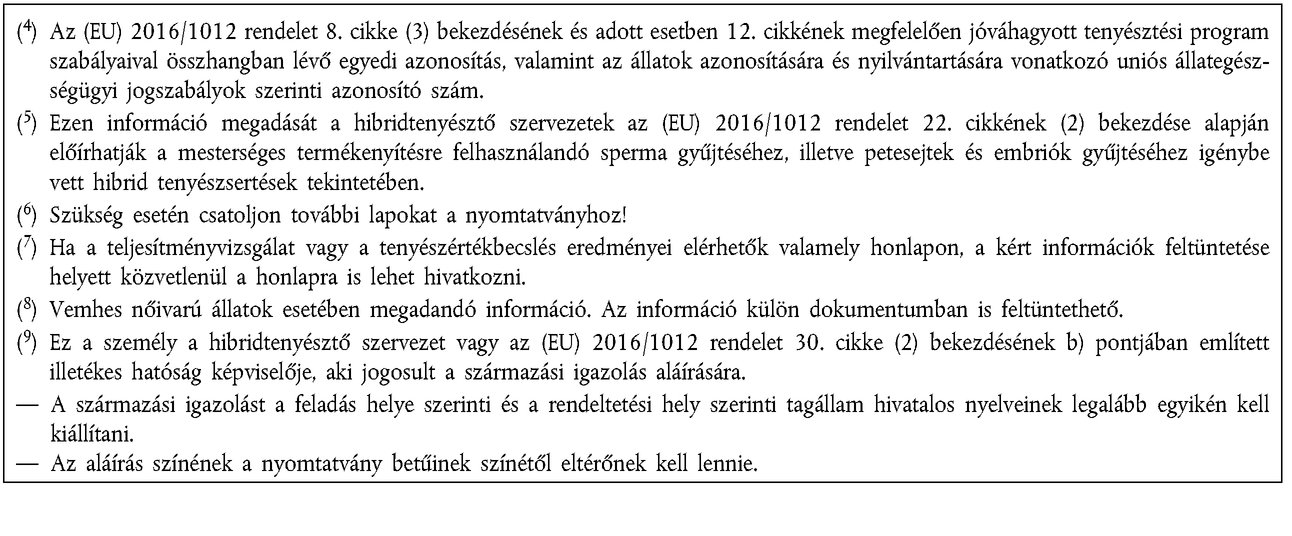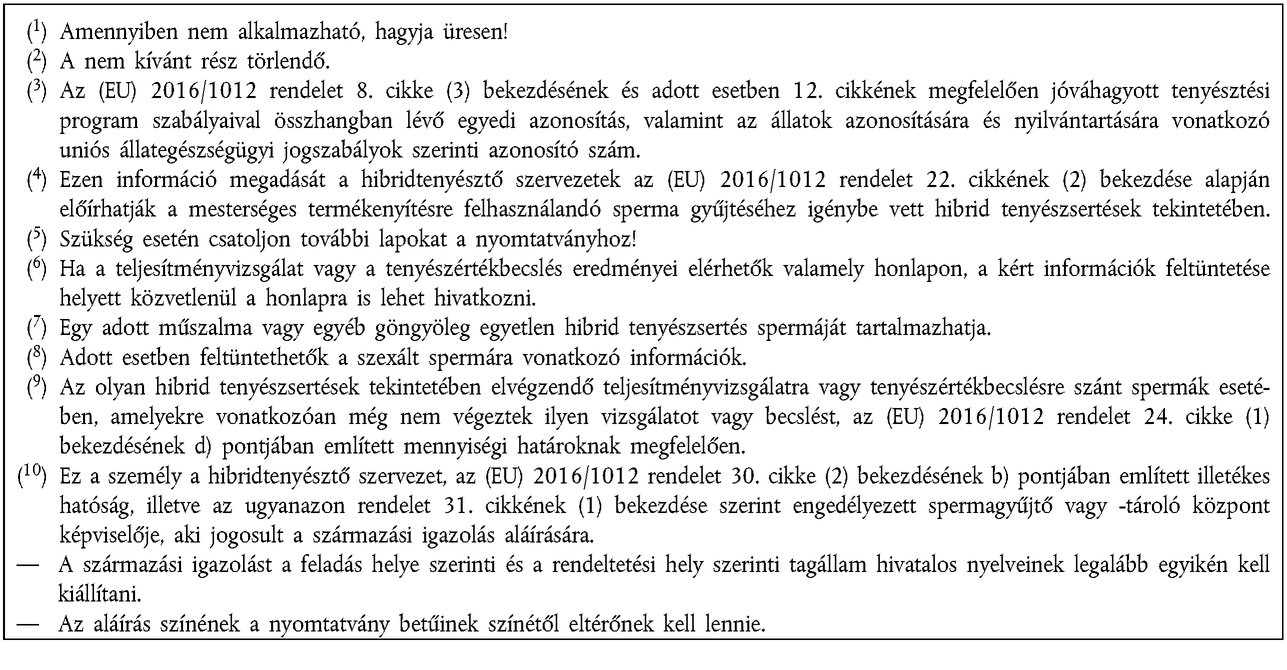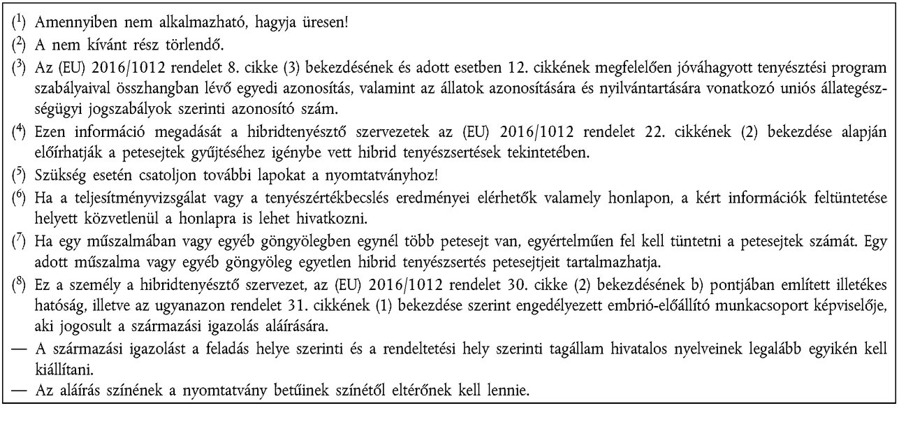 A HIBRID TENYÉSZSERTÉSEK ÉS SZAPORÍTÓANYAGAIK UNIÓBA TÖRTÉNŐ BELÉPTETÉSÉHEZ KAPCSOLÓDÓ SZÁRMAZÁSI IGAZOLÁSOK MINTÁI