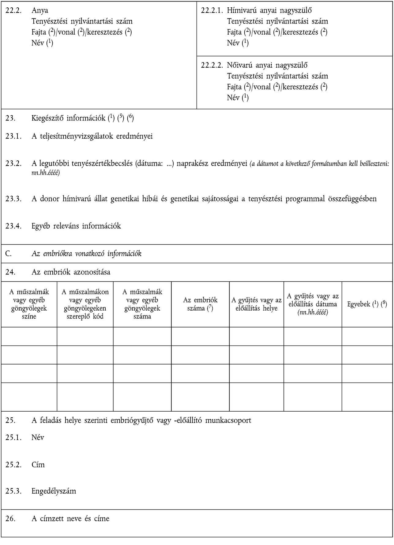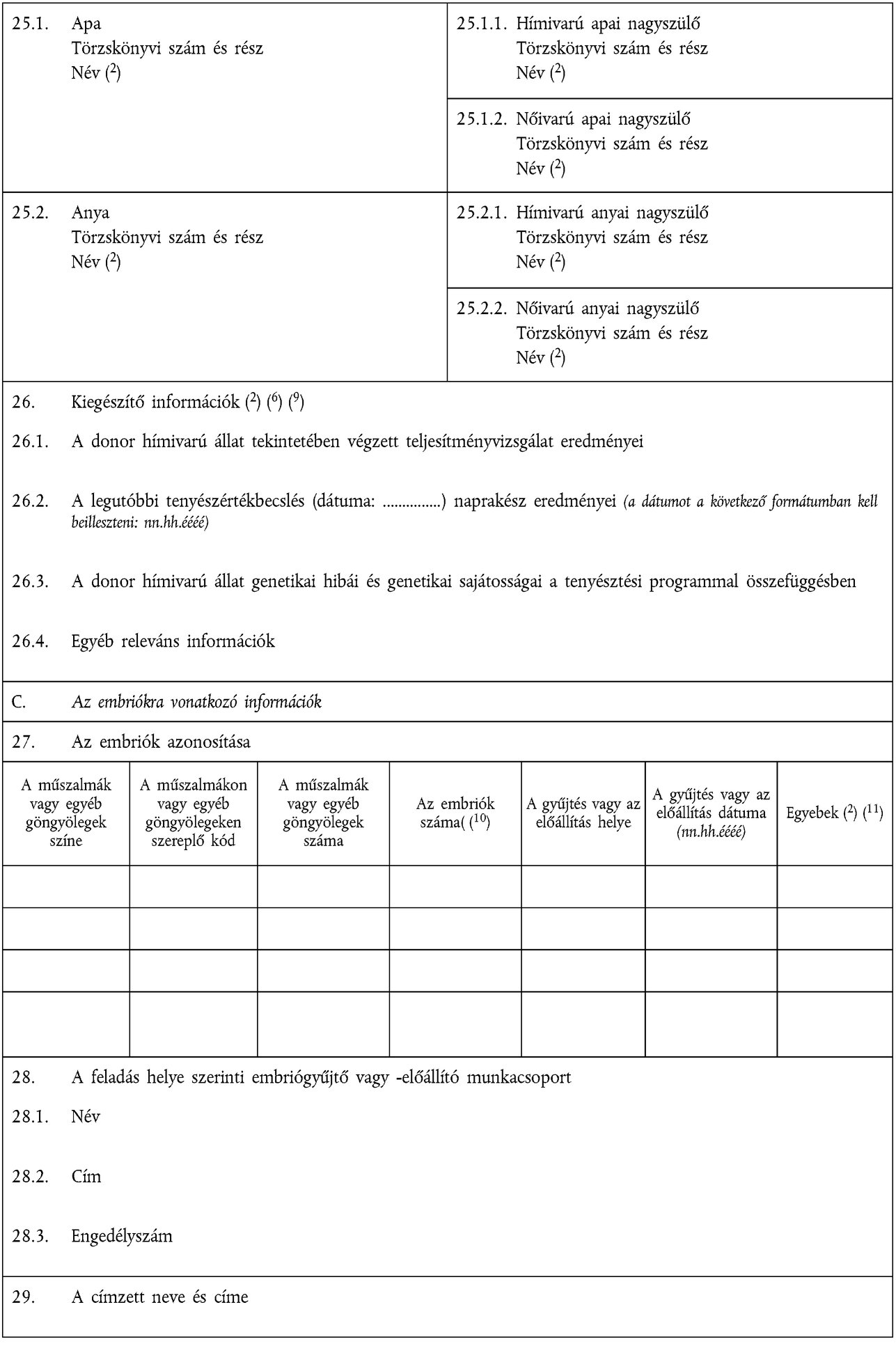 (9) Adott esetben feltüntethetők a szexált embriókra vonatkozó információk.
