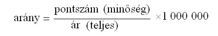 Név | Teljes ár (euró) | A minőségre kapott pontszám | Minőség/ár arány |