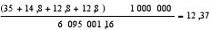 188. Az említett képletnek a felperes által benyújtott ajánlatra történő alkalmazásával, azaz a felperes ajánlatában megjelölt teljes ár (6095001,16 euró), valamint egyfelől az első bírálati részszempontra adható maximális pontszám (35 pont), másfelől azon pontszámoknak, amelyeket a felperes ajánlata a 2-4. sz. részszempontokra ténylegesen kapott, azaz 14,8, 12,8, illetve 12,8 pontnak (lásd a fenti 24. pontot) a behelyettesítésével a következő eredményt kapjuk: