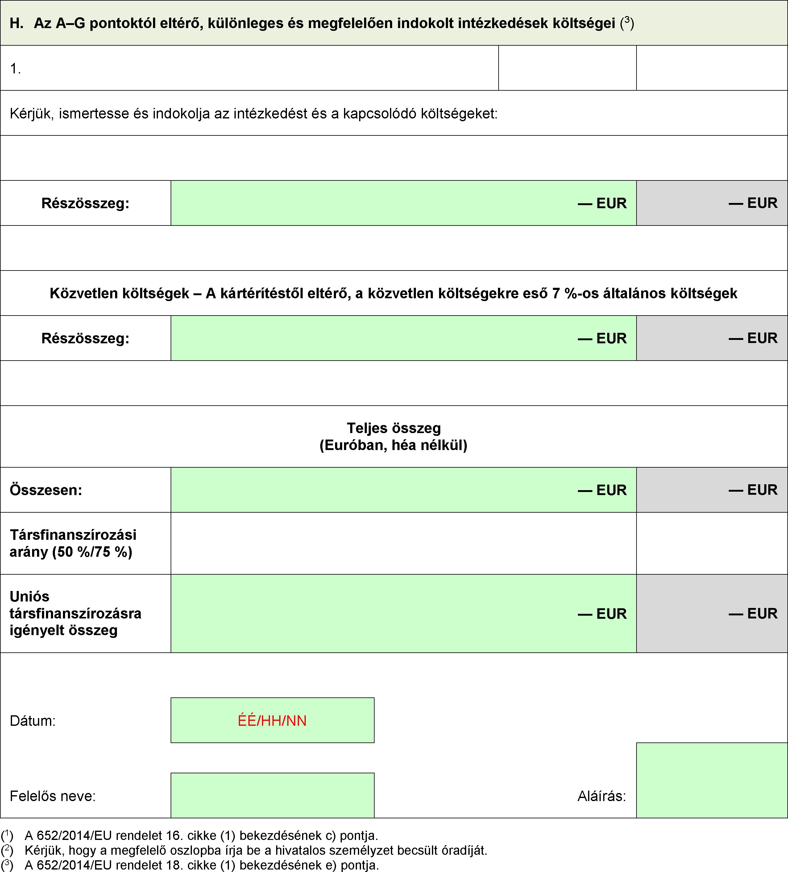 a) a becsült működési költségek a 652/2014/EU rendelet 18. cikke (1) bekezdésének a) pontjában említettek szerint;