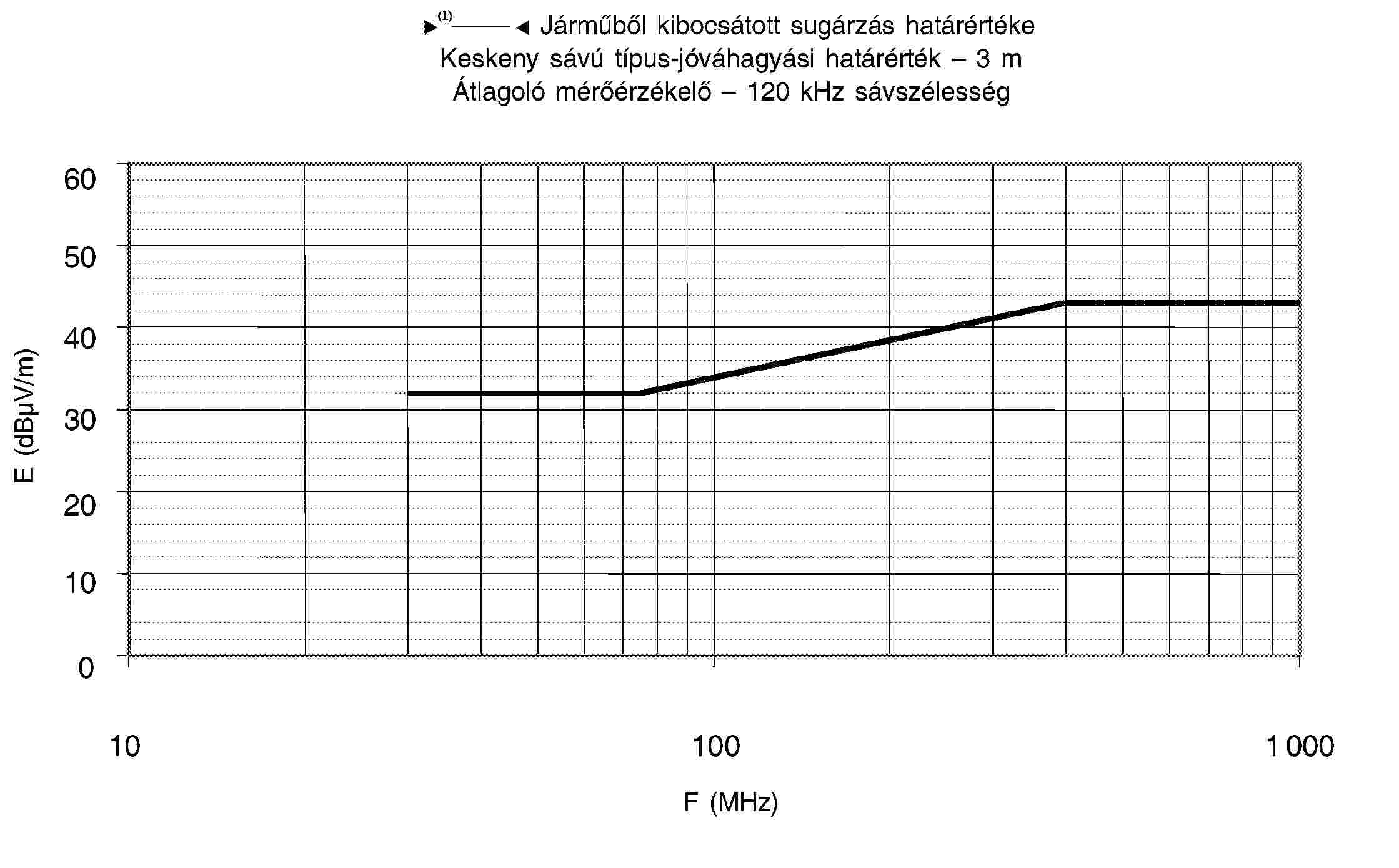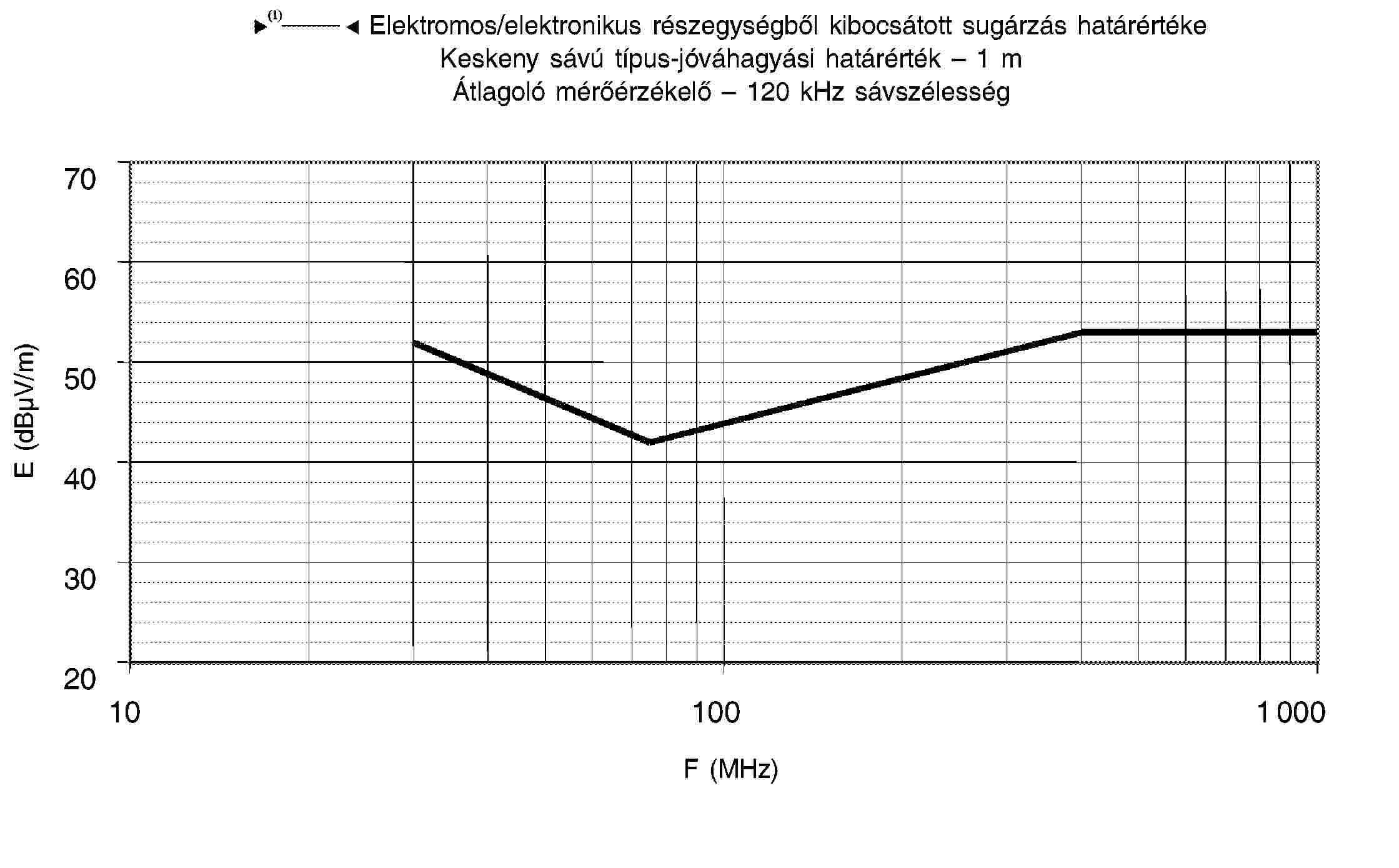 4.1. A határértékek a teljes 30-1 000 MHz frekvenciatartományra vonatkoznak a félsüketszobában vagy szabadtéri vizsgálati helyszínen végzett mérésekhez.