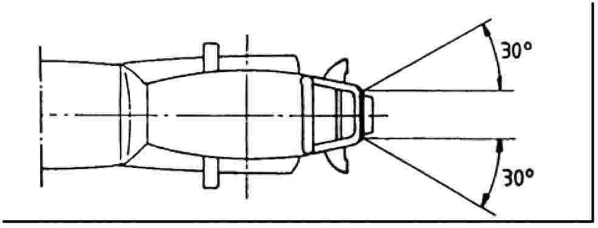 6.1. A rendszámtábla elhelyezésének láthatóságát abban a tartományban kell biztosítani, amit két lapszög határoz meg: a lapszögek egyikét, a vízszintes lapszöget, az a két sík határolja, amelyek a rendszámtábla felső és alsó peremén futnak át, és a vízszintessel az 1. ábrán bemutatott szögeket zárják be; a másik lapszöget, a függőleges lapszöget az a két sík határolja, amelyek a rendszámtábla bal és jobb szélén futnak át, és a hosszirányú felezősíkkal a 2. ábrán bemutatott szöget zárják be.