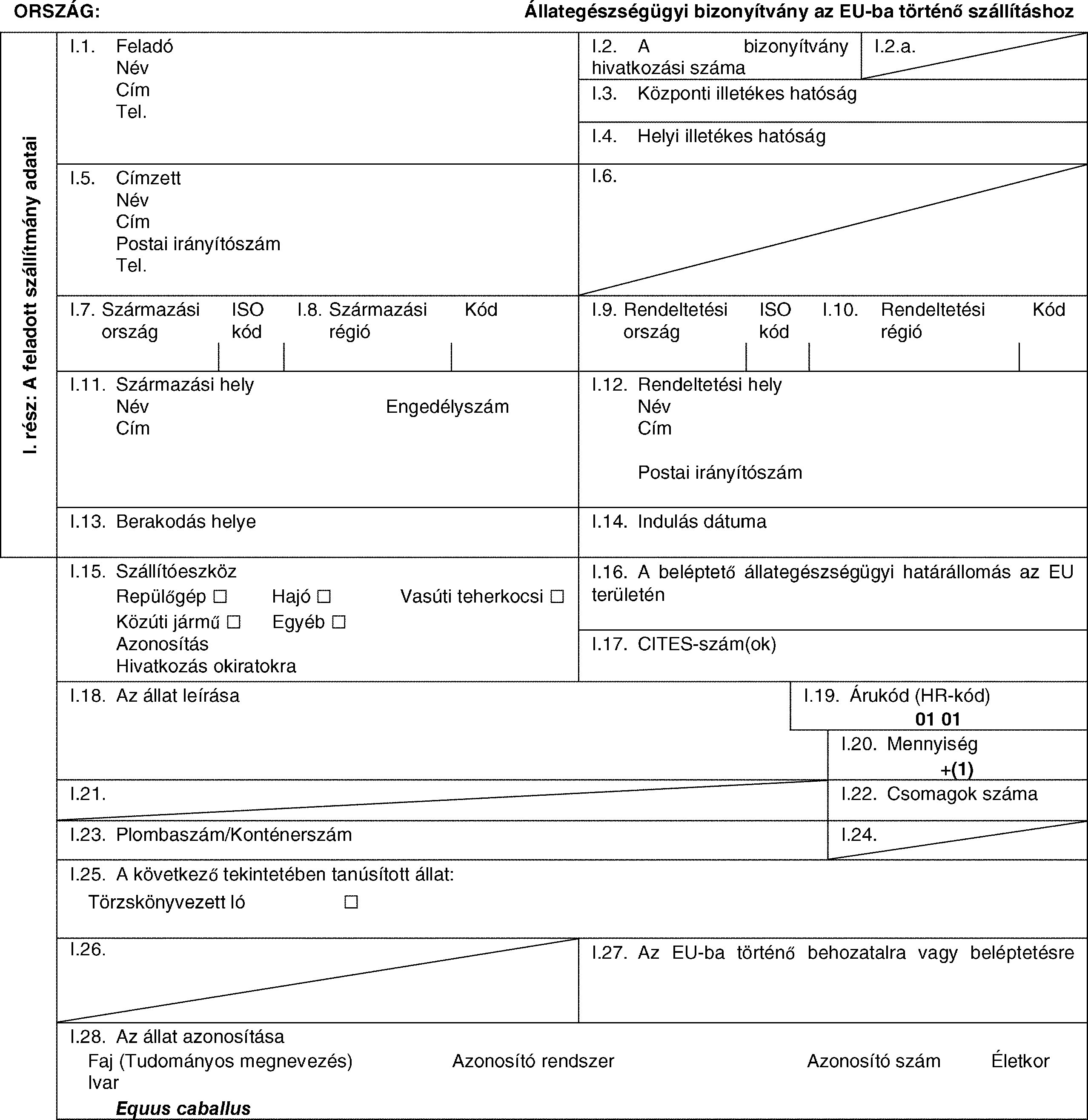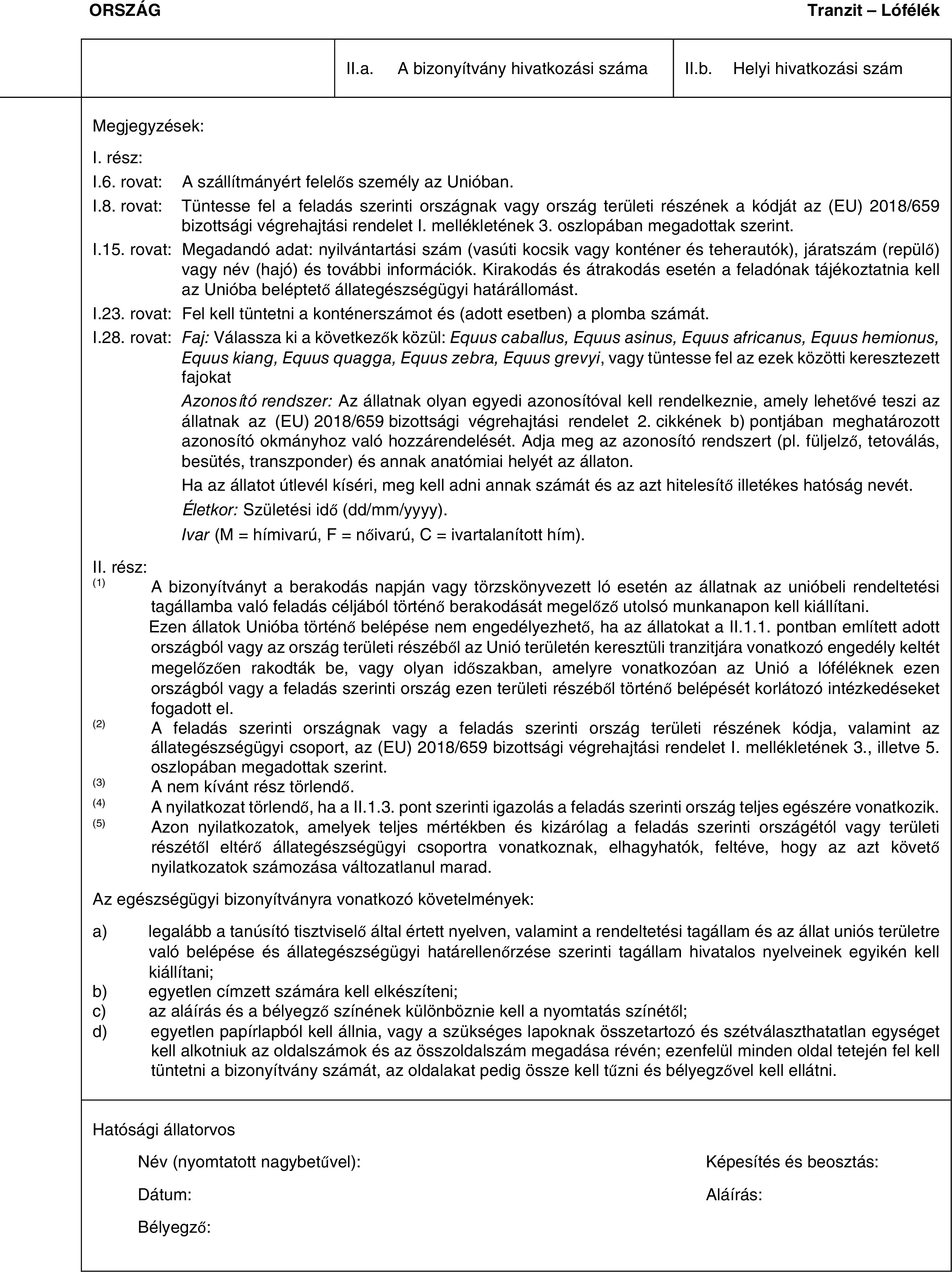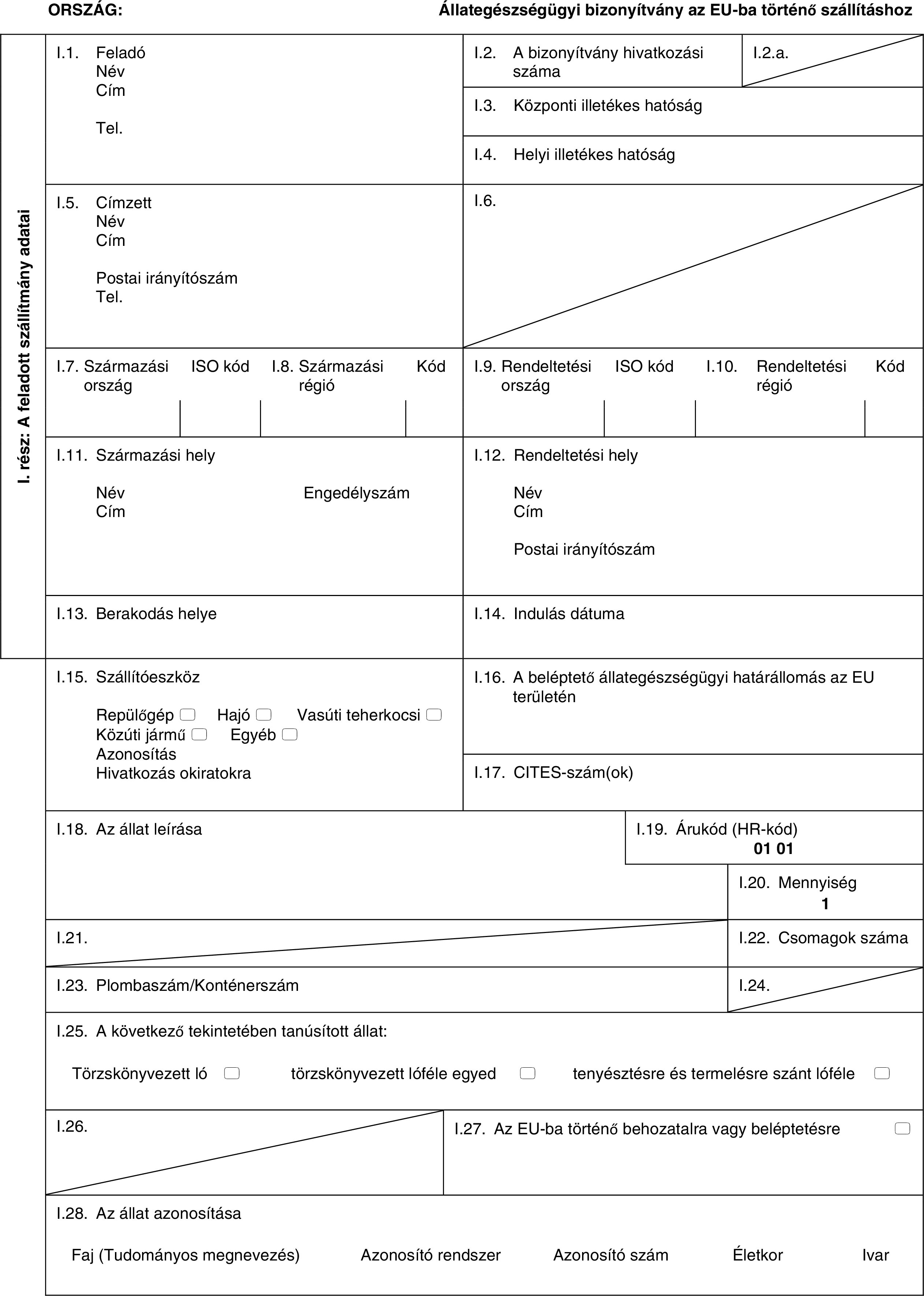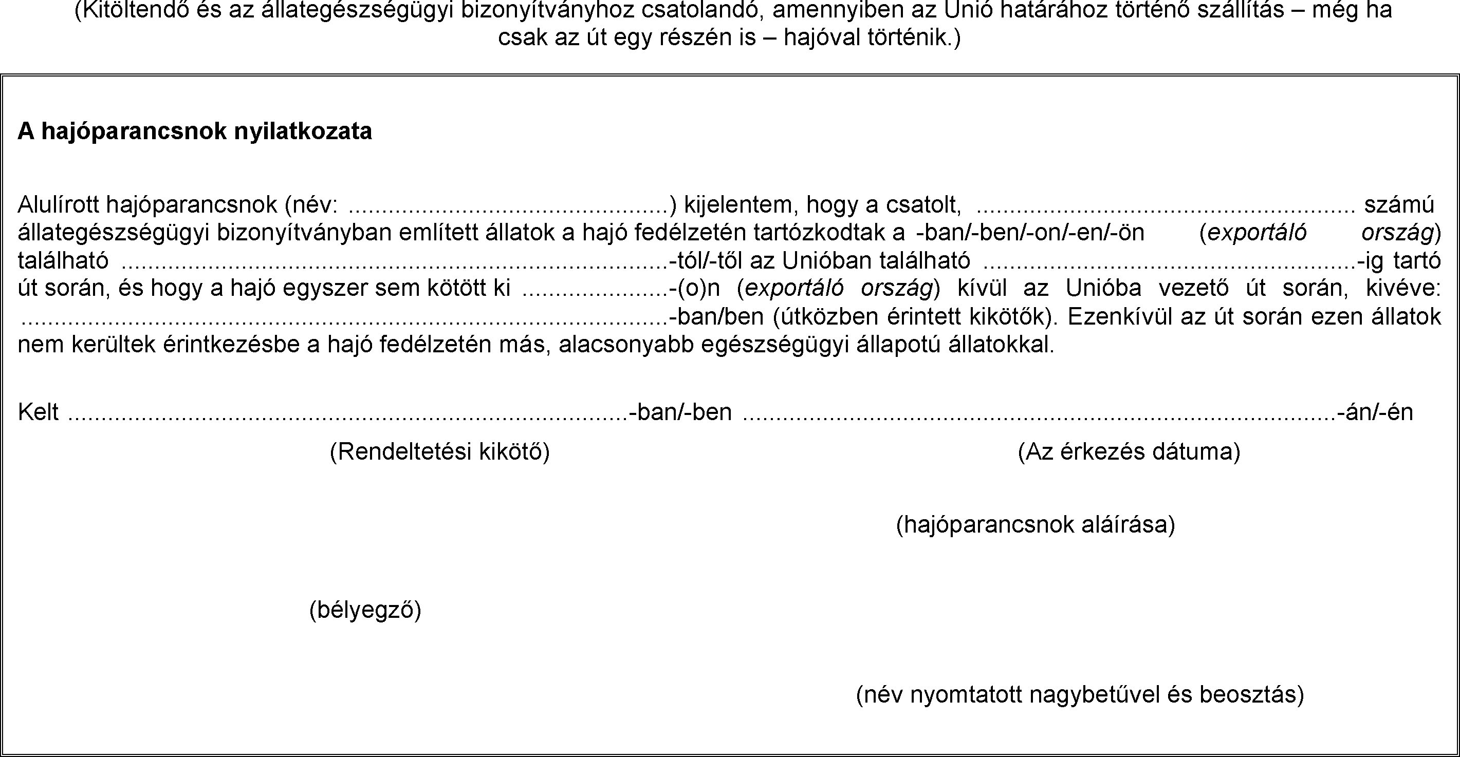 ÁLLATEGÉSZSÉGÜGYI BIZONYÍTVÁNYMINTÁK ÉS NYILATKOZATMINTÁK ÉLŐ LÓFÉLÉK UNIÓBA TÖRTÉNŐ BELÉPÉSÉHEZ