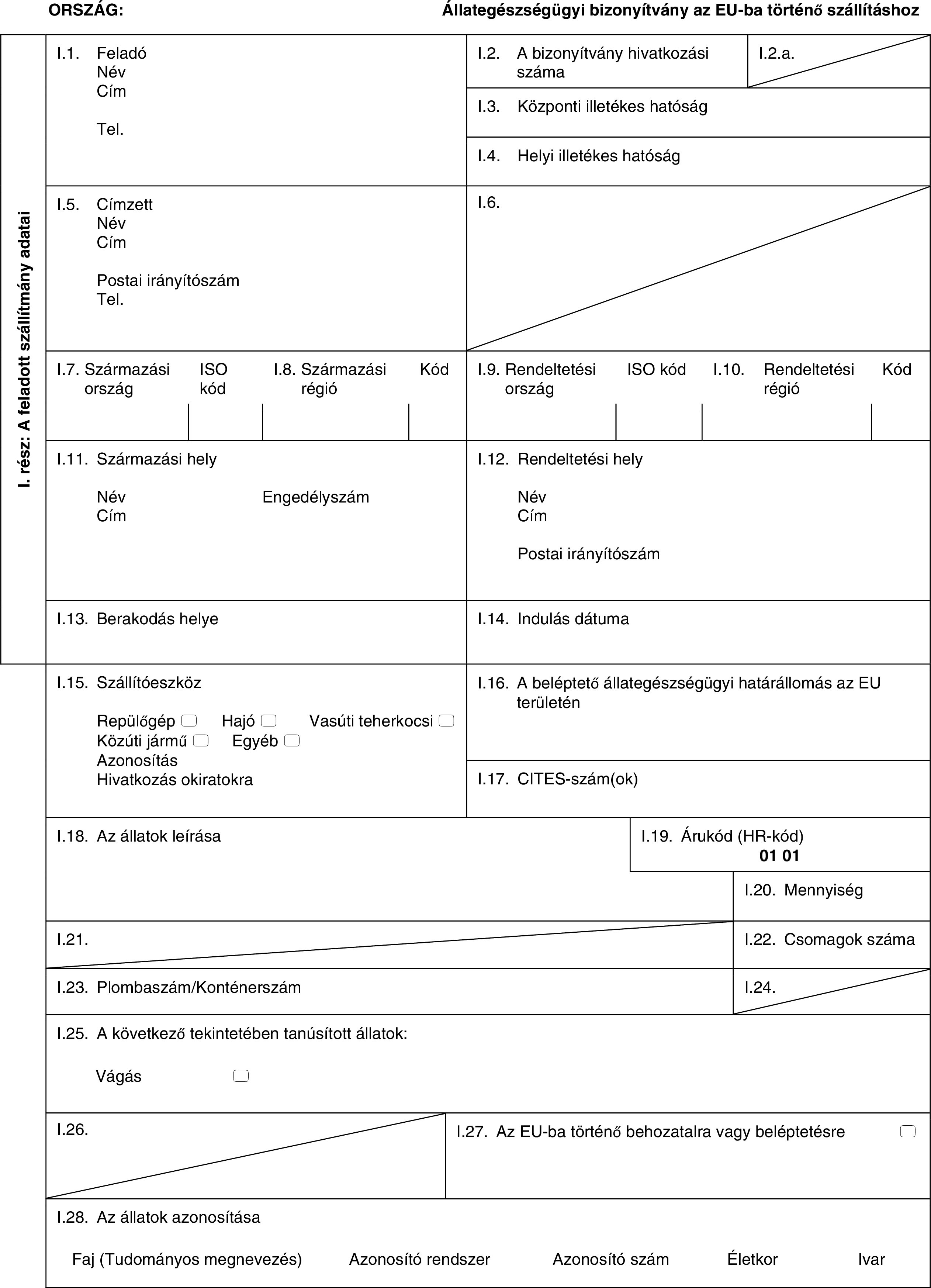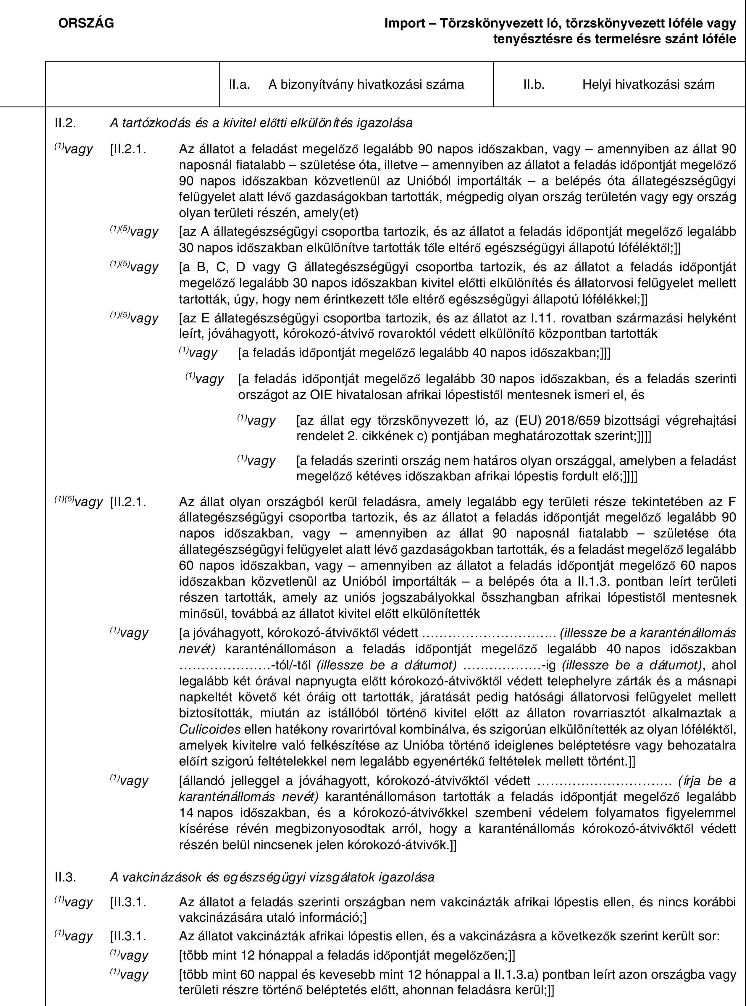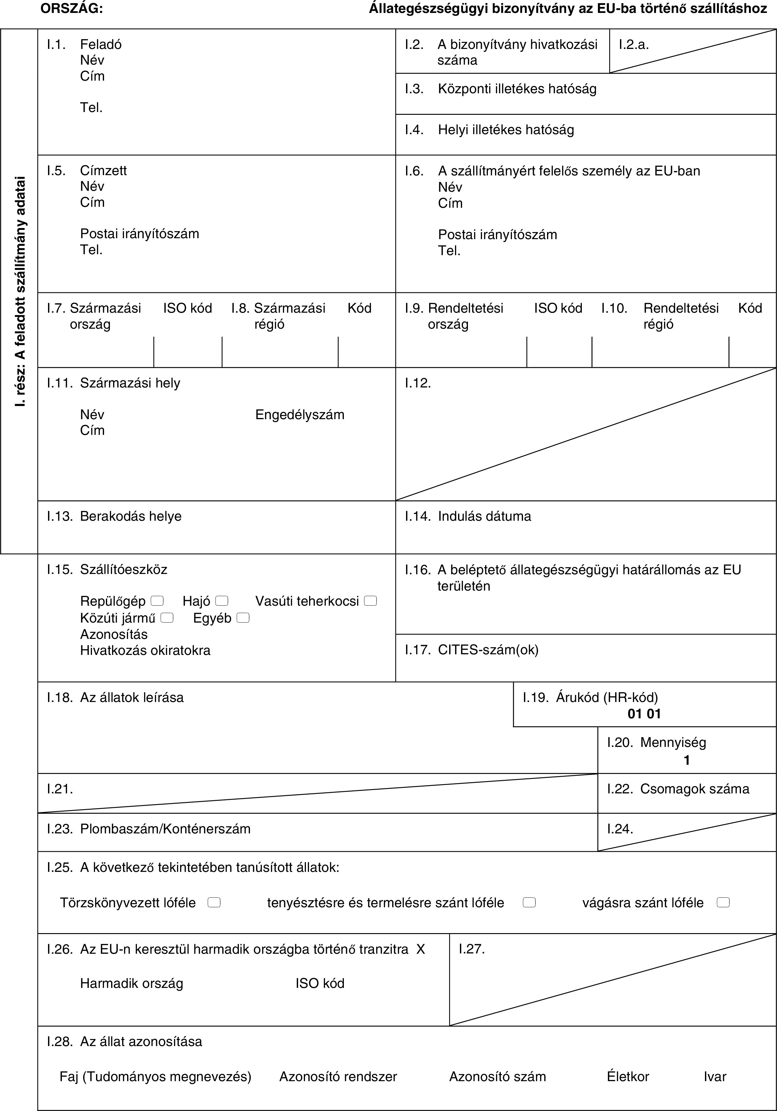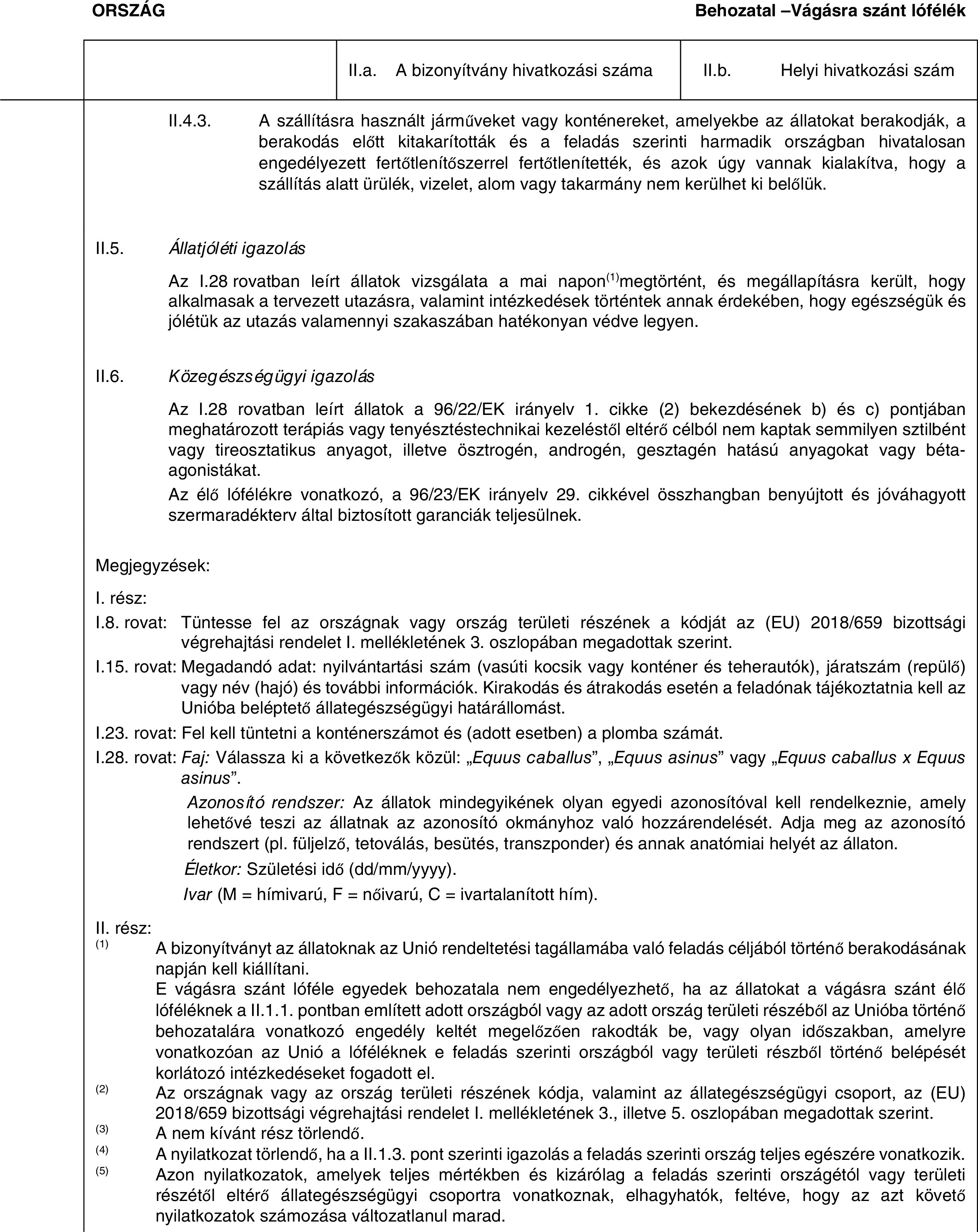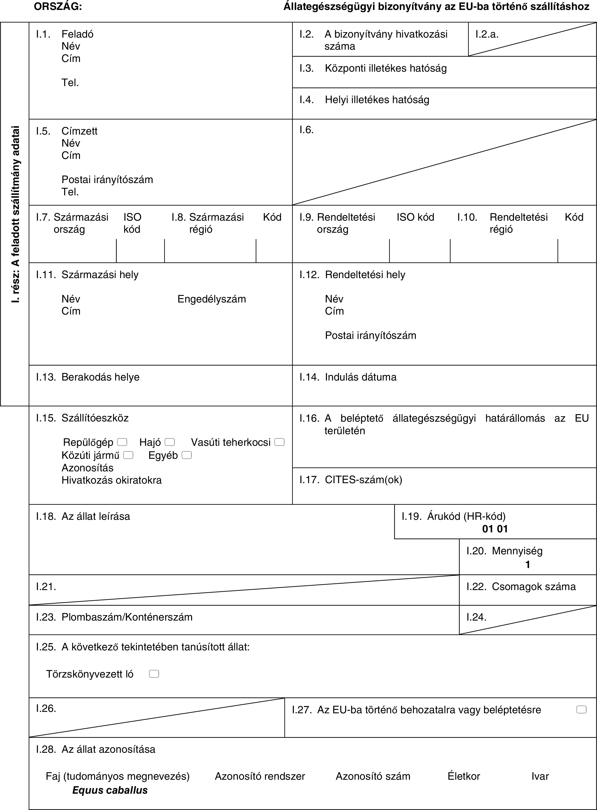 ÁLLATEGÉSZSÉGÜGYI BIZONYÍTVÁNYMINTÁK ÉS NYILATKOZATMINTÁK ÉLŐ LÓFÉLÉK UNIÓBA TÖRTÉNŐ BELÉPÉSÉHEZ