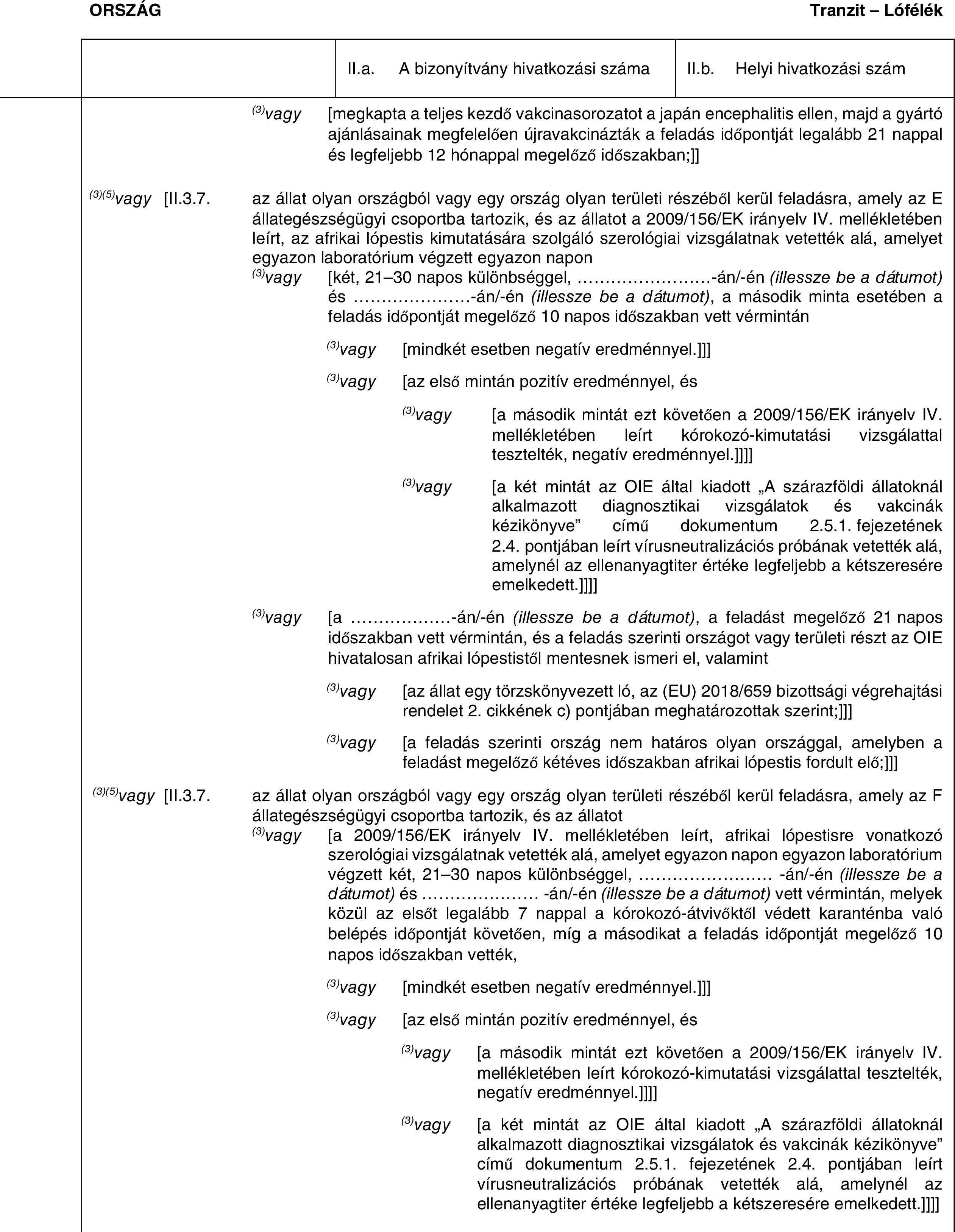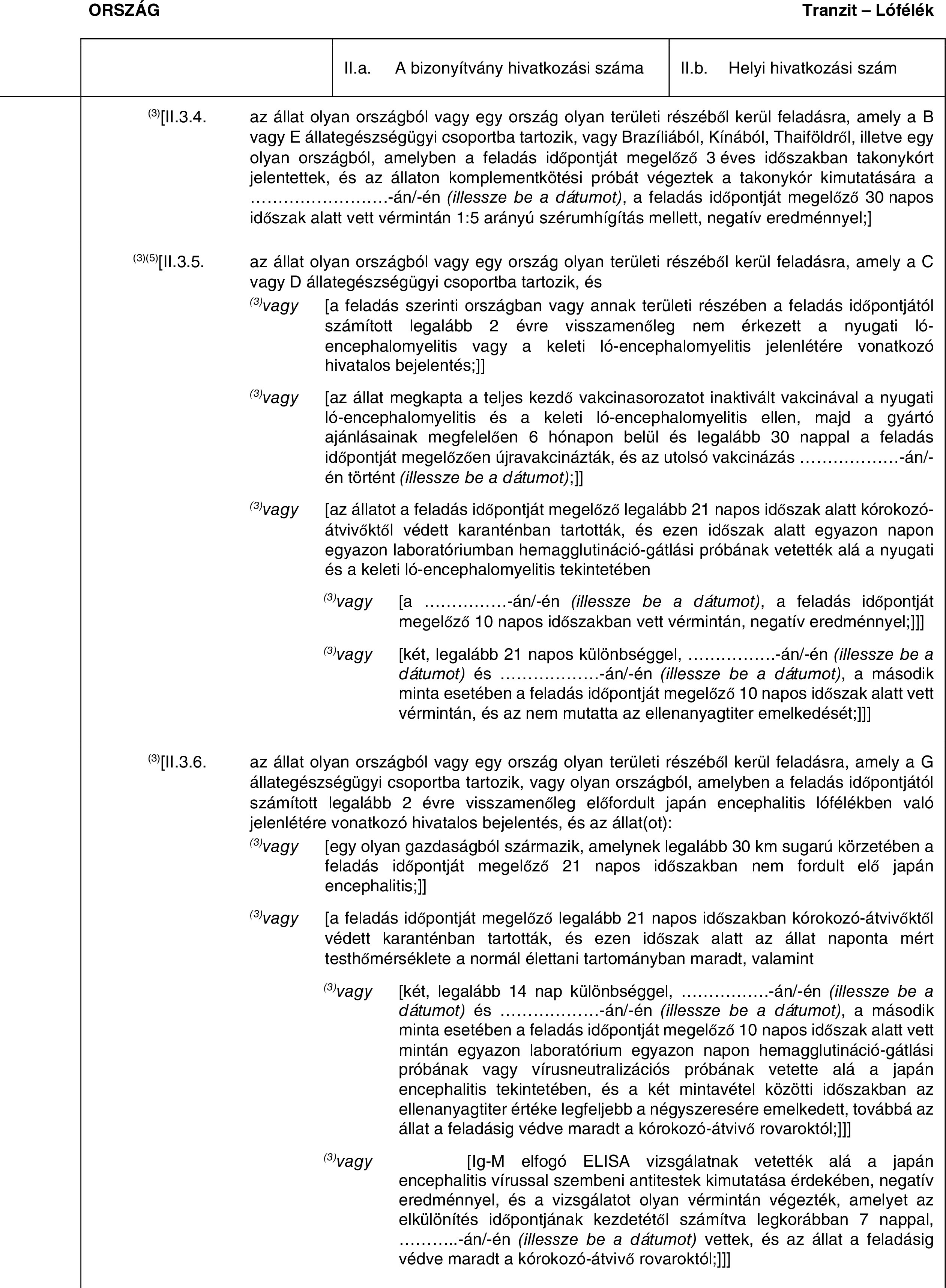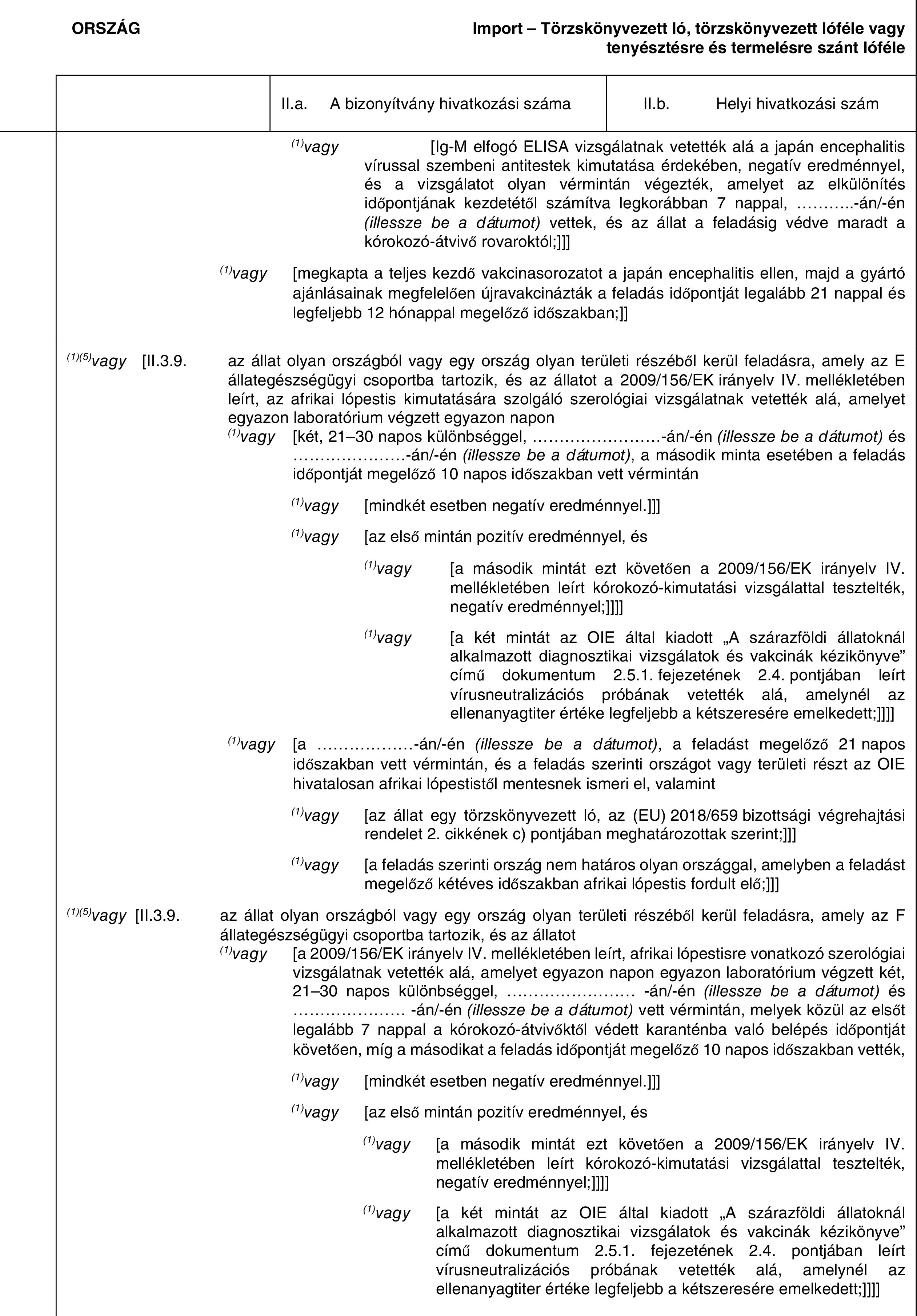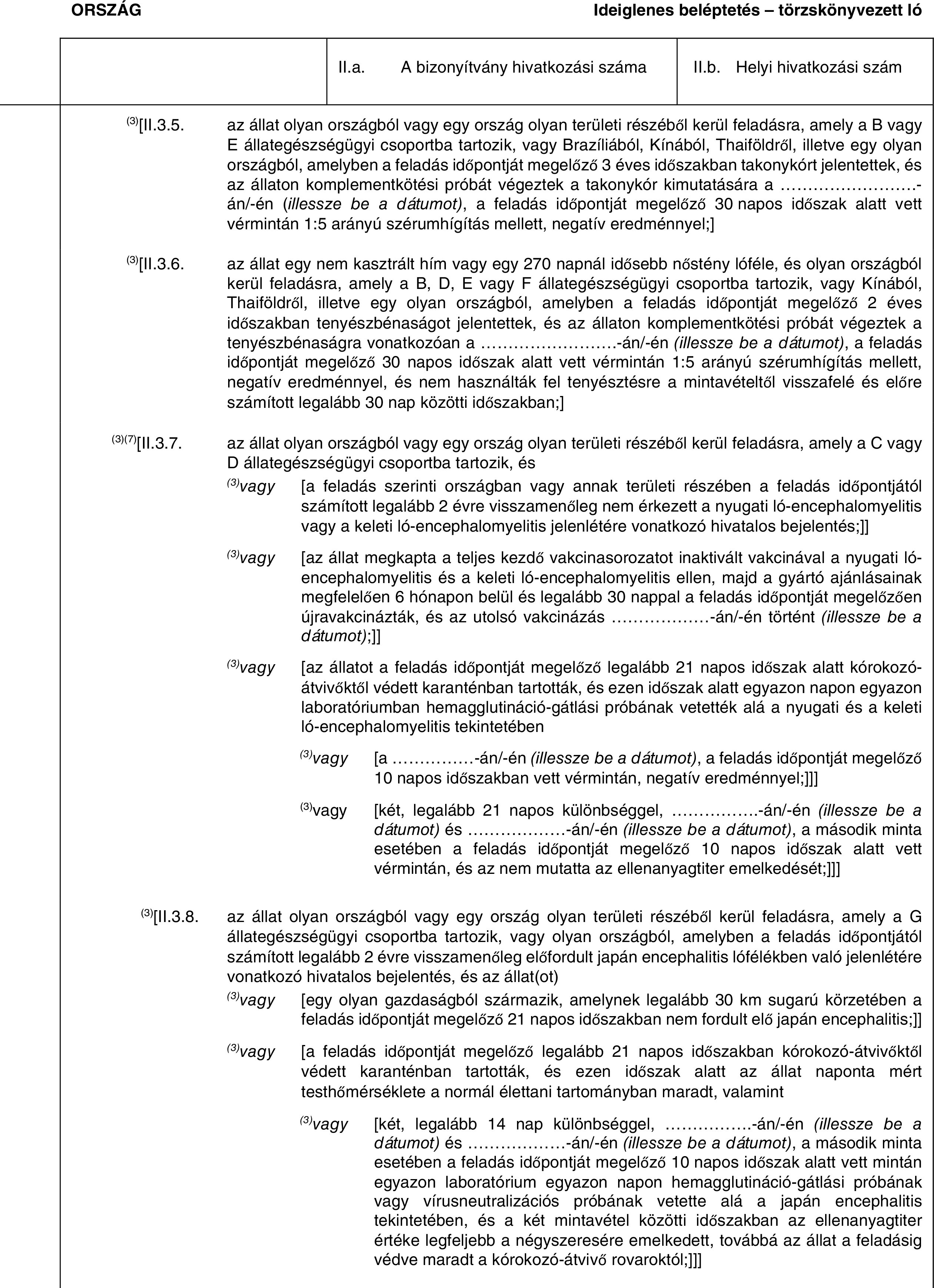 11 | Törzskönyvezett lovak spermájának behozatala | III. melléklet, 1. rész. A. szakasz III. melléklet, 1. rész., B. szakasz III. melléklet, 1. rész., C. szakasz III. melléklet, 1. rész., D. szakasz |
