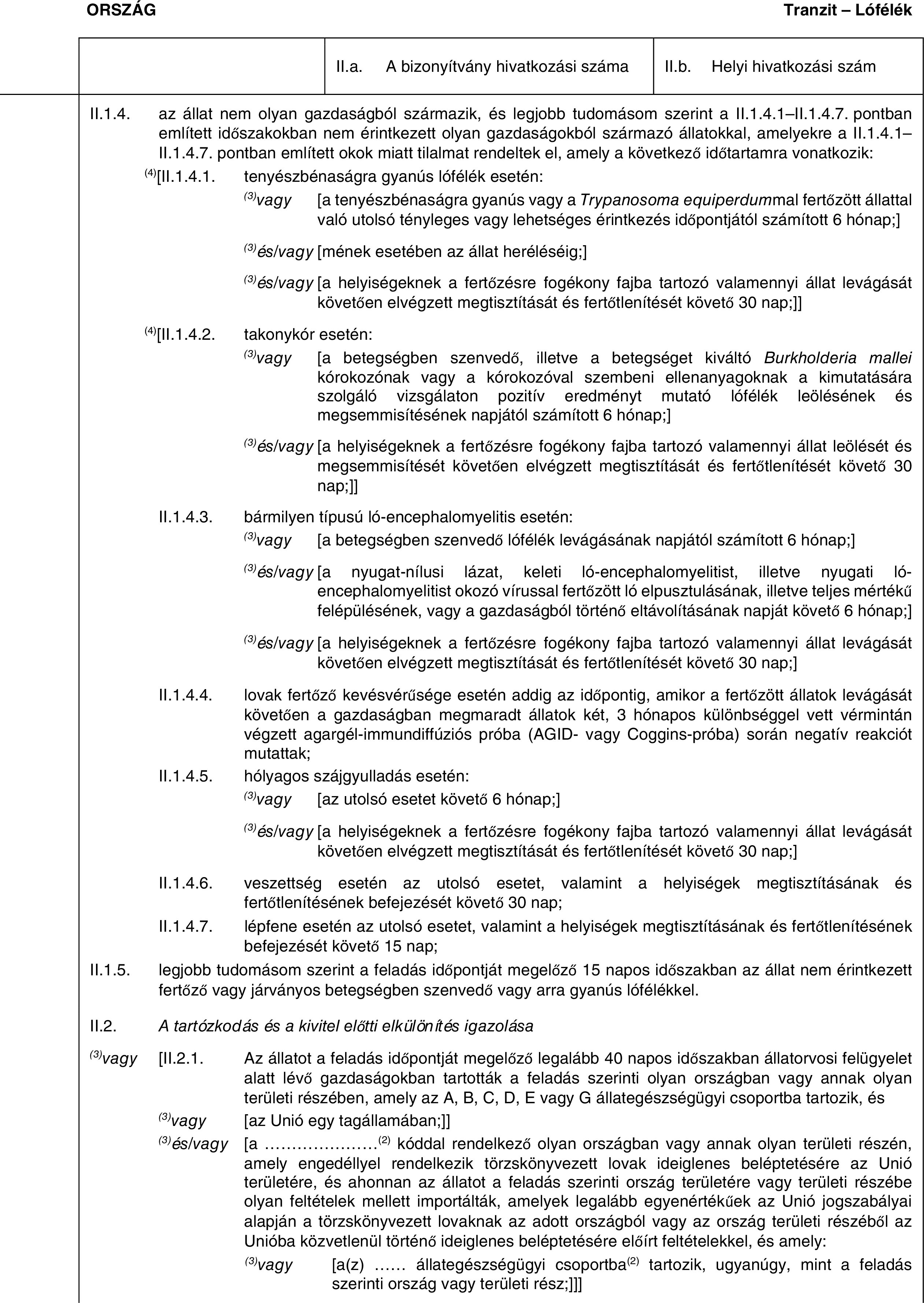 15 | Lófélék tranzitja | II. melléklet, 1. rész., B. szakasz |