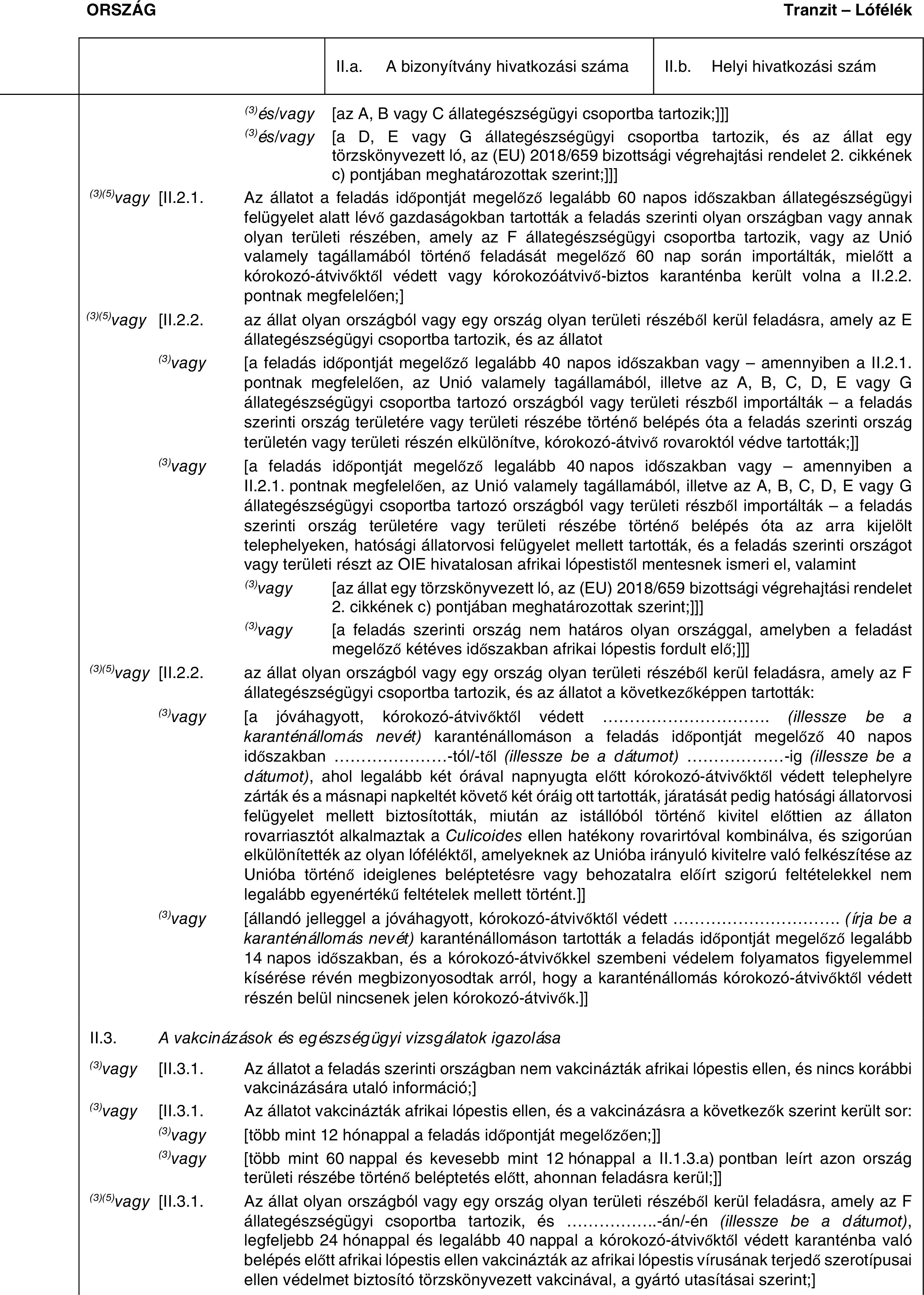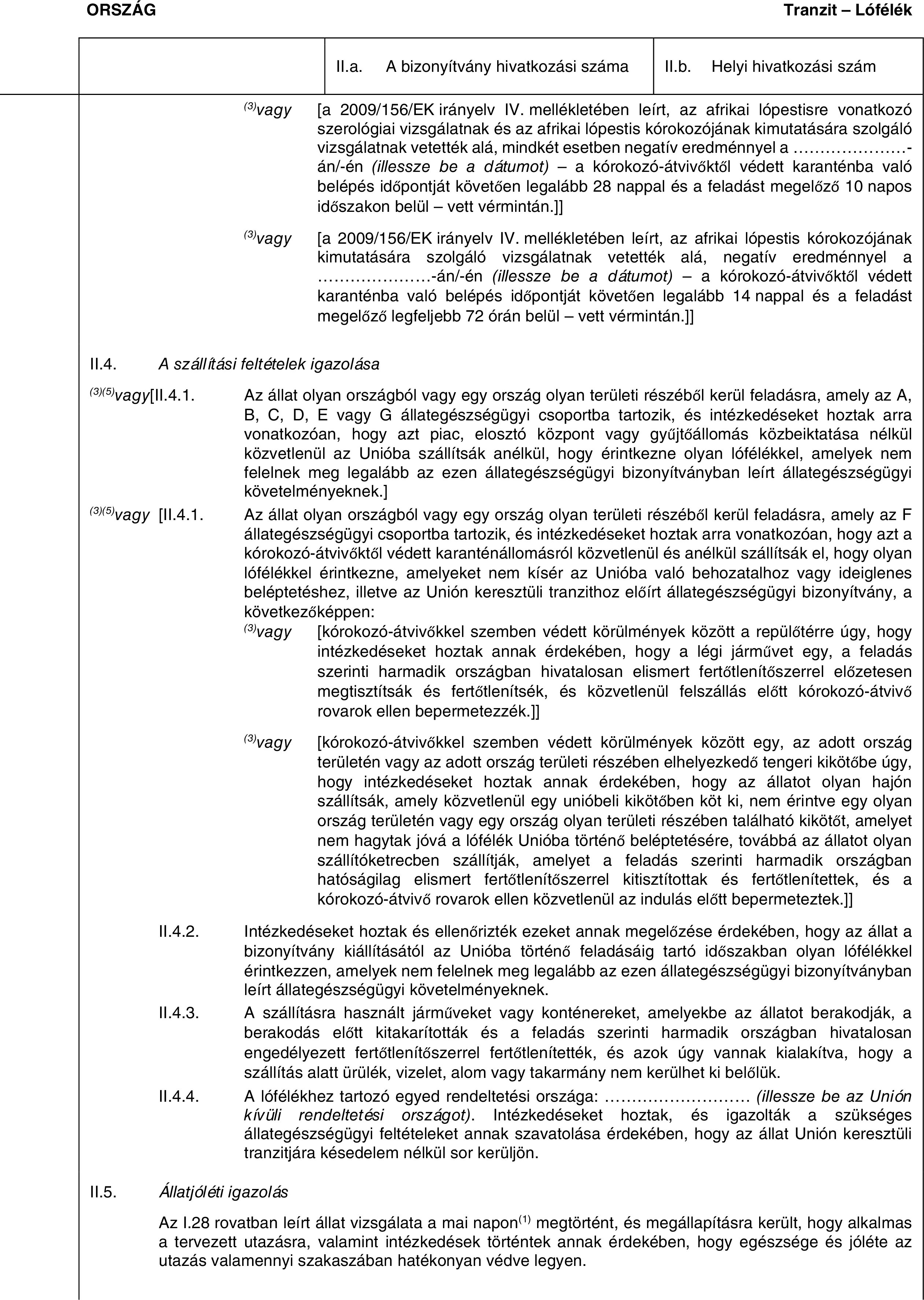 a) a lóféléket vagy olyan szállítóeszközzel szállítják, amelyen kizárólag Unióba szánt lófélék vannak, vagy ennek alternatívájaként az állatokat a tranzithoz előírt állategészségügyi bizonyítvány kíséri;