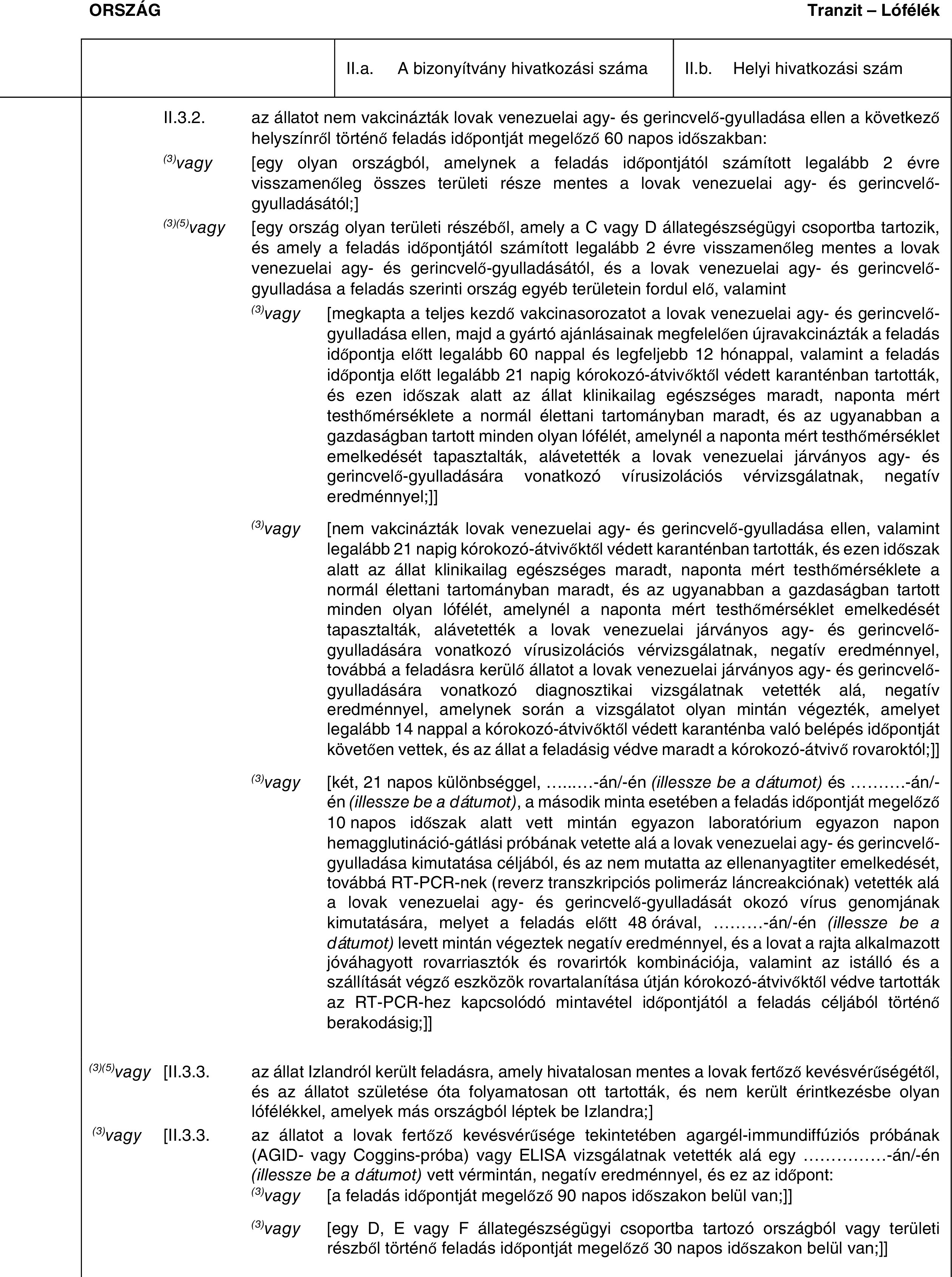 i. afrikai lópestis vagy lovak venezuelai agy- és gerincvelő-gyulladása a feladás vagy a tranzit szerinti harmadik országban;