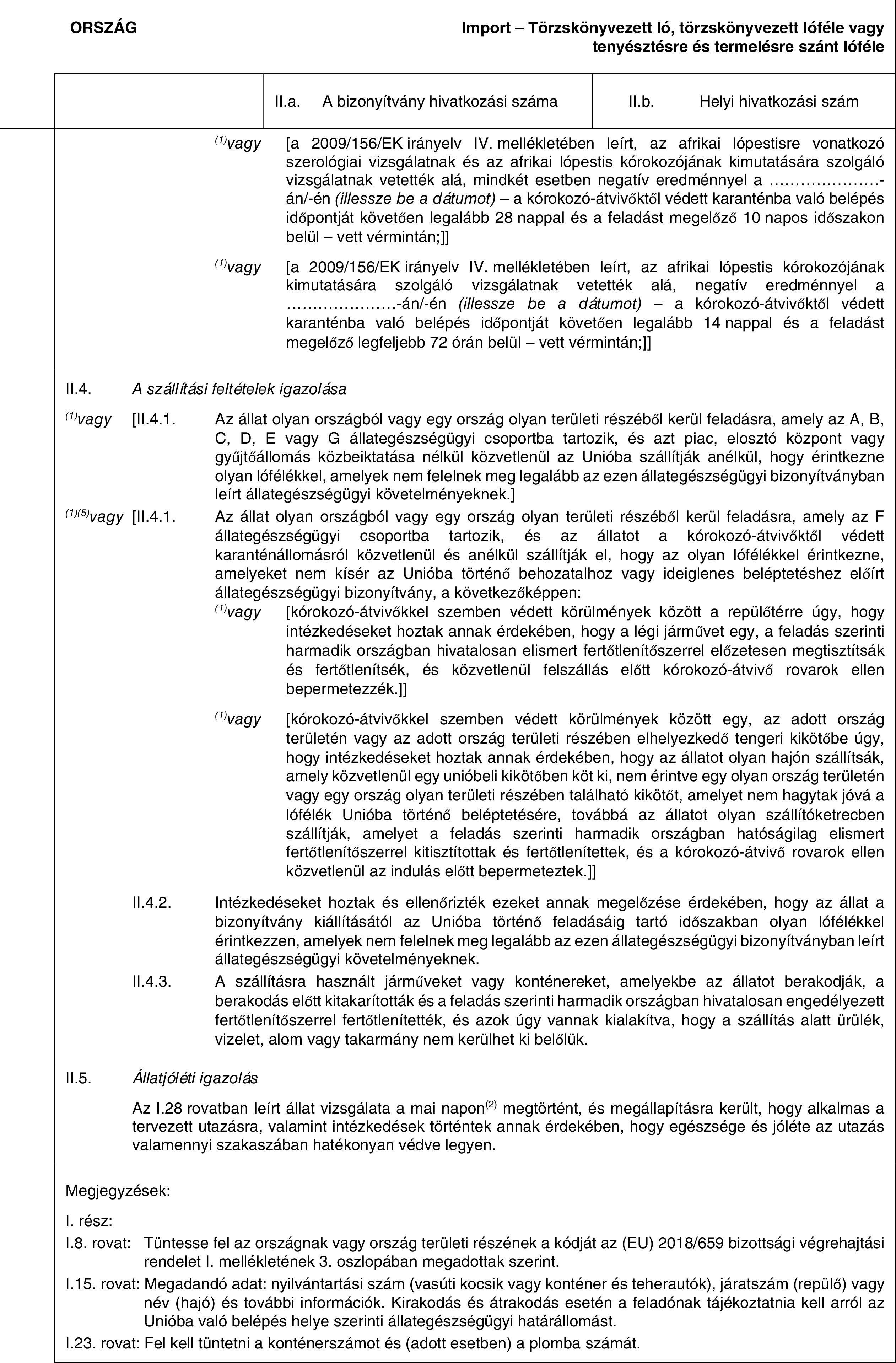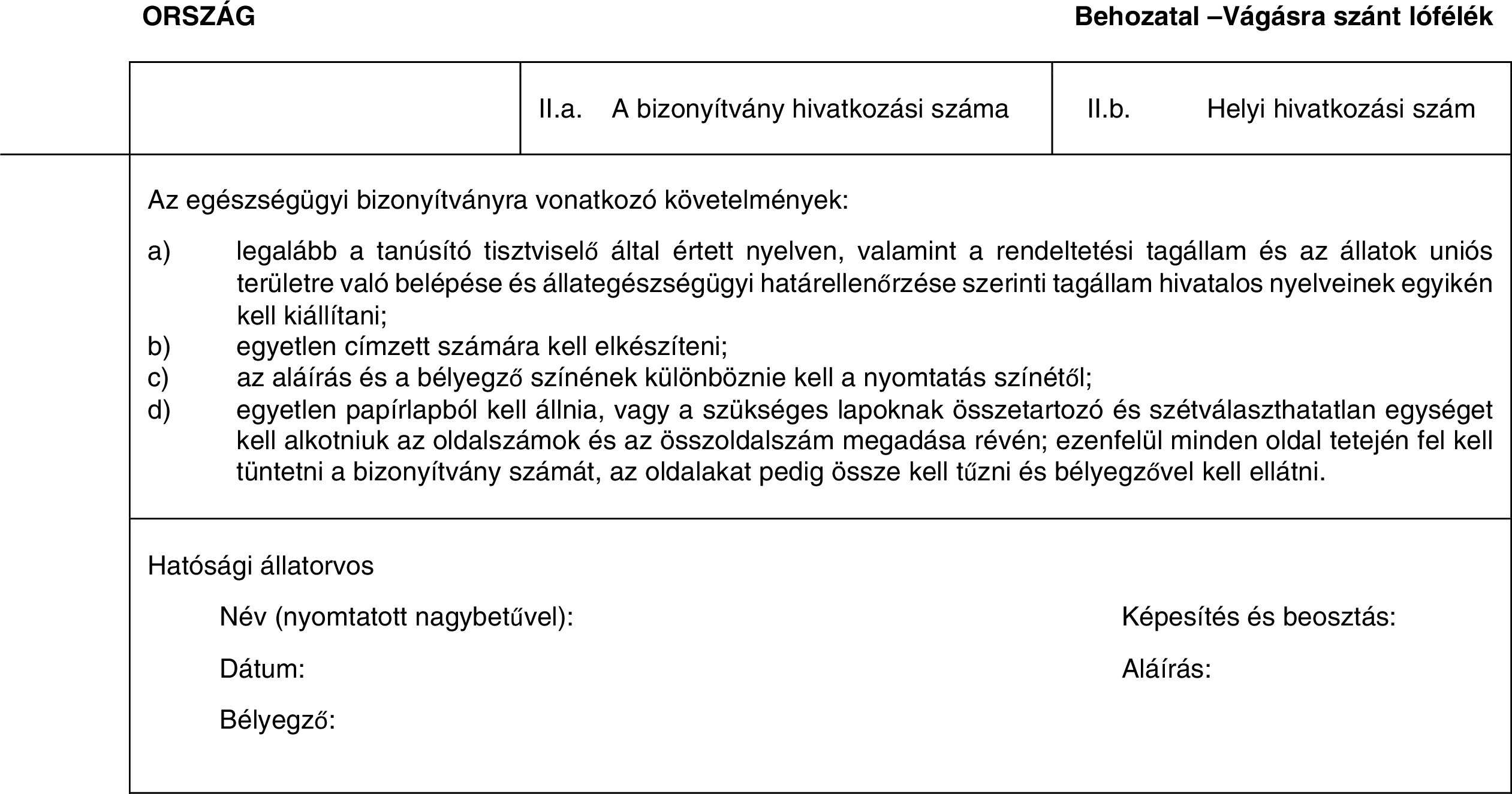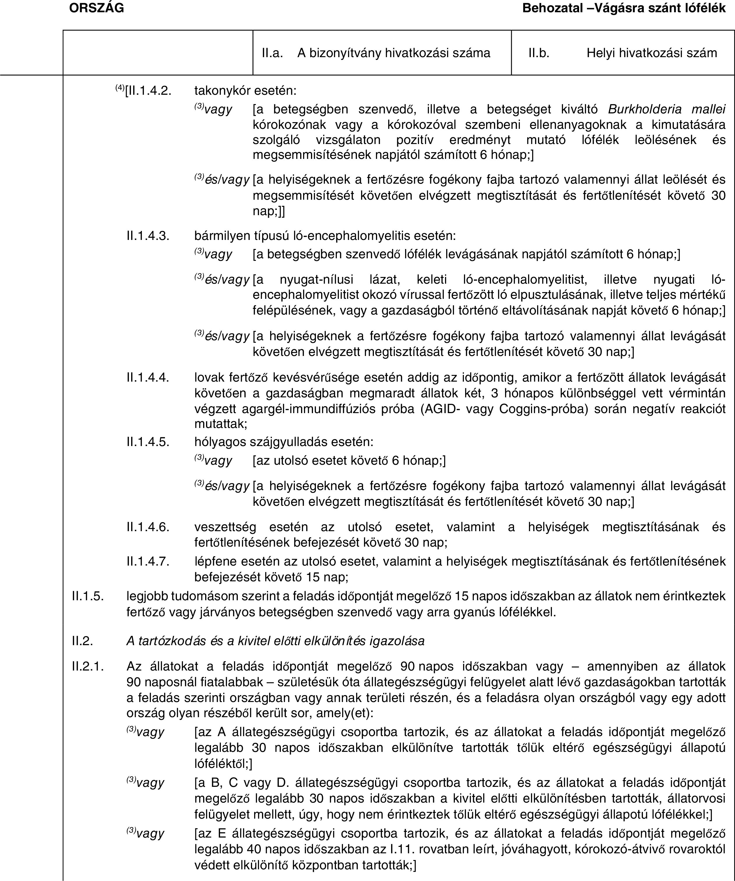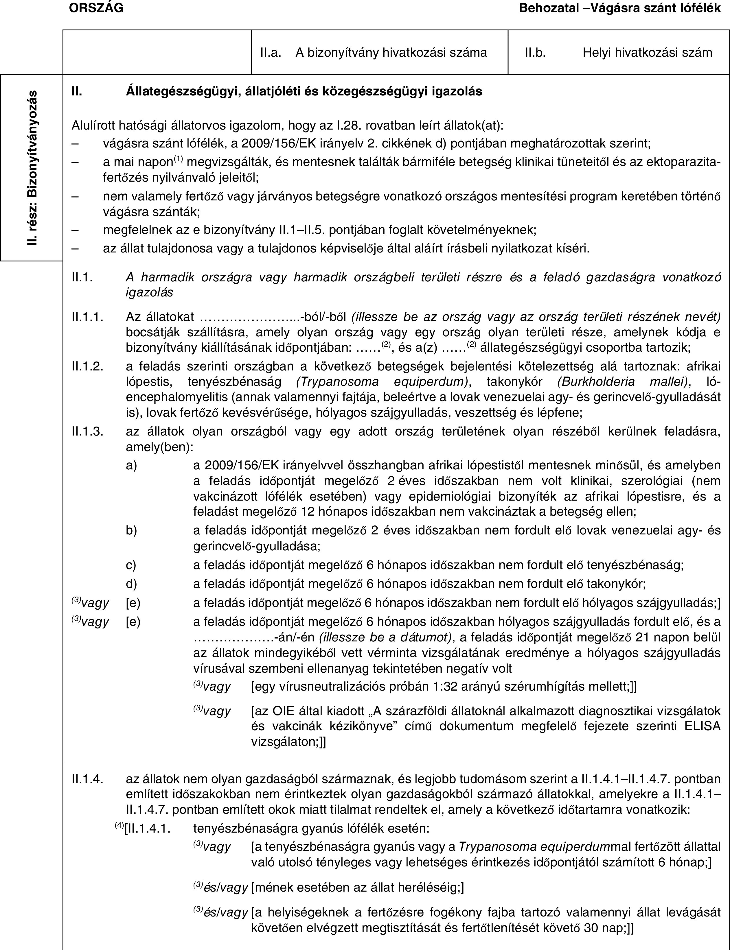 9 | Vágásra szánt lófélék behozatala | II. melléklet, 3. rész., B. szakasz |