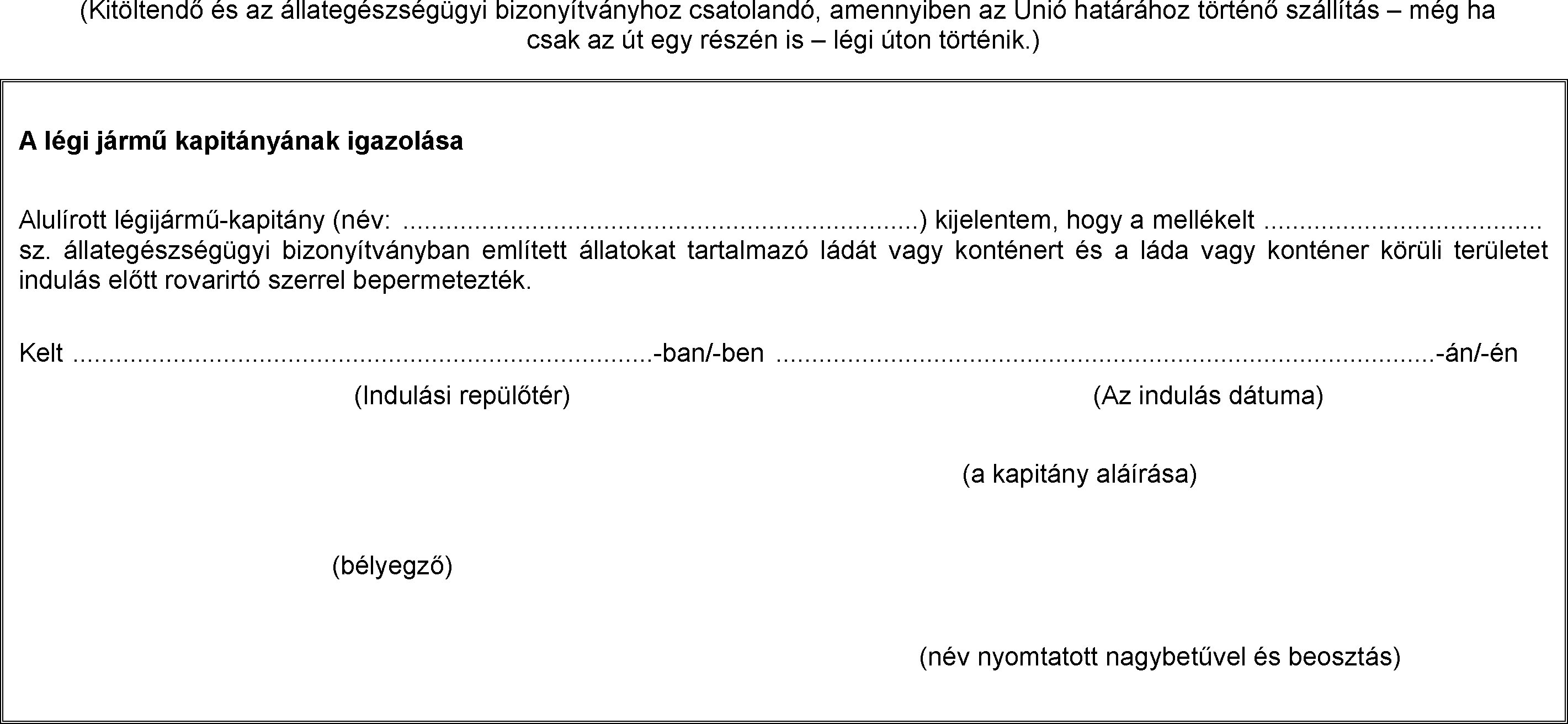 b) a légi jármű kapitánya kitölti és aláírja az V. melléklet 1. részében szereplő nyilatkozatot.