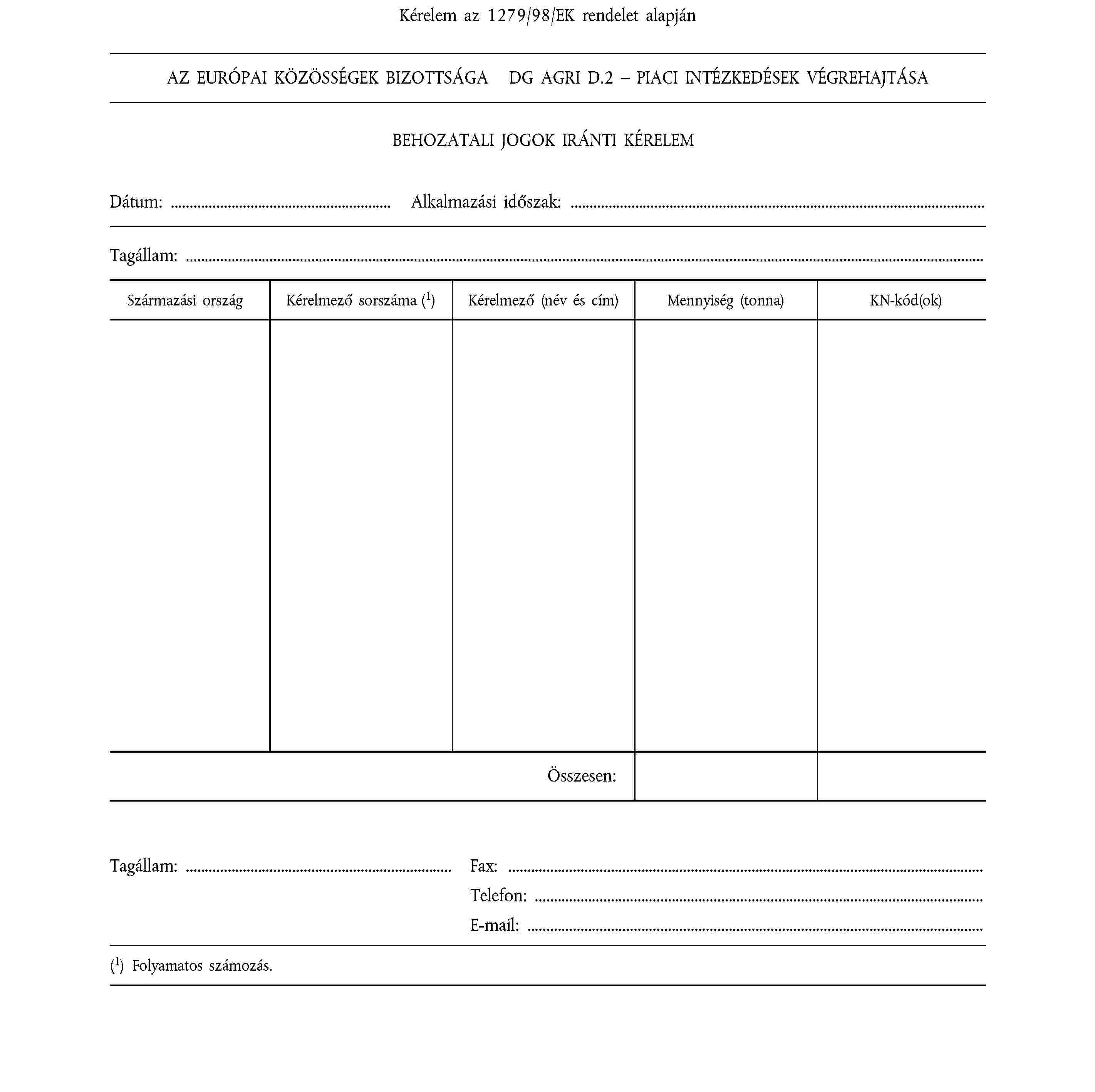 A BIZOTTSÁG 1279/98/EK RENDELETE