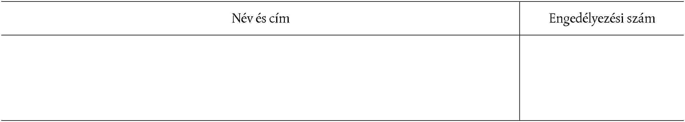 Név és cím | Engedélyezési szám | Az engedély lejárta (1) |