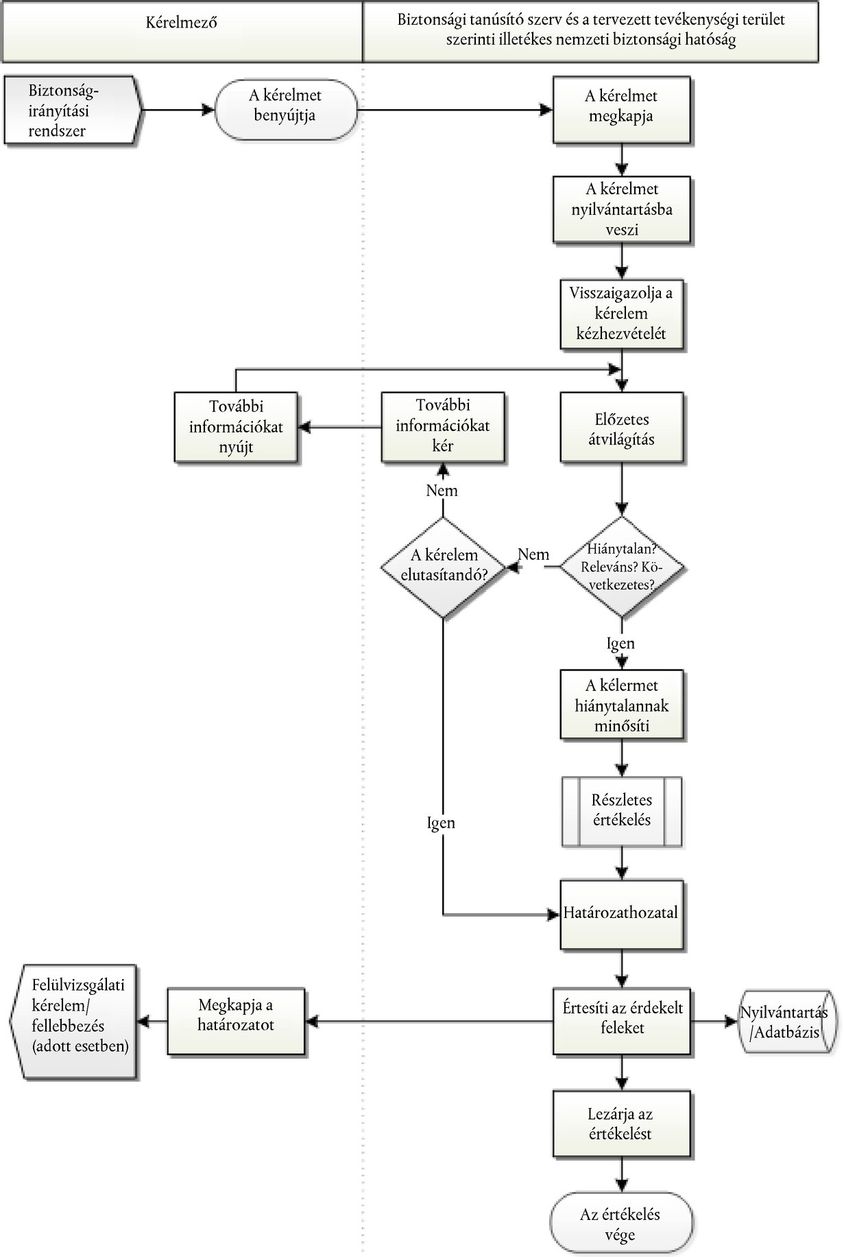 (2) A biztonsági értékelés folyamatának valamennyi szakaszát, az értékelés eredményét és a kérelemre vonatkozó határozatot az egyablakos ügyintézési rendszeren keresztül kell közölni a kérelmezővel.