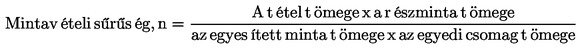 - mintavételi sűrűség:minden "n"-edik zsák vagy zacskó, amelyből részmintát kell venni (a törtszámokat egész számra kell kerekíteni).