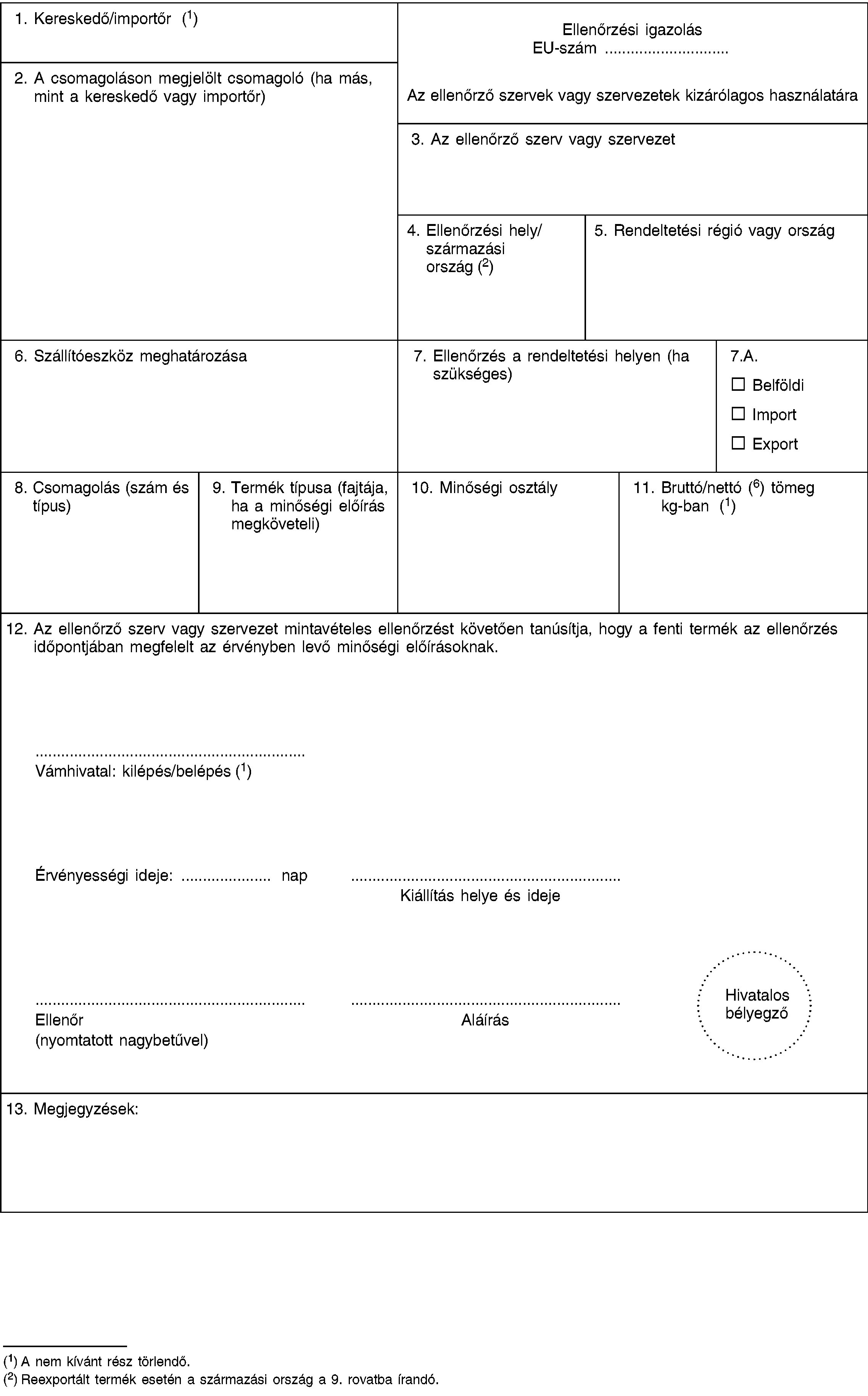 E. Hivatalos ellenőrző jel (nem kötelező).