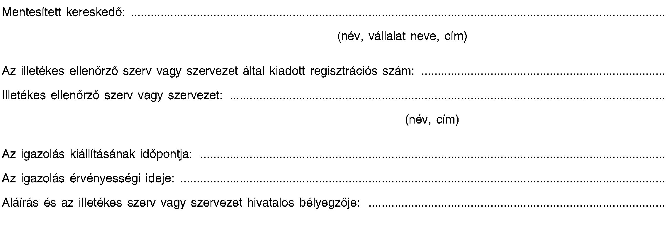 Az ellenőrzés alól mentesített kereskedők a III. mellékletben található minta szerint mentesítési igazolást kapnak.