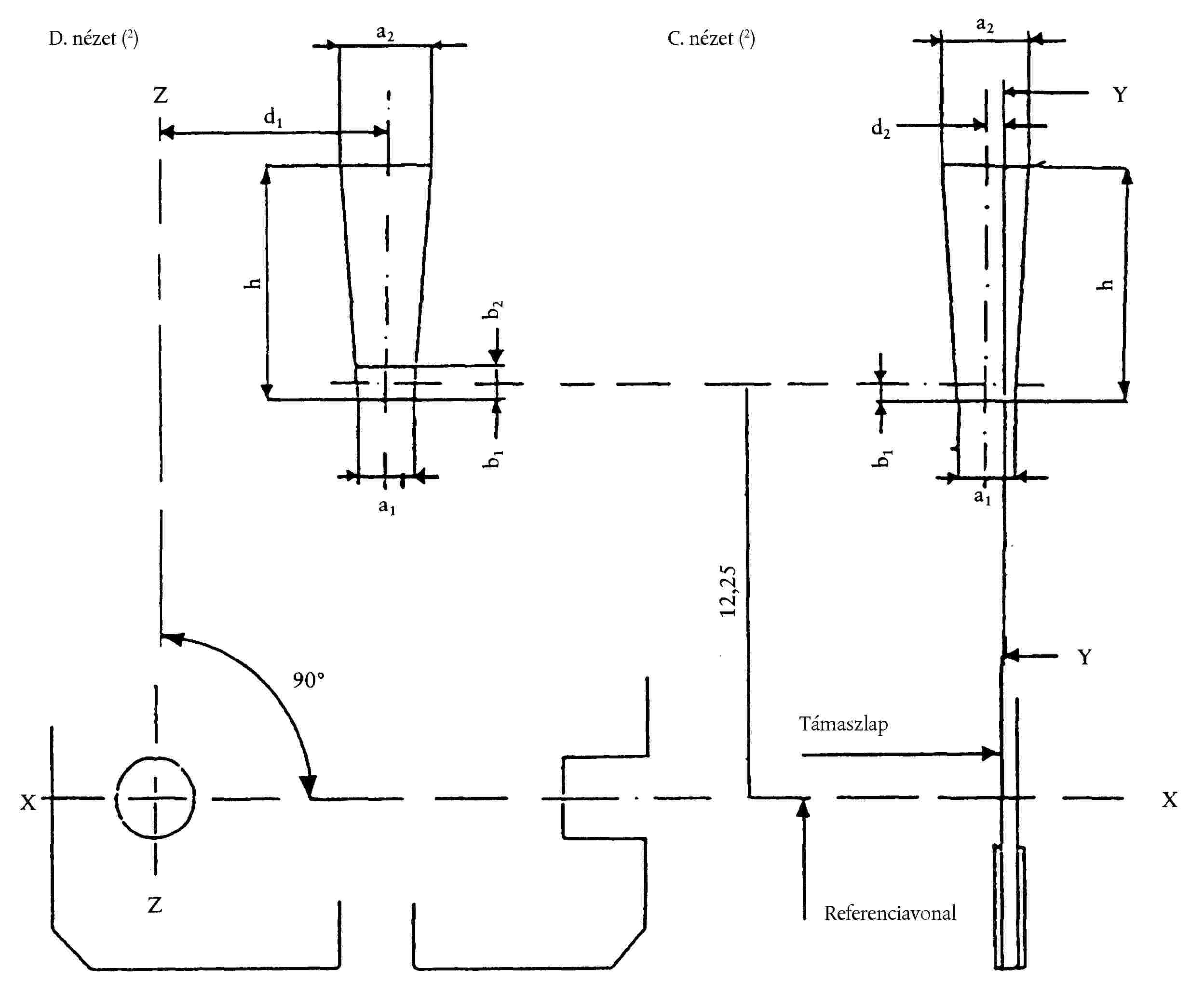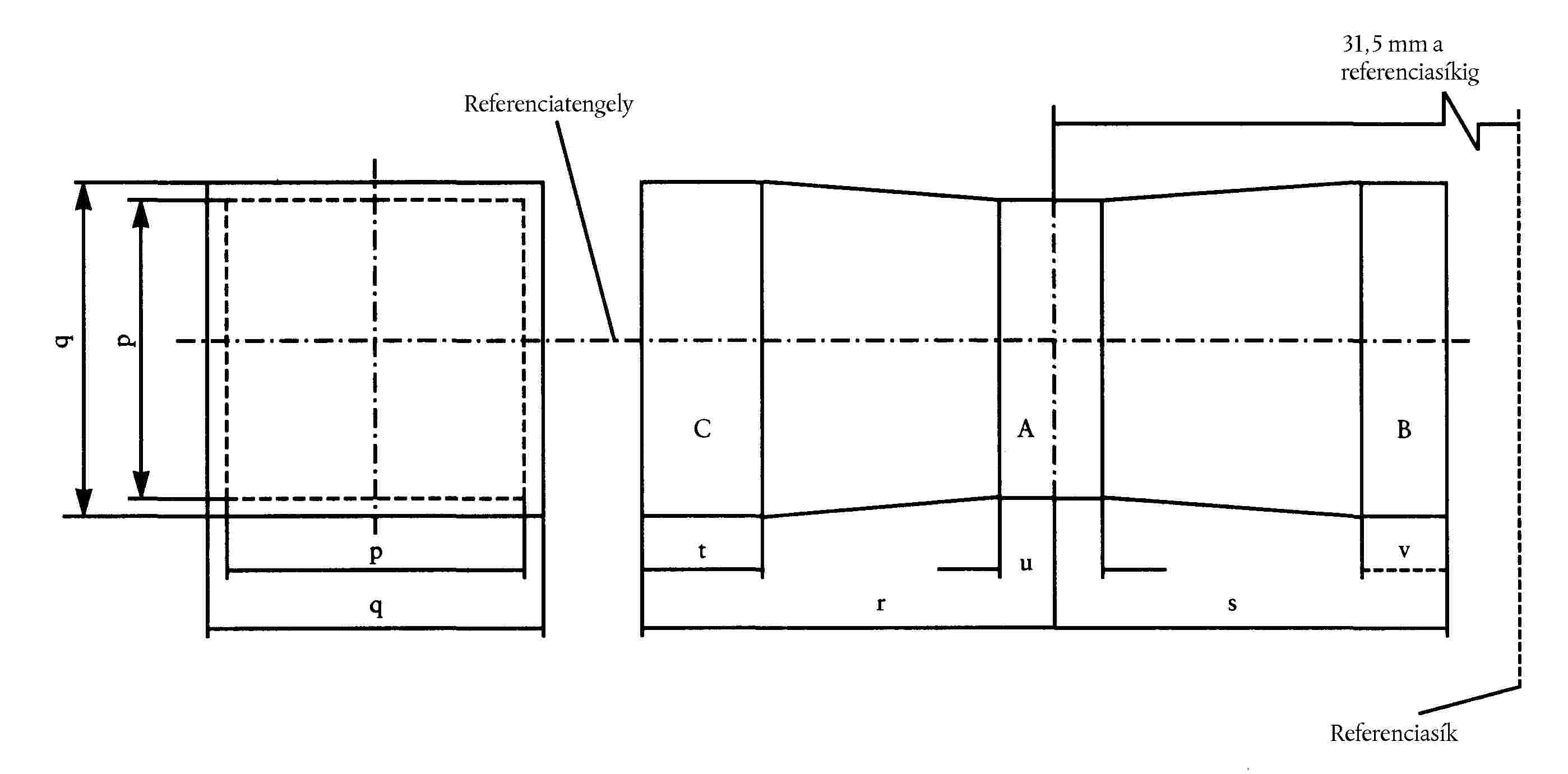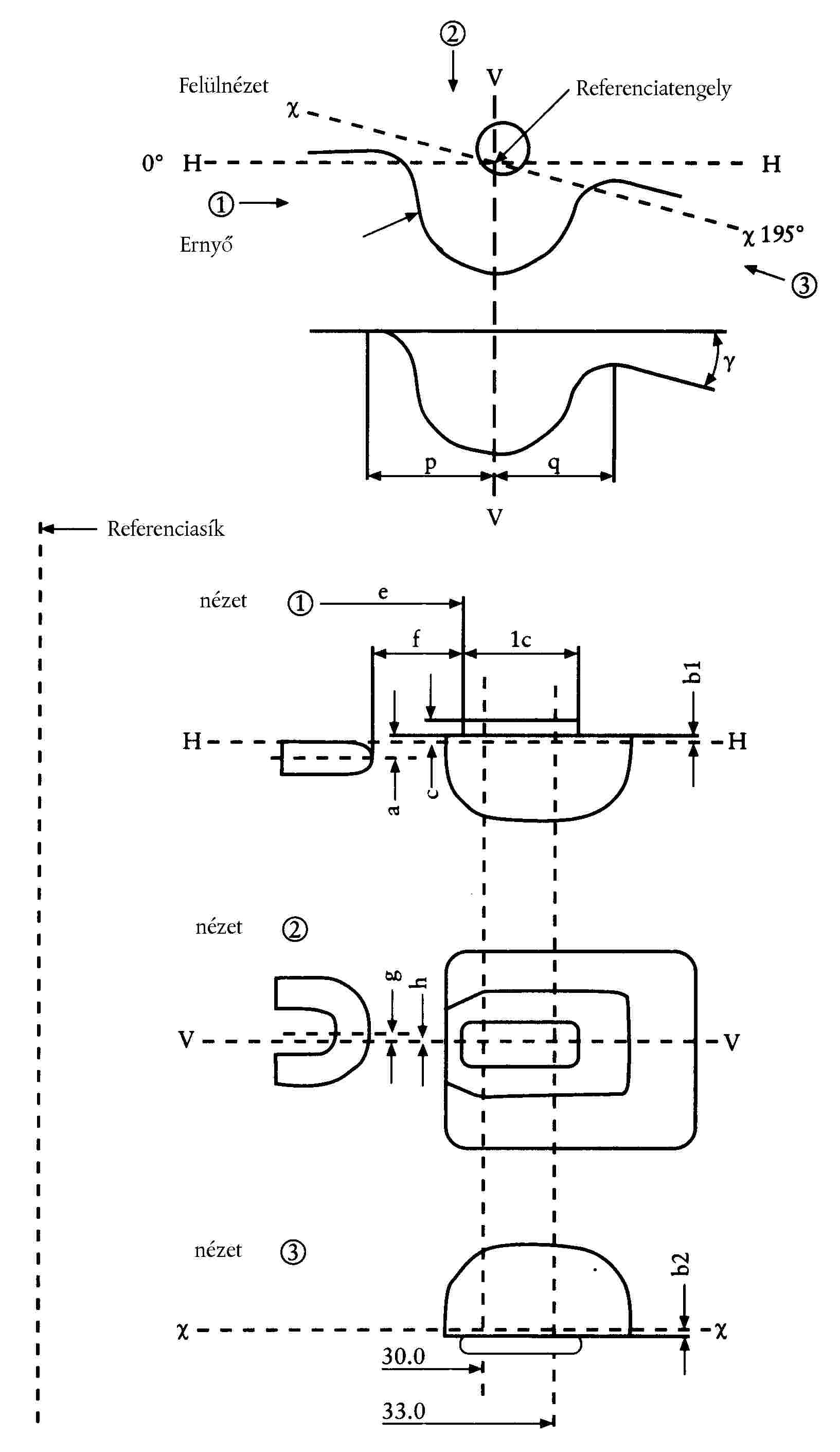 ( 46 ) A referenciatengely merőleges a referenciasíkra és a 45 mm-es lámpafej-átmérő közepén halad át.
