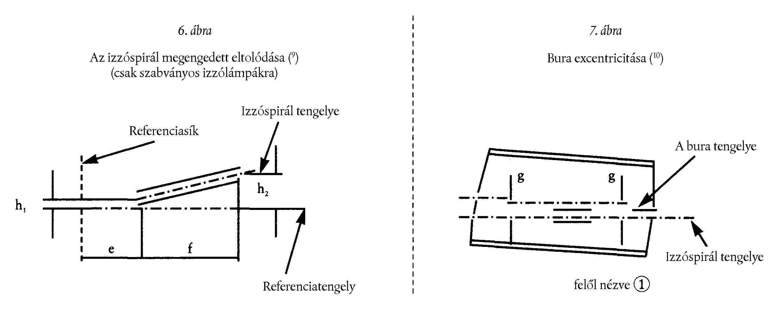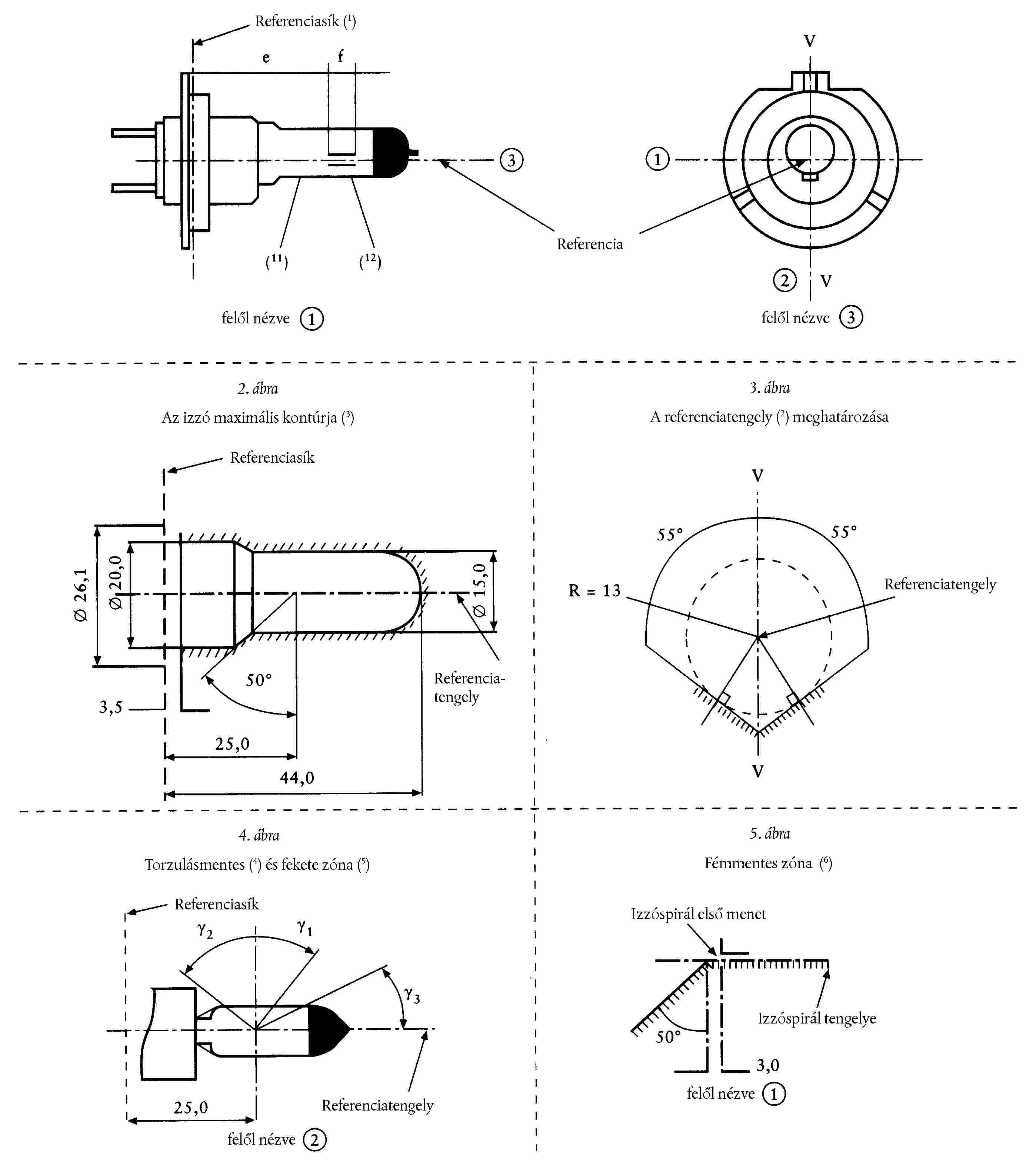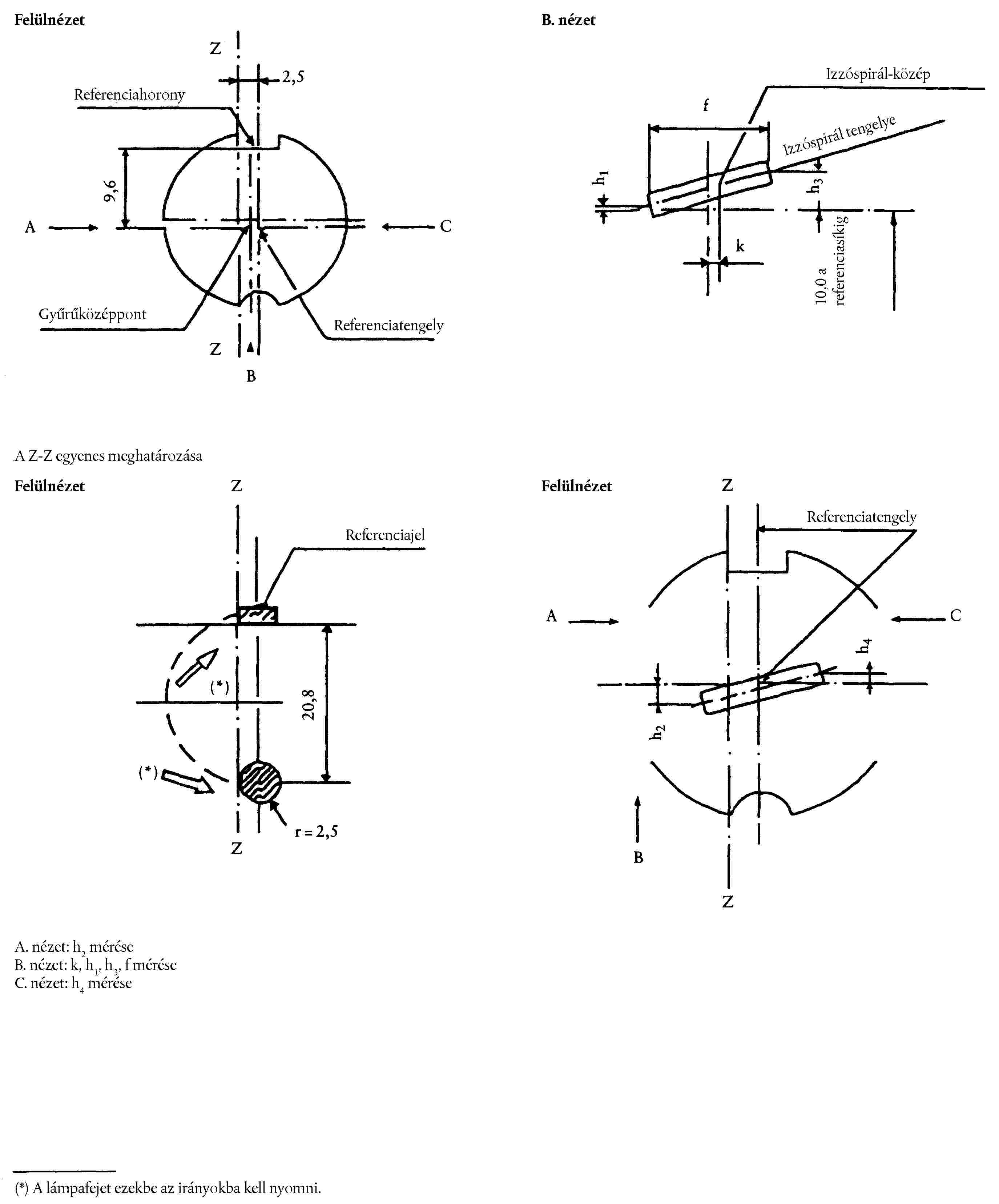 ( 49 ) A mérendő pontok azok, amelyeknél a lámpafejhez legközelebbi vagy a lámpafejtől legtávolabbi utolsó menet külseje metszi az izzóspirál tengelyét.