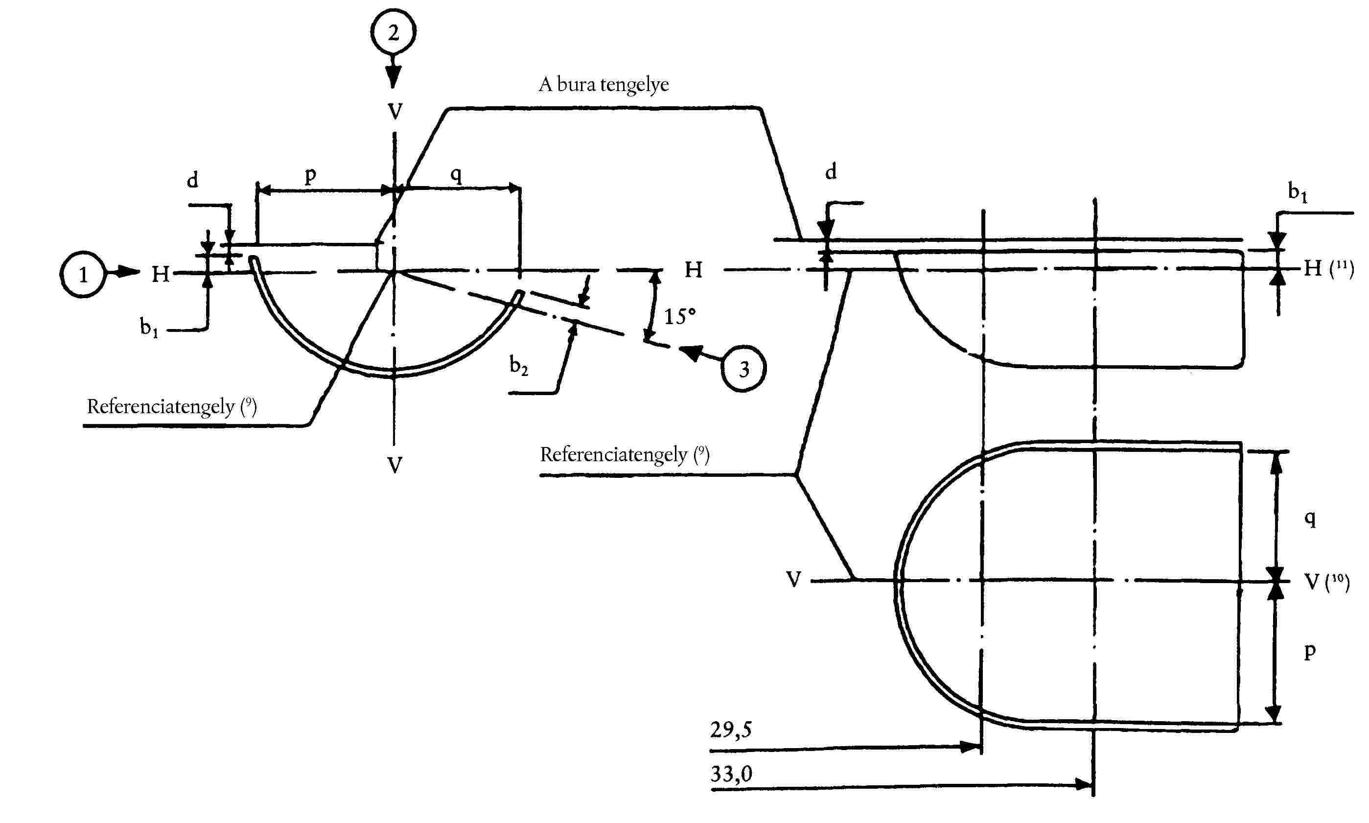 ( 33 ) A bal oldali közlekedéshez szolgáló mérőernyőnek az e mellékletben látható ábra v-v vonalára szimmetrikusnak kell lennie.