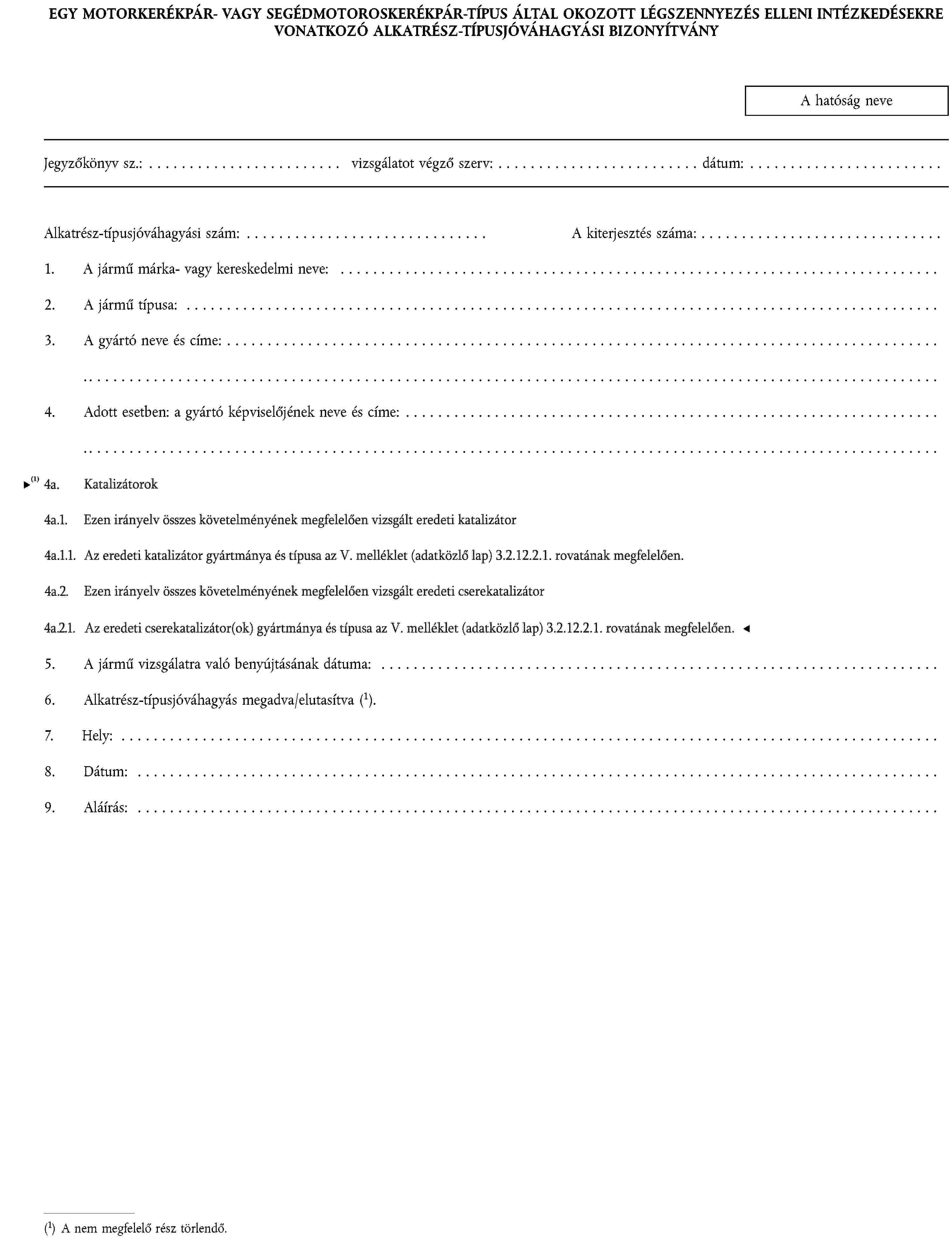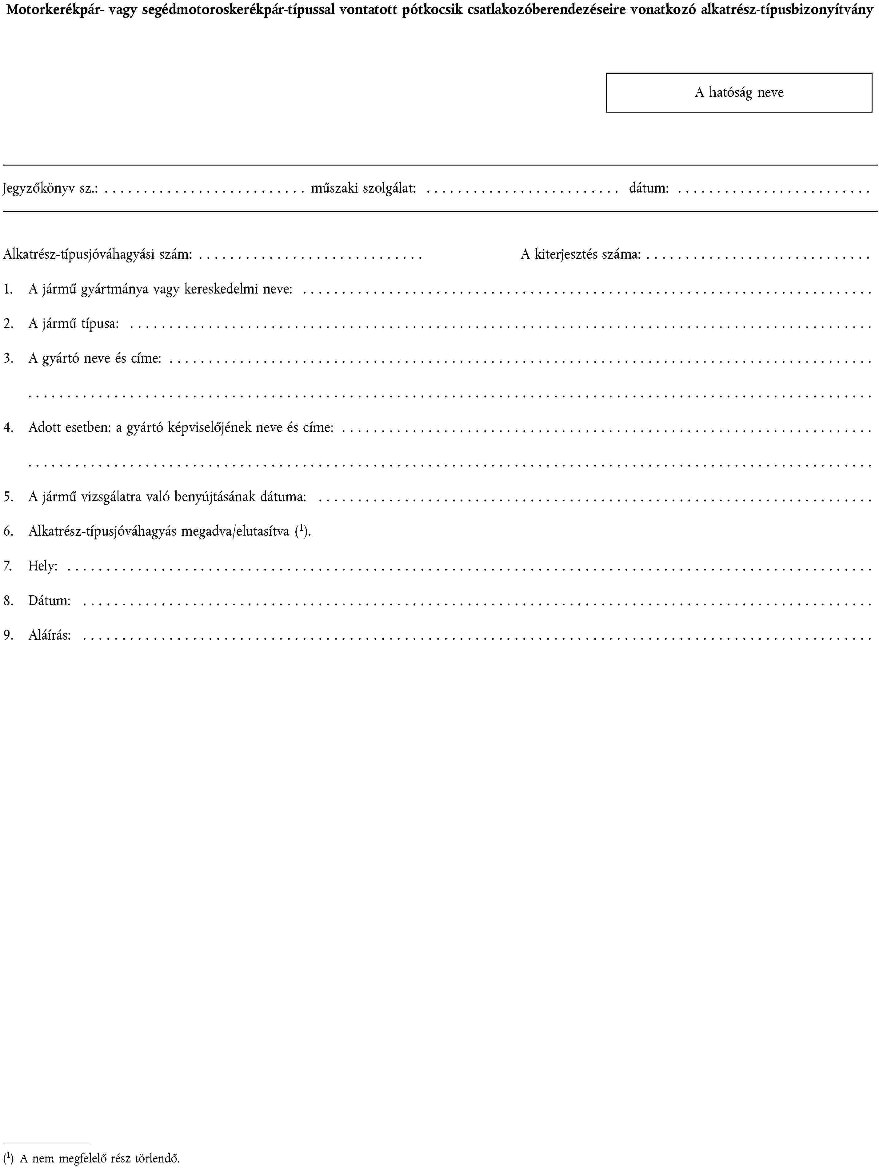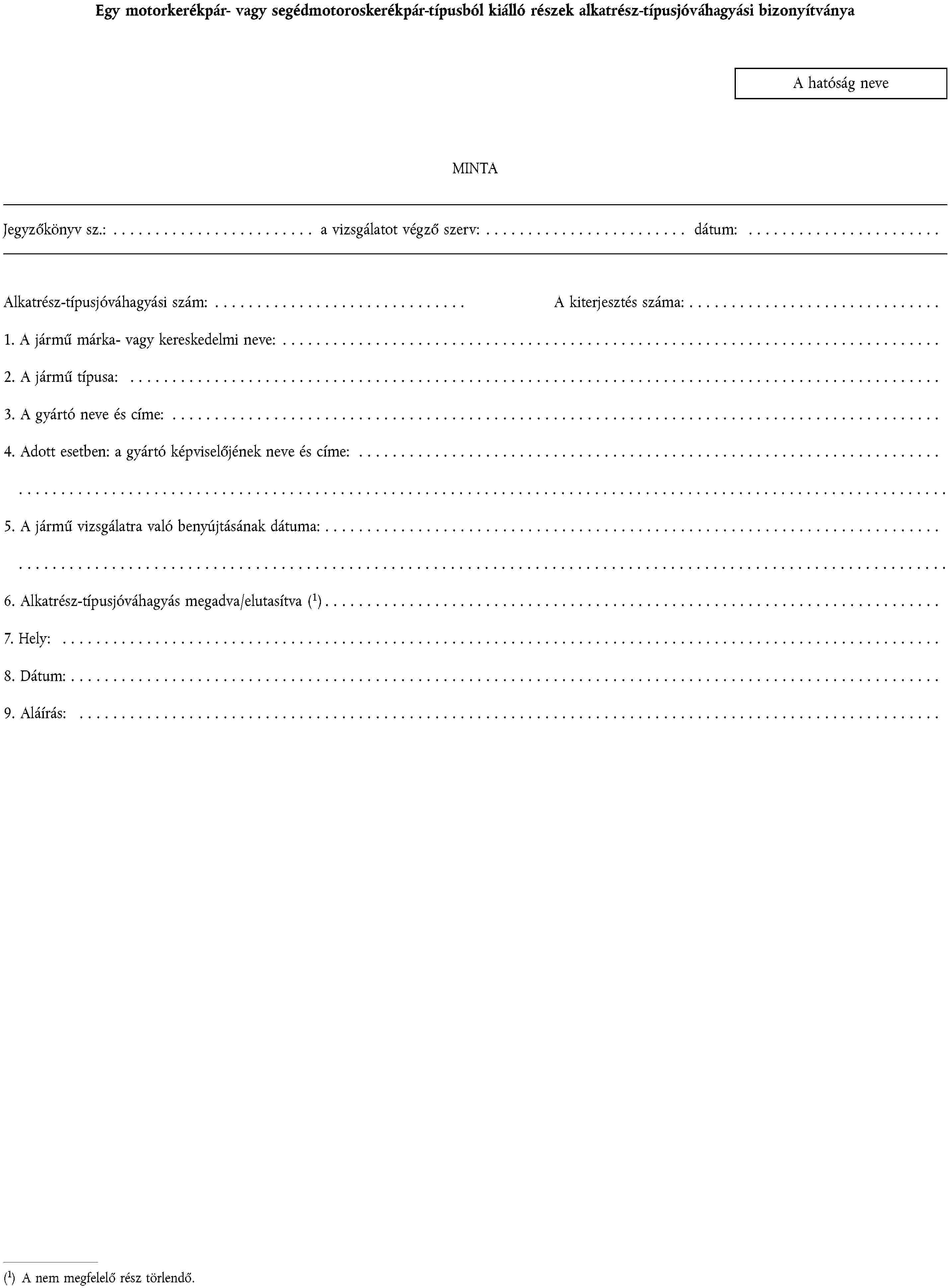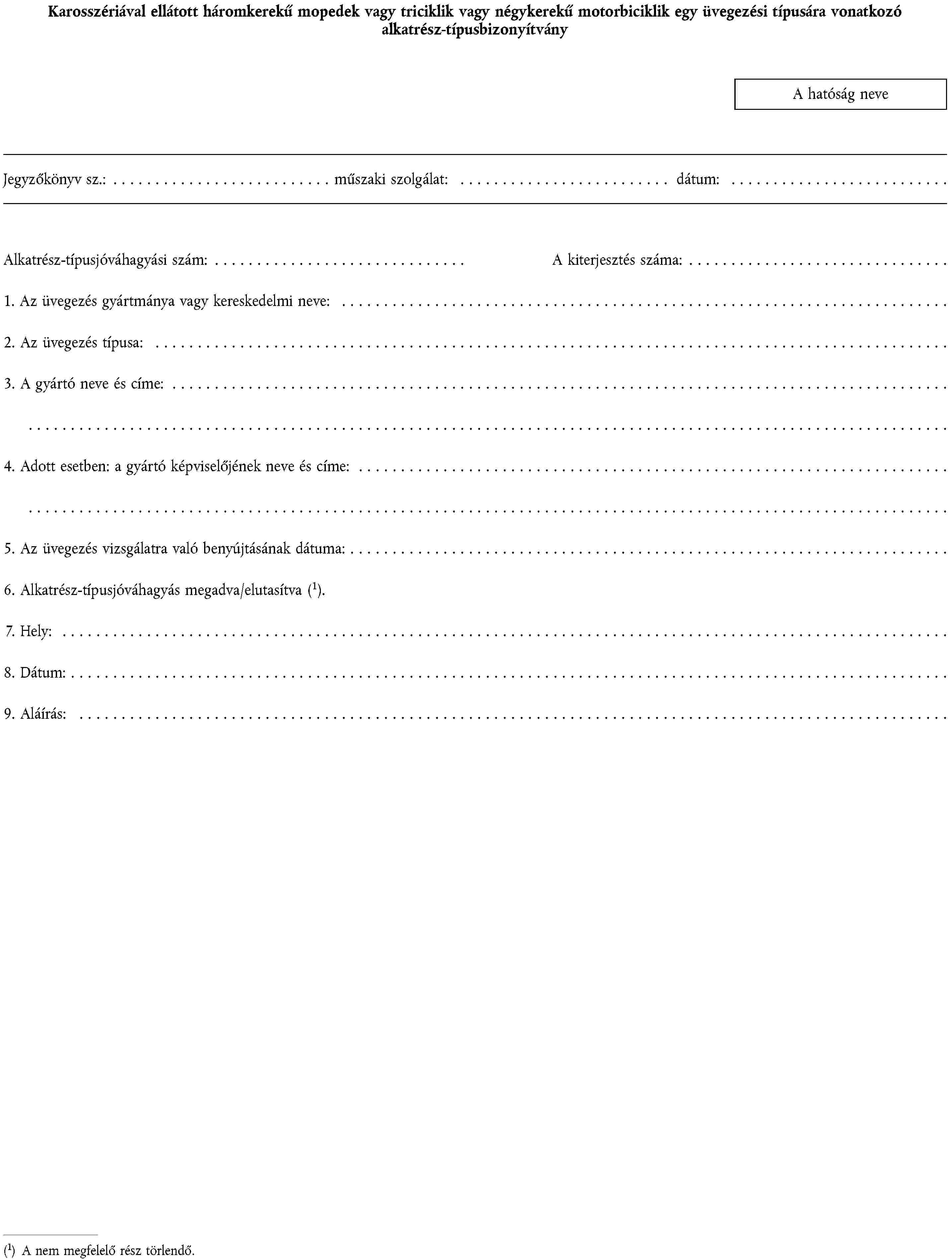 1. ALKATRÉSZ-TÍPUSJÓVÁHAGYÁSI KÉRELEM