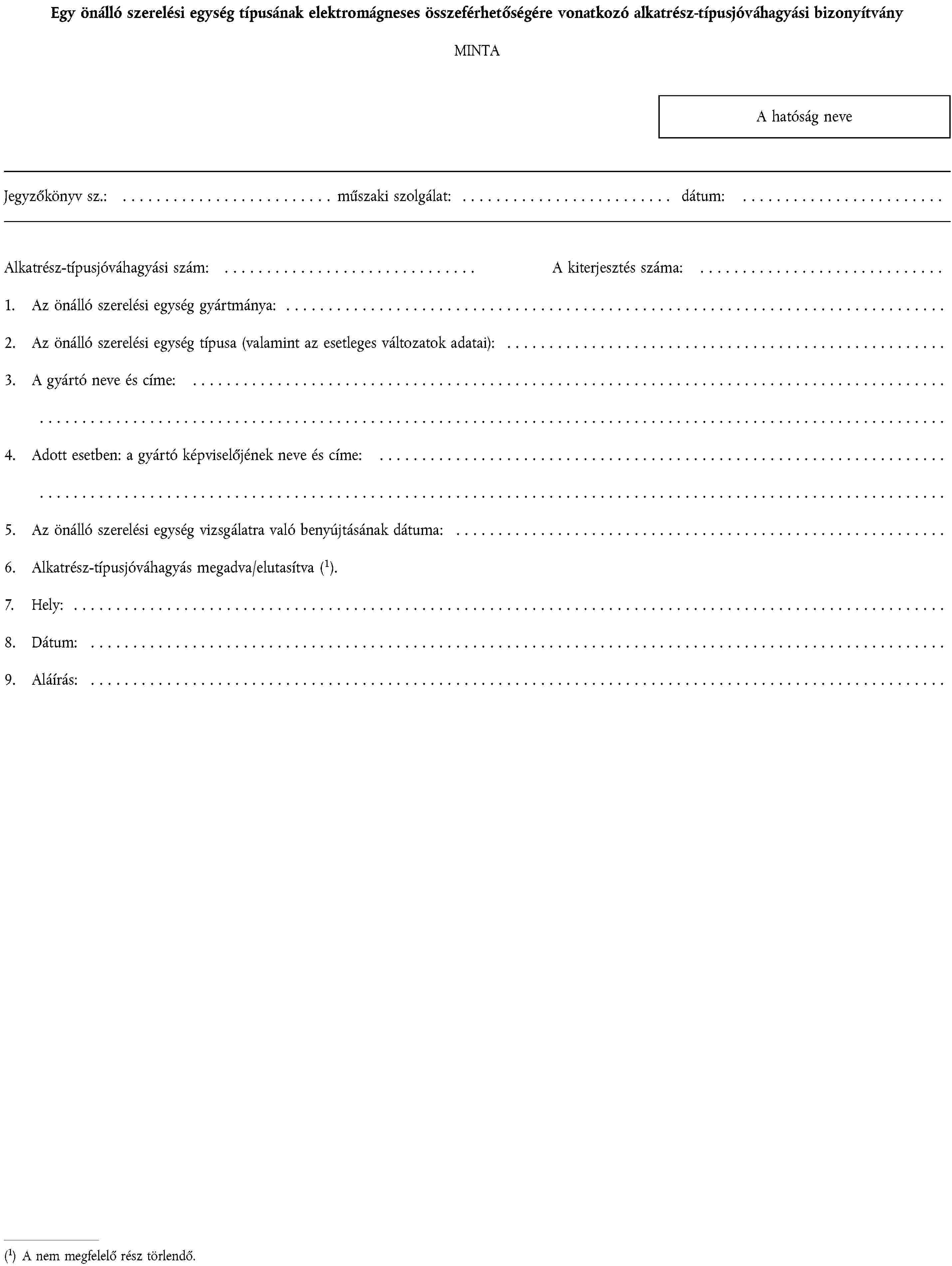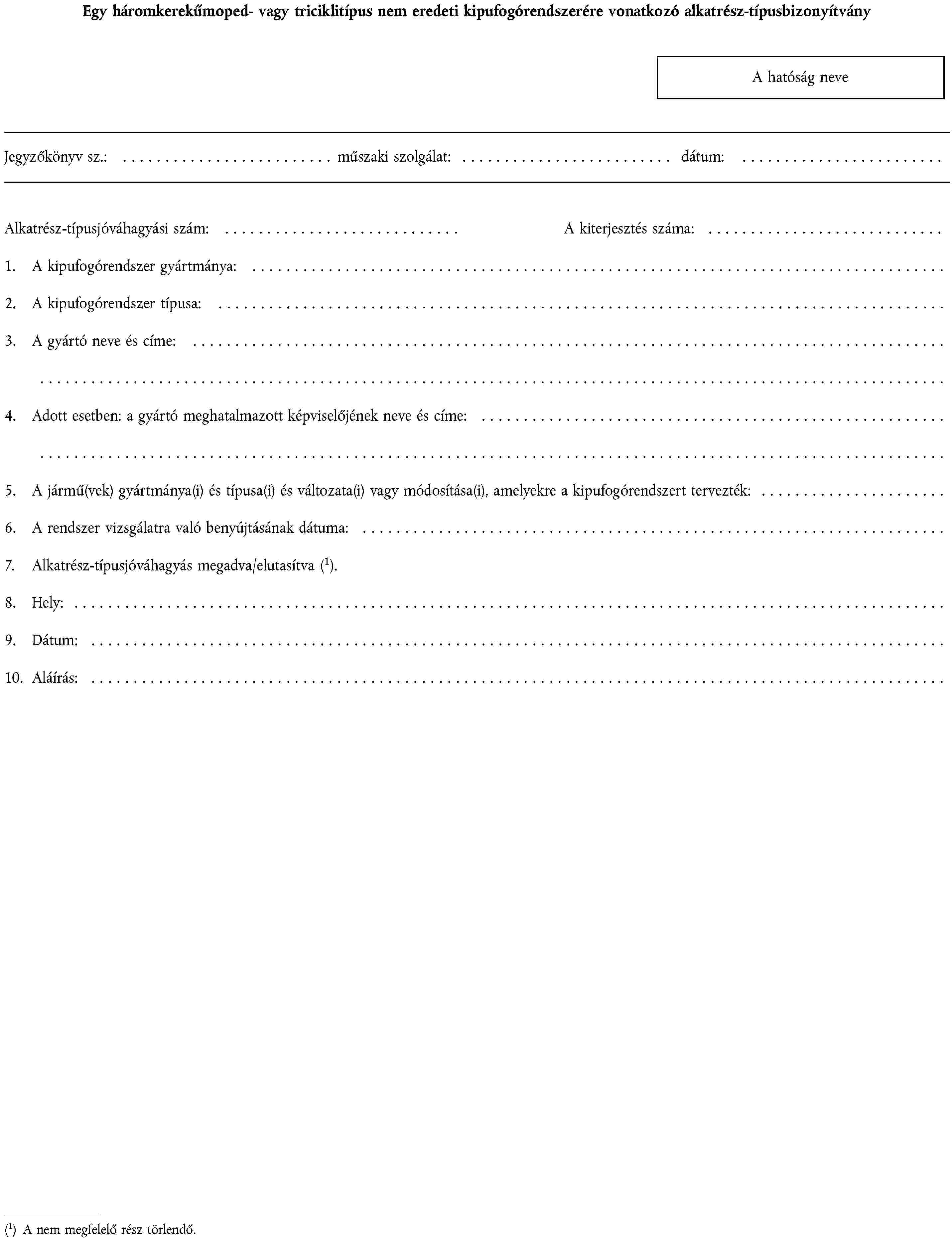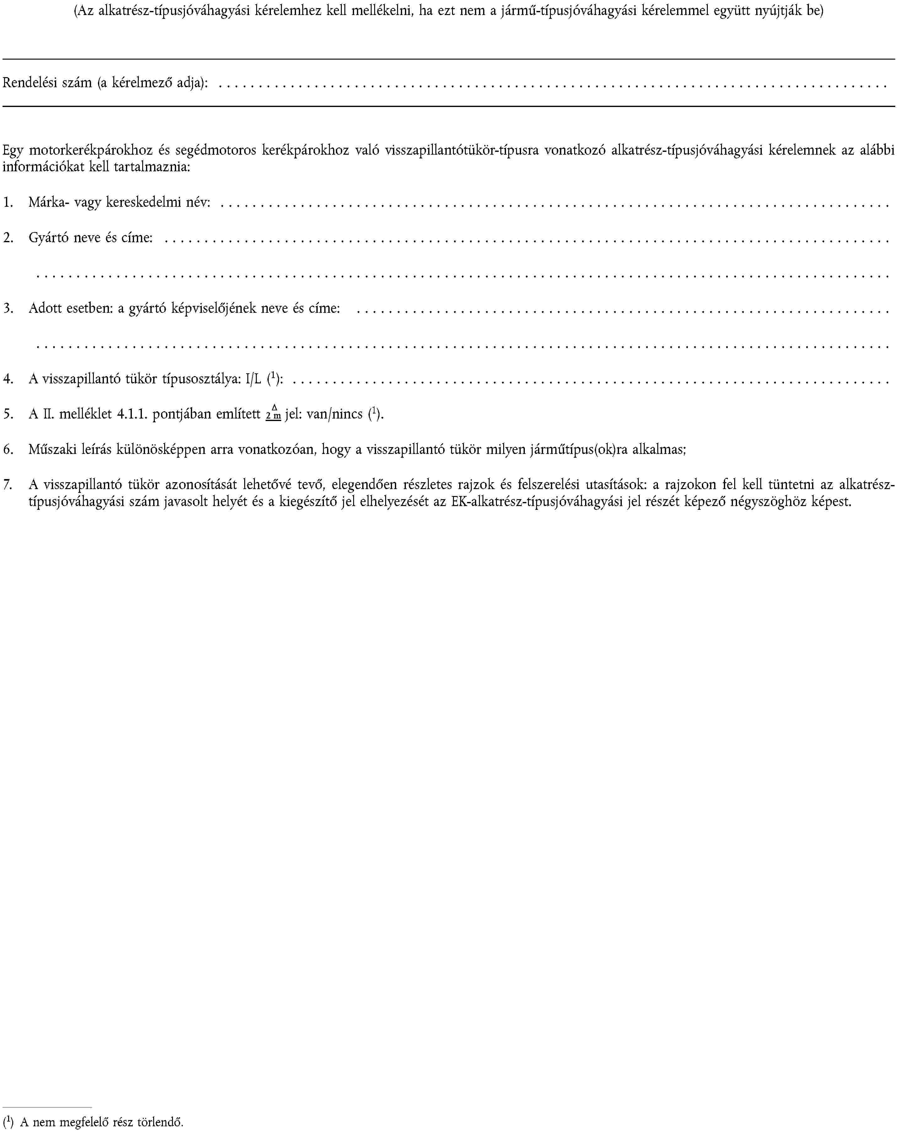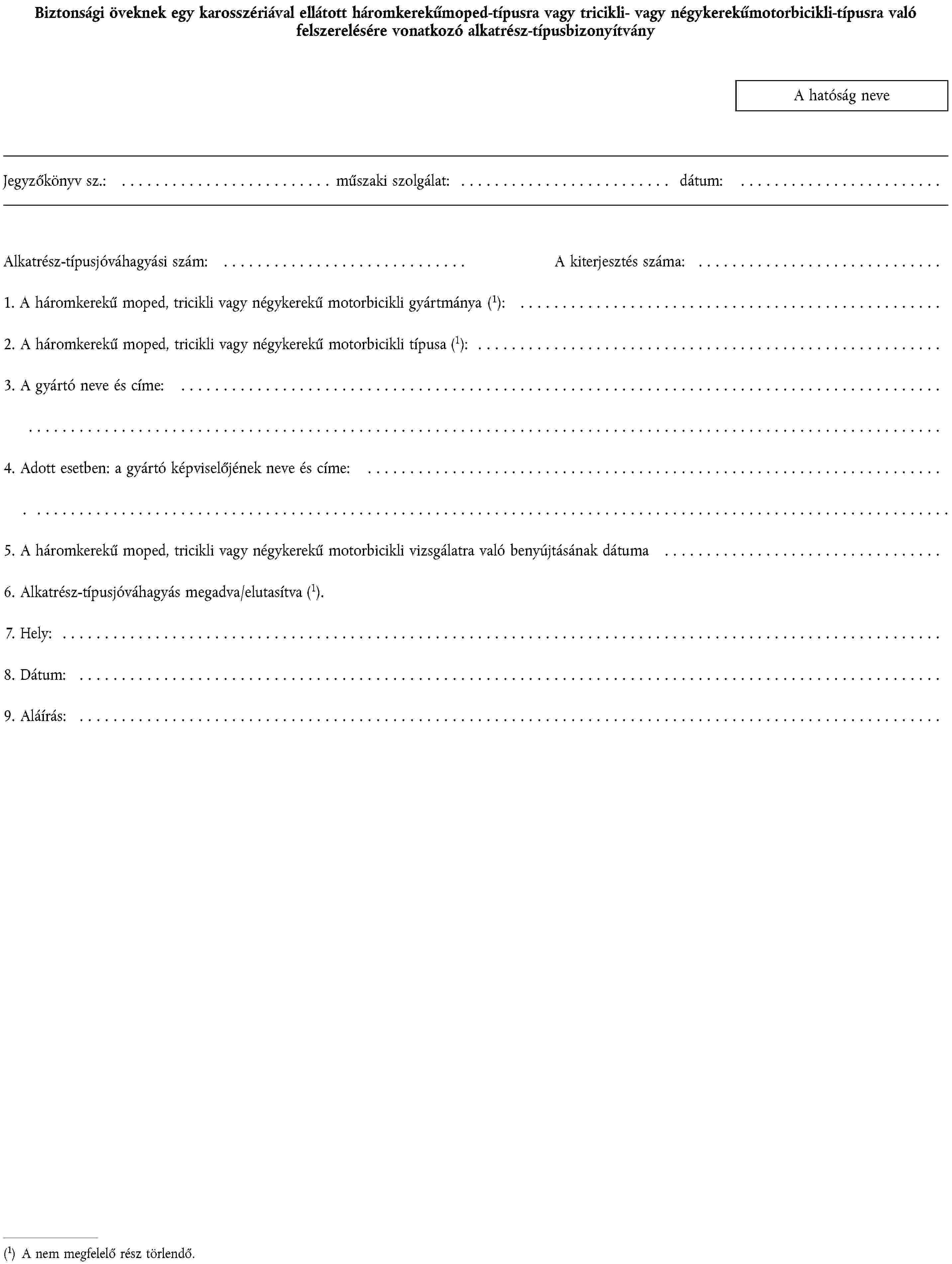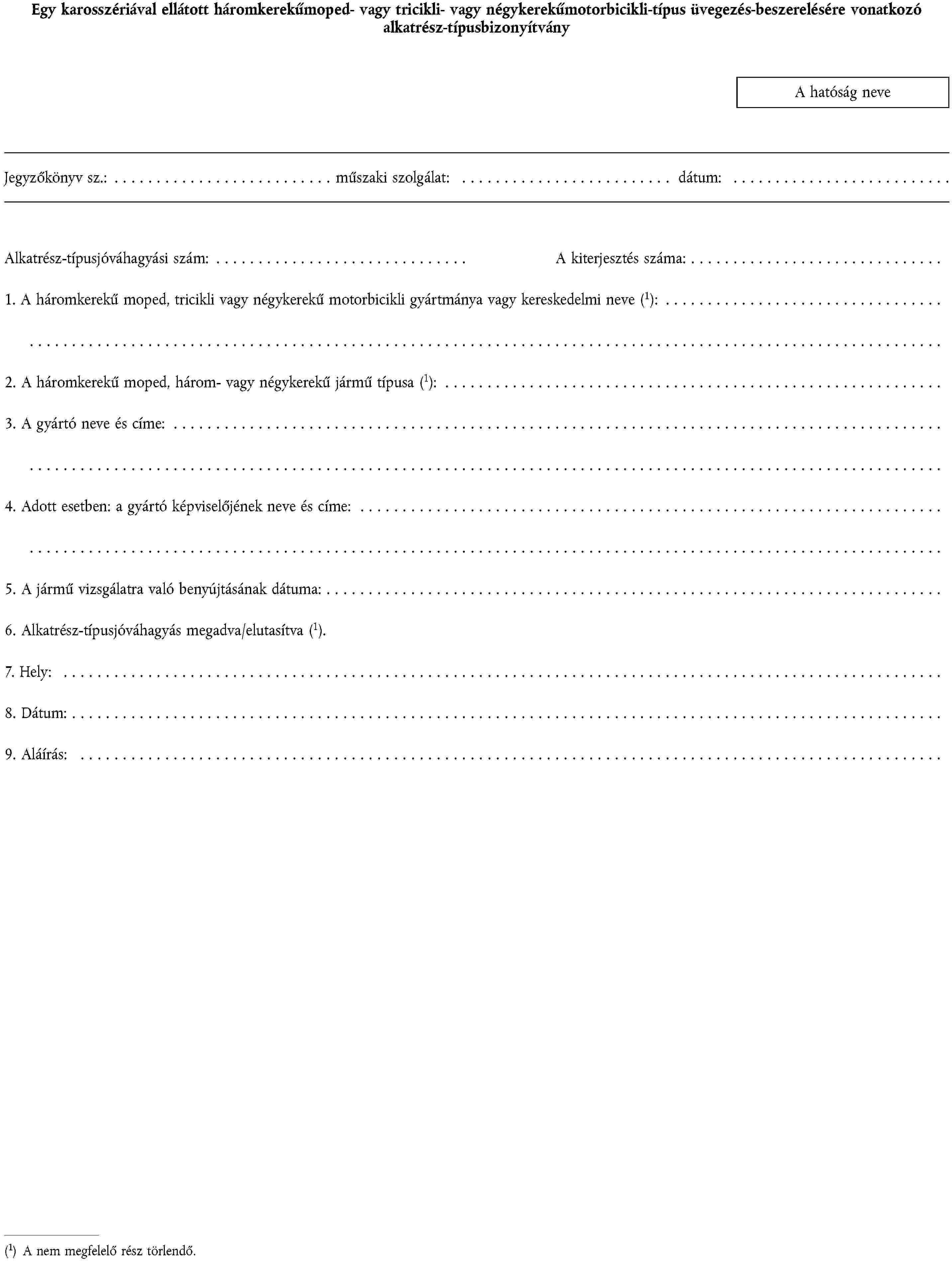 1. ALKATRÉSZ-TÍPUSJÓVÁHAGYÁSI KÉRELEM