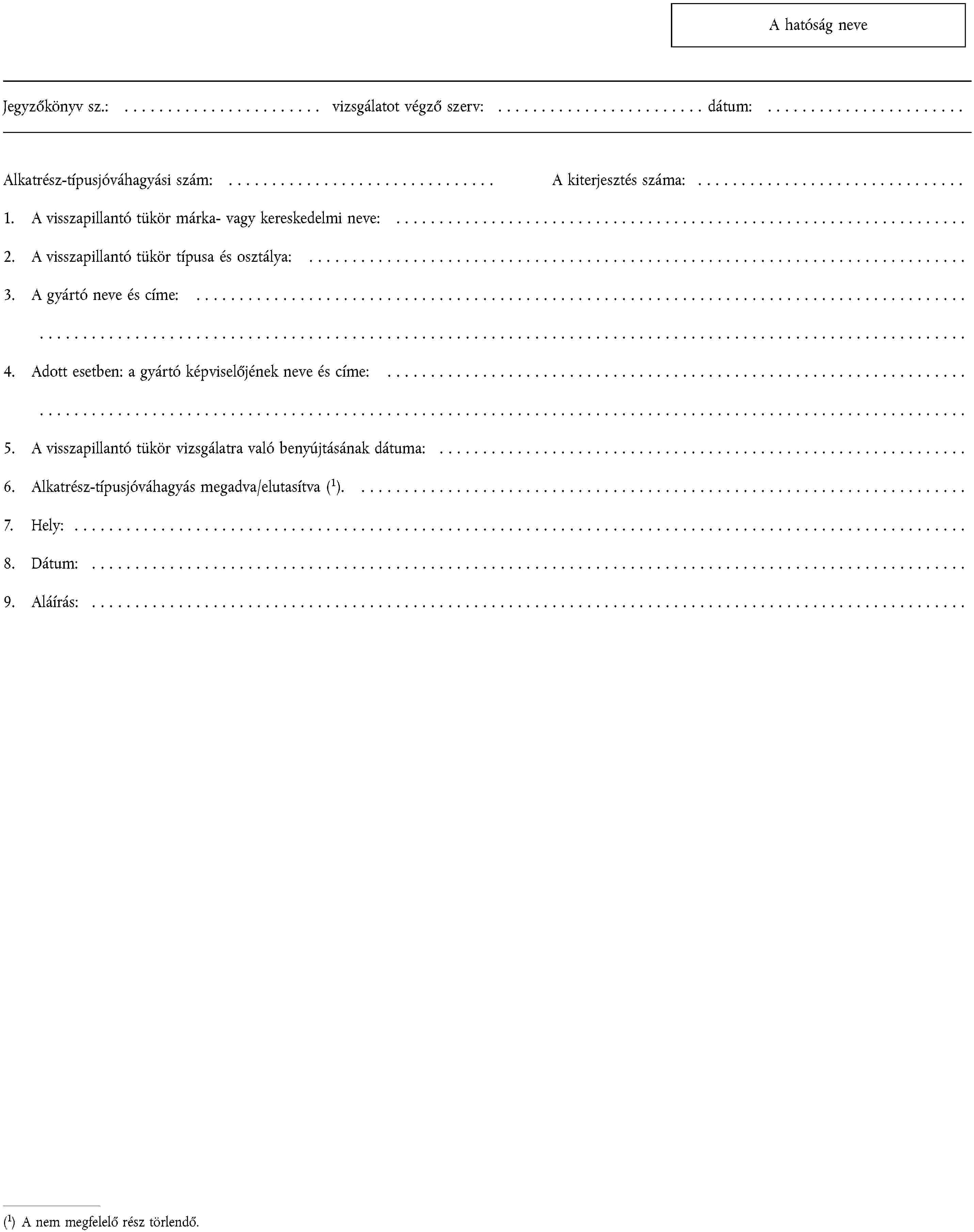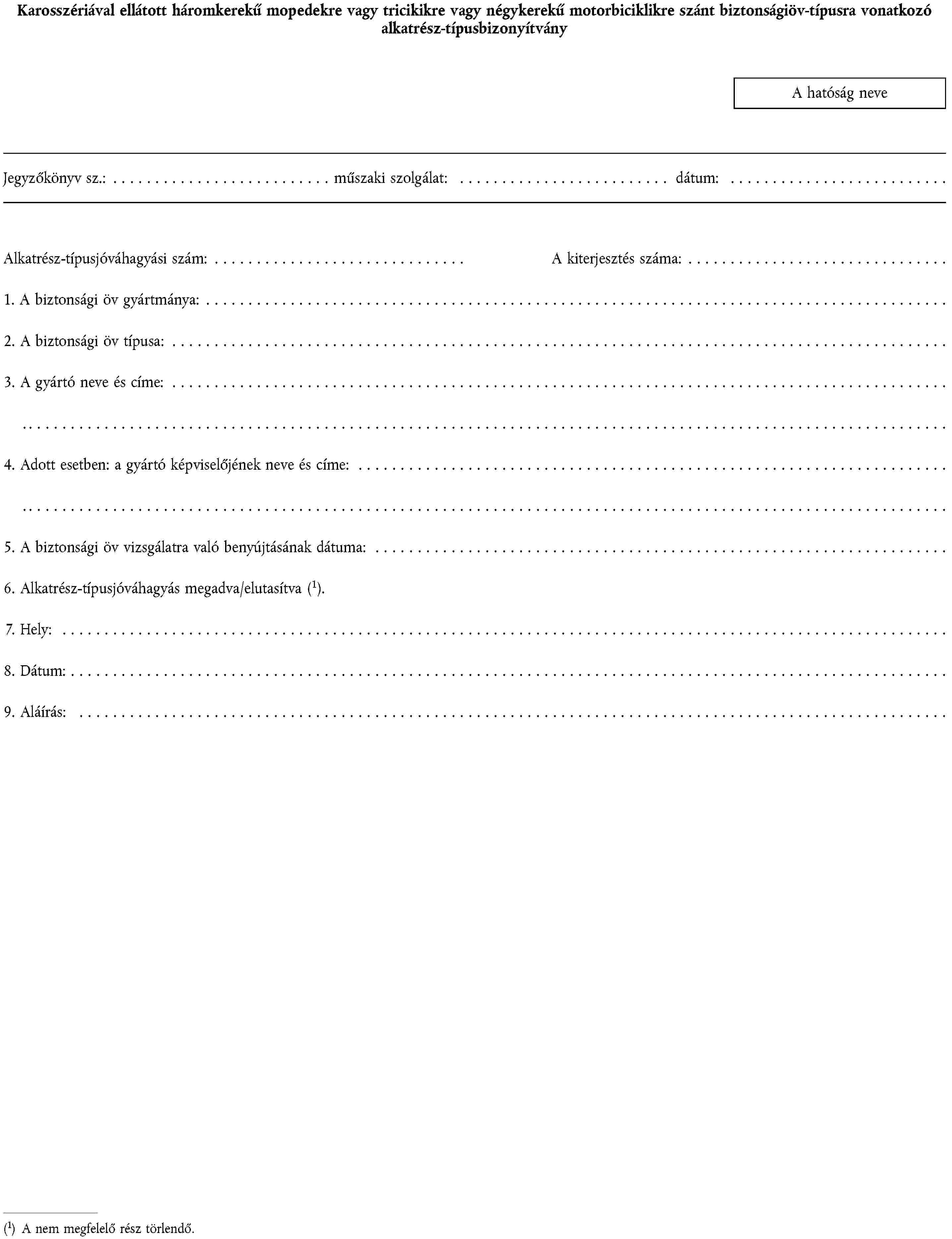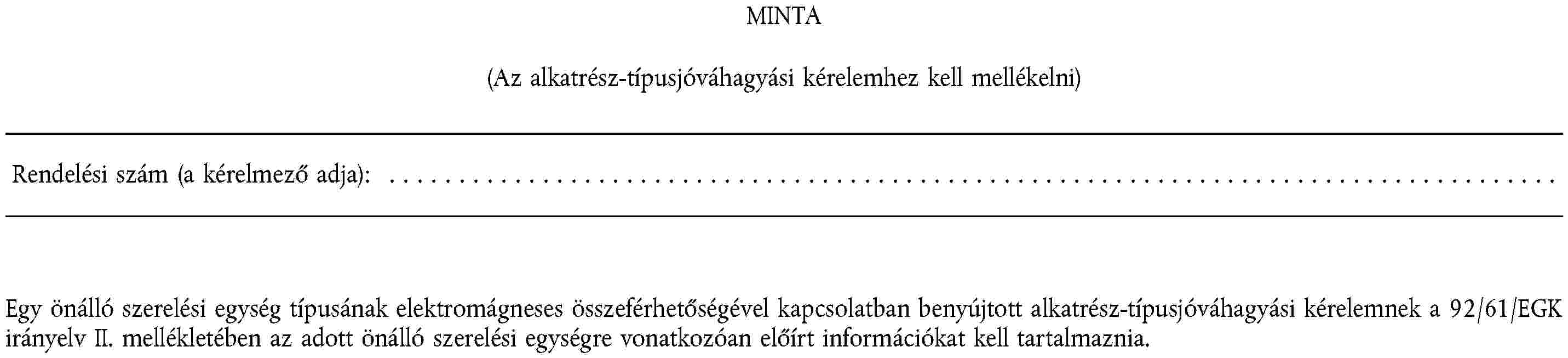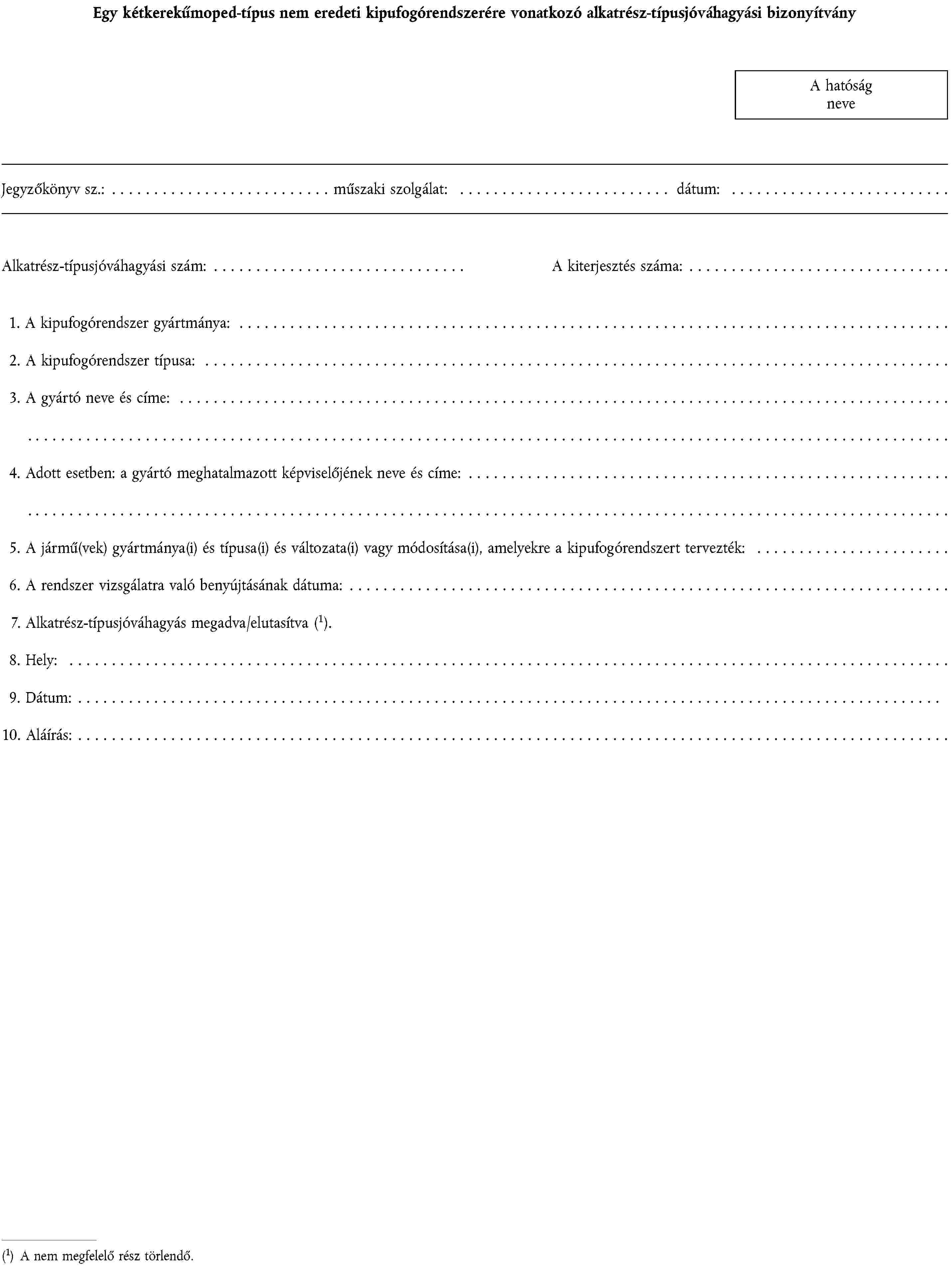 1. ALKATRÉSZ-TÍPUSJÓVÁHAGYÁSI KÉRELEM