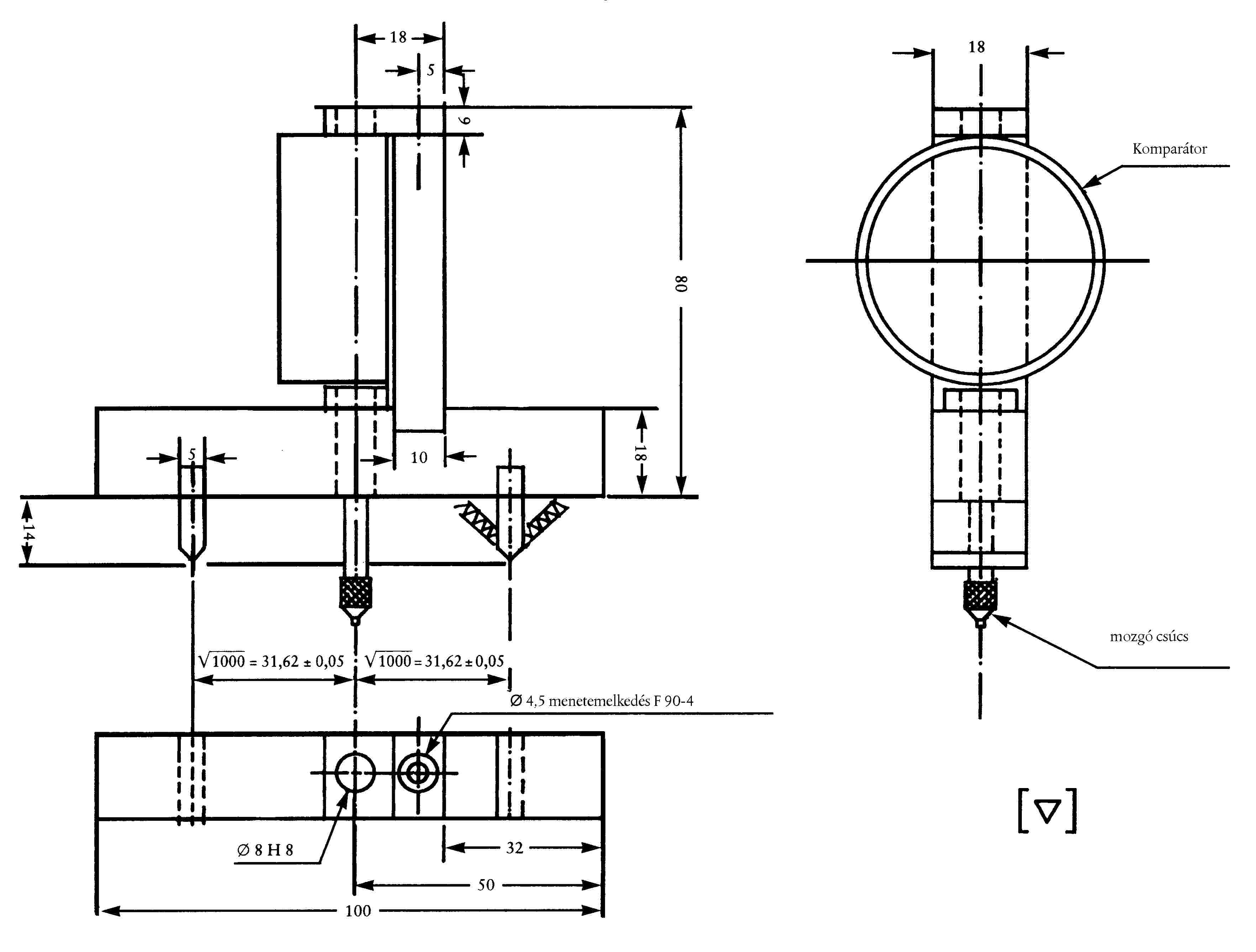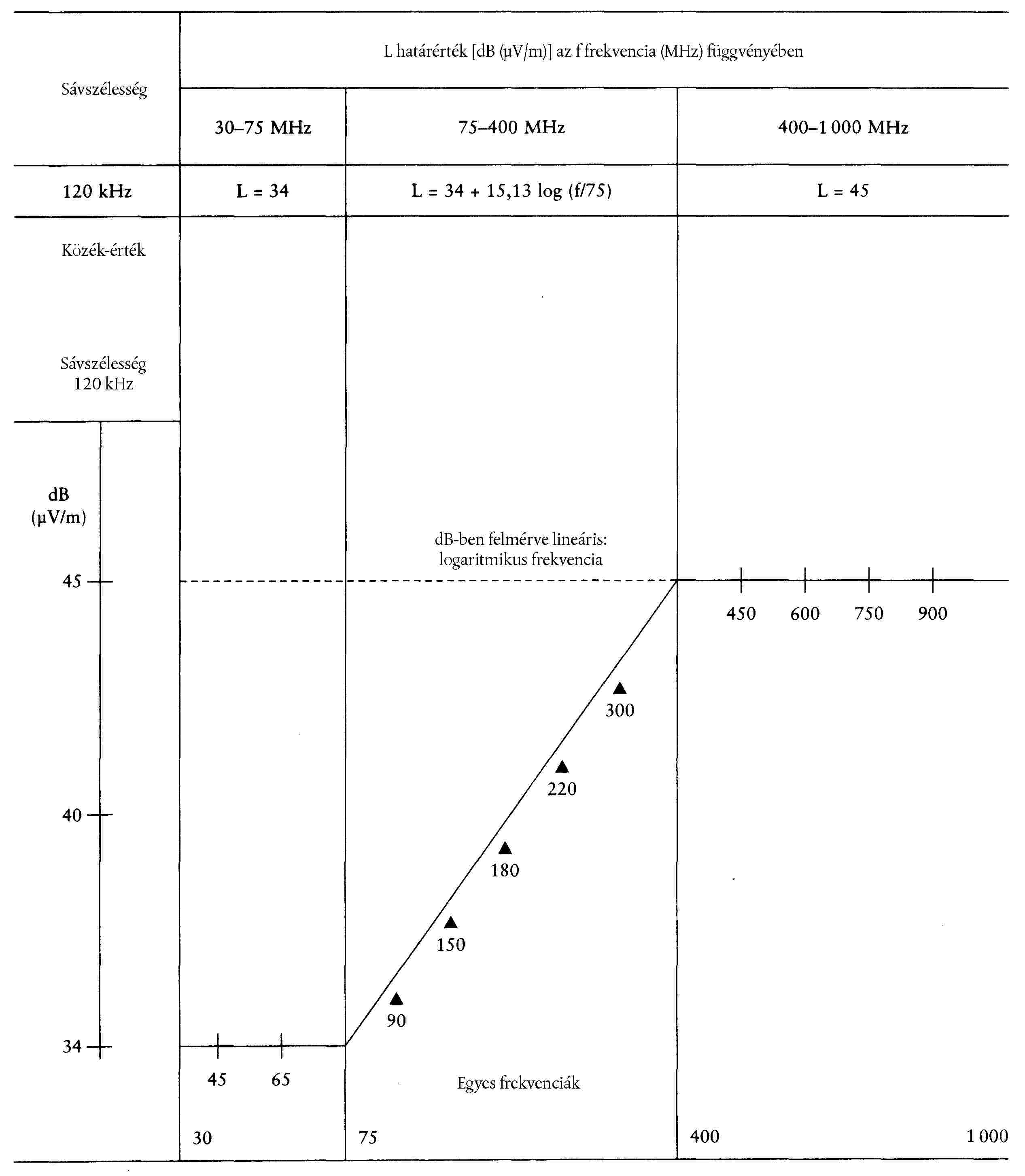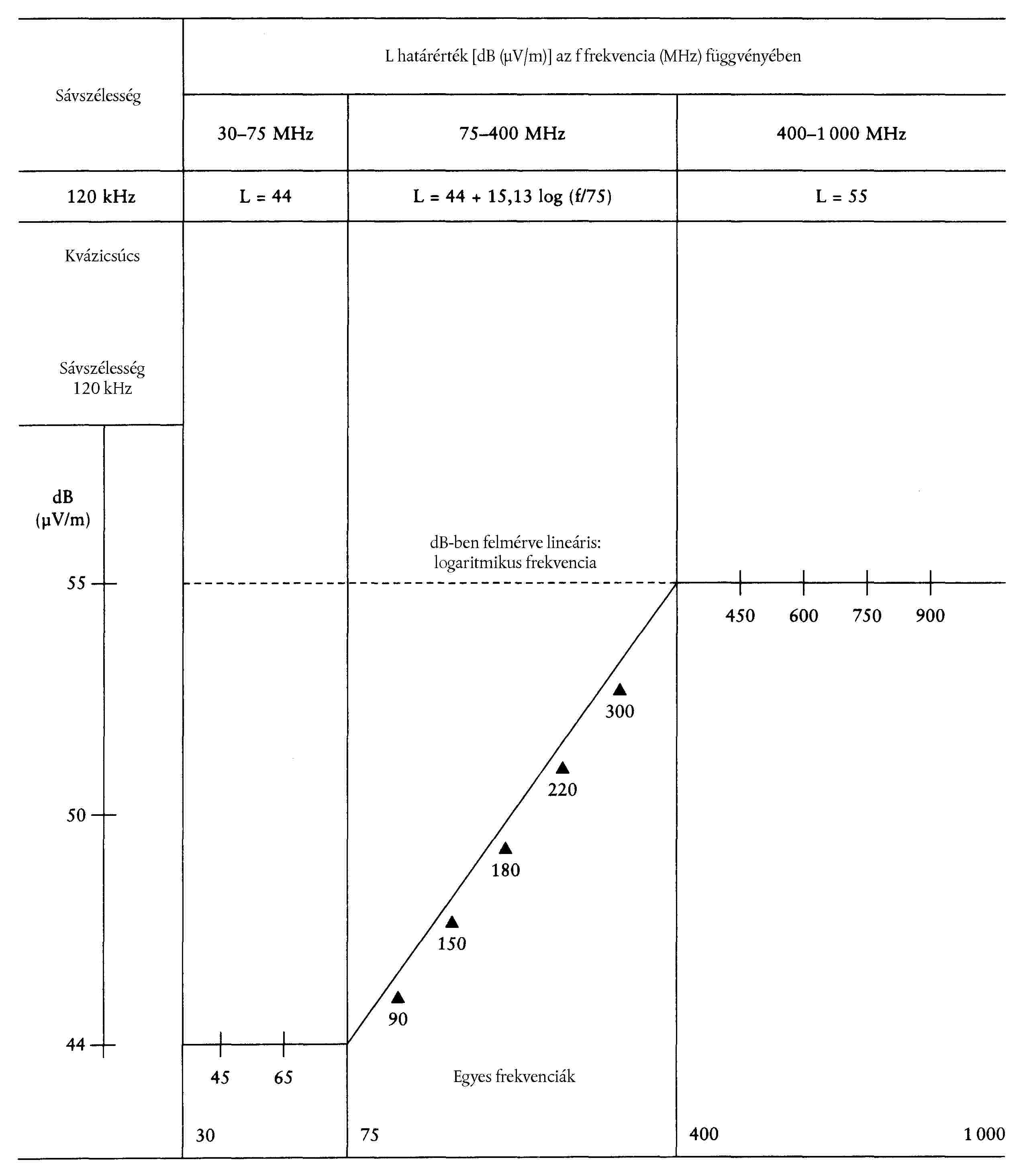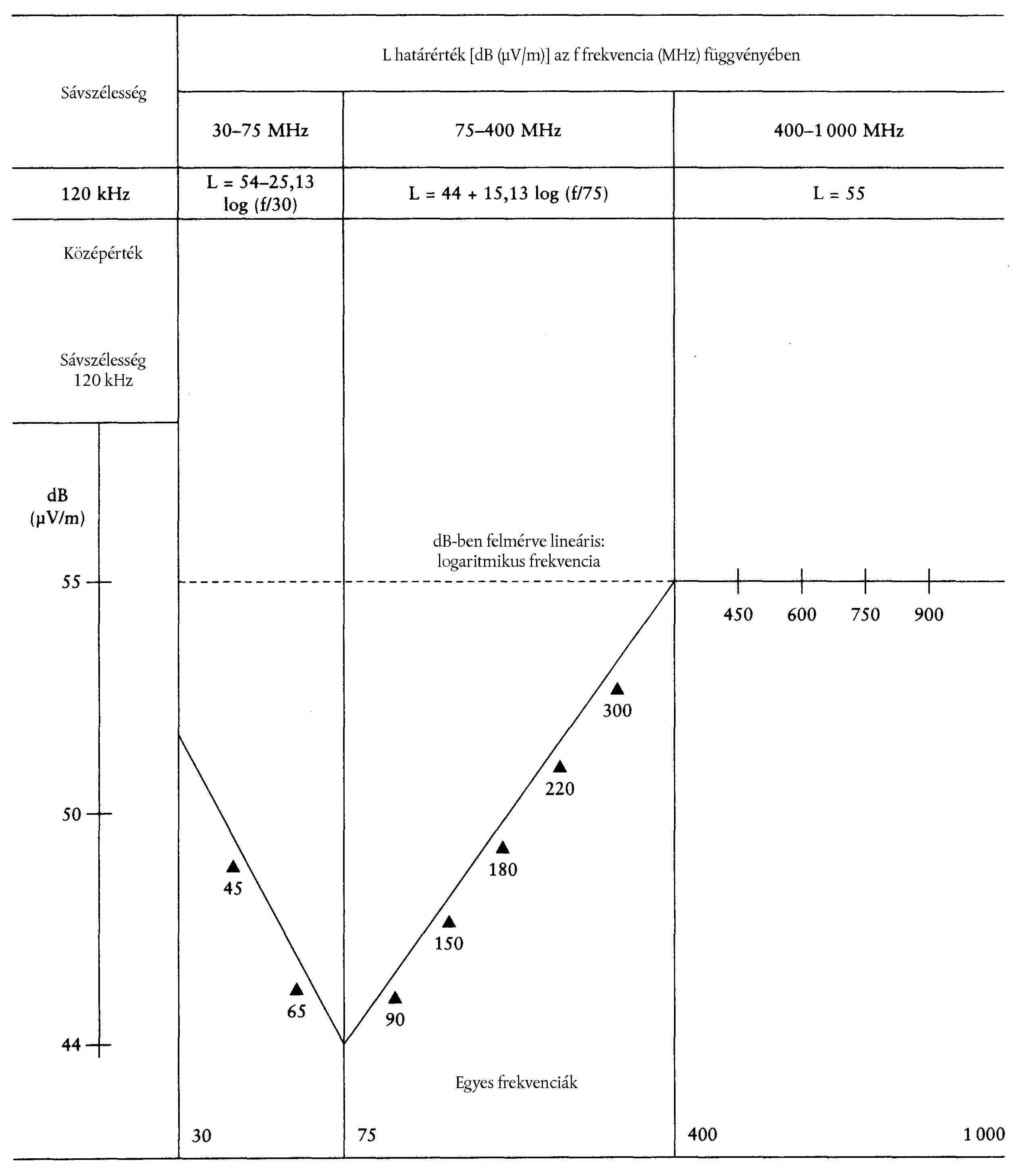 ( 44 ) 50 V a 25 méterre lévő ernyőn 375 mm-rel van a HV alatt, a v-v függőleges egyenesen.