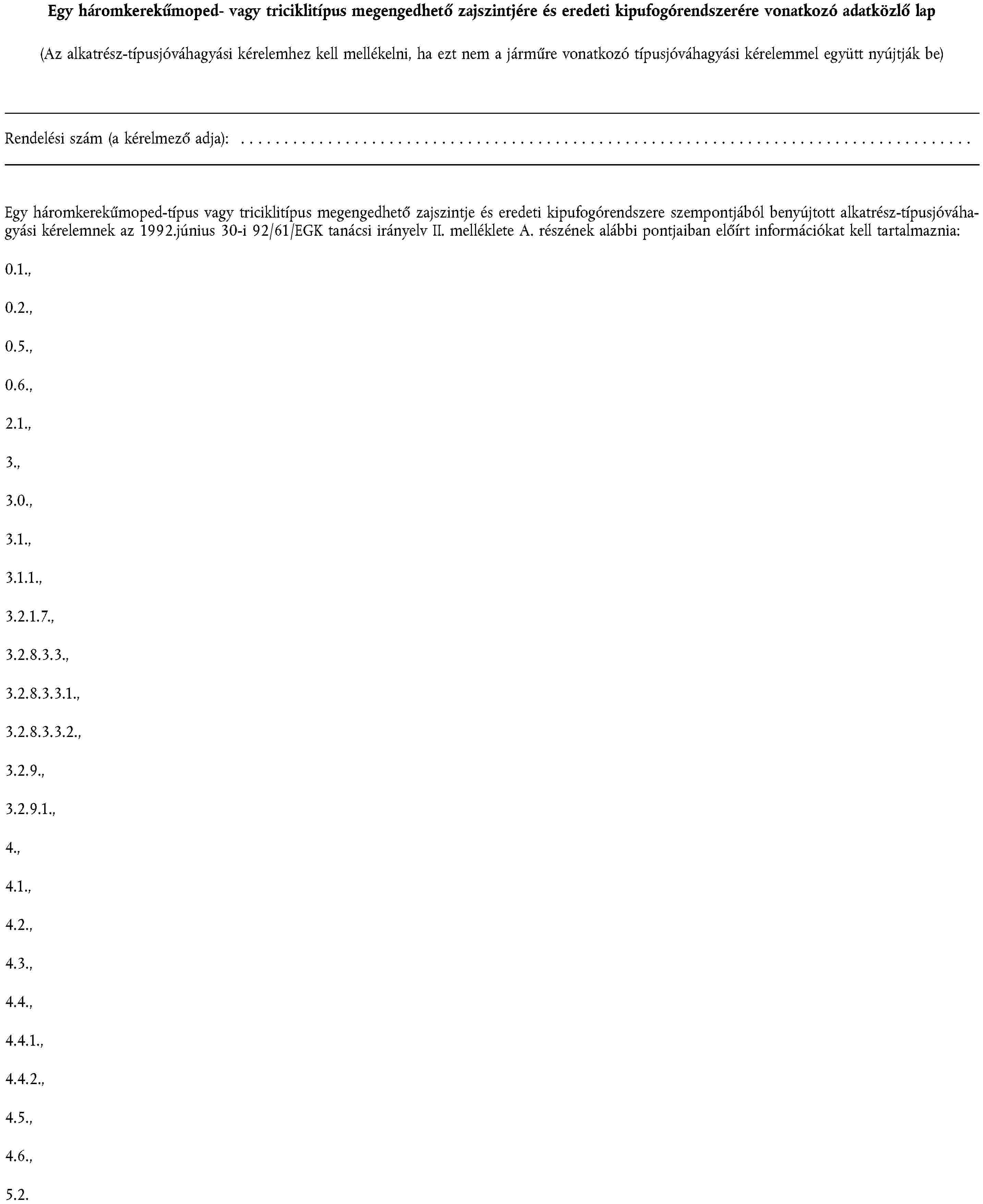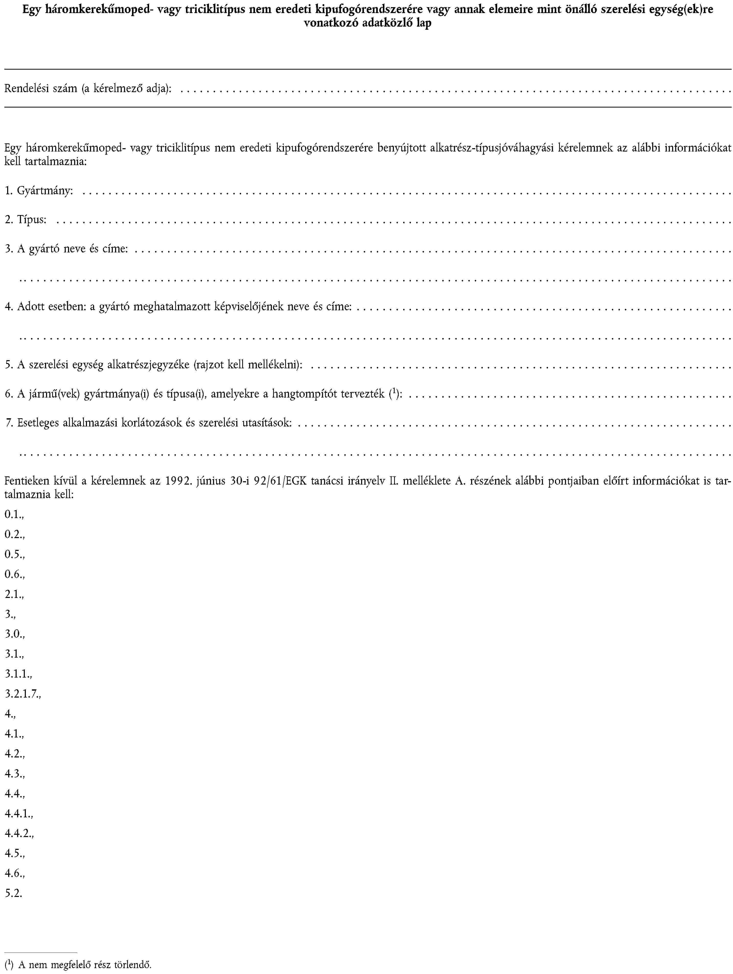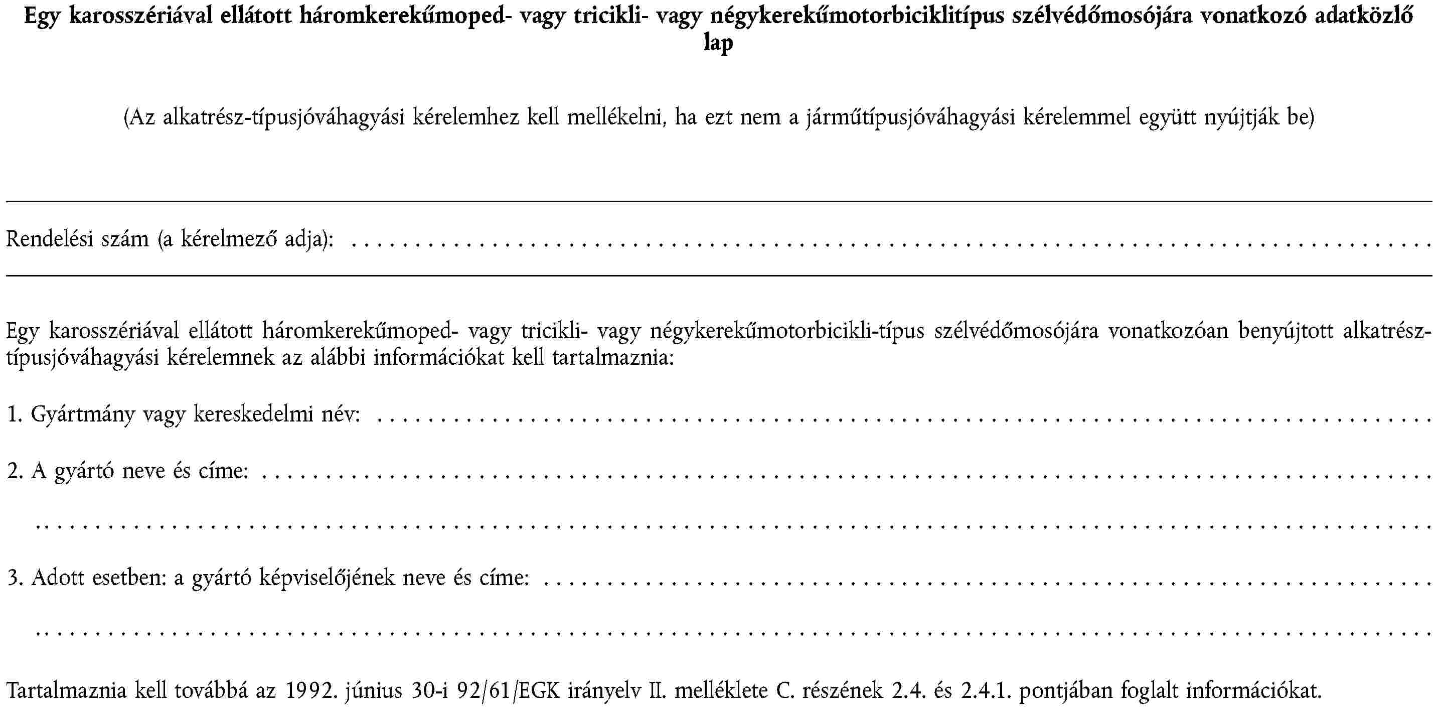 1. függelék | Egy motorkerékpárra vagy segédmotoros kerékpárra szánt gumiabroncs-típus felszerelésére vonatkozó adatközlő lap |