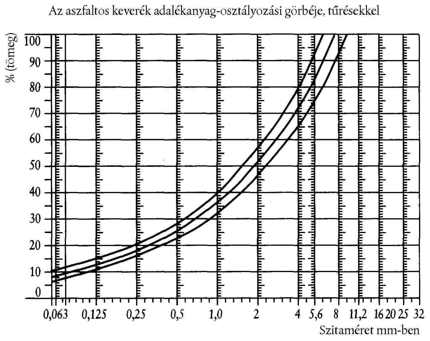 Szemcsenagyság (μm-ben) | Méret szerinti eloszlás (%-ban) |