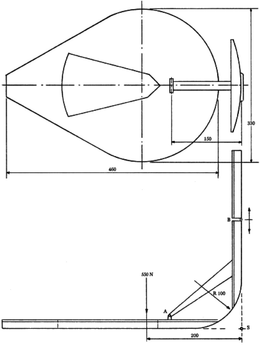 4.2. 550 N erővel kell megterhelni az (A) csukló előtt 50 mm-rel, majd a két háttámlalapot enyhén érintőlegesen a háttámlának nyomják;