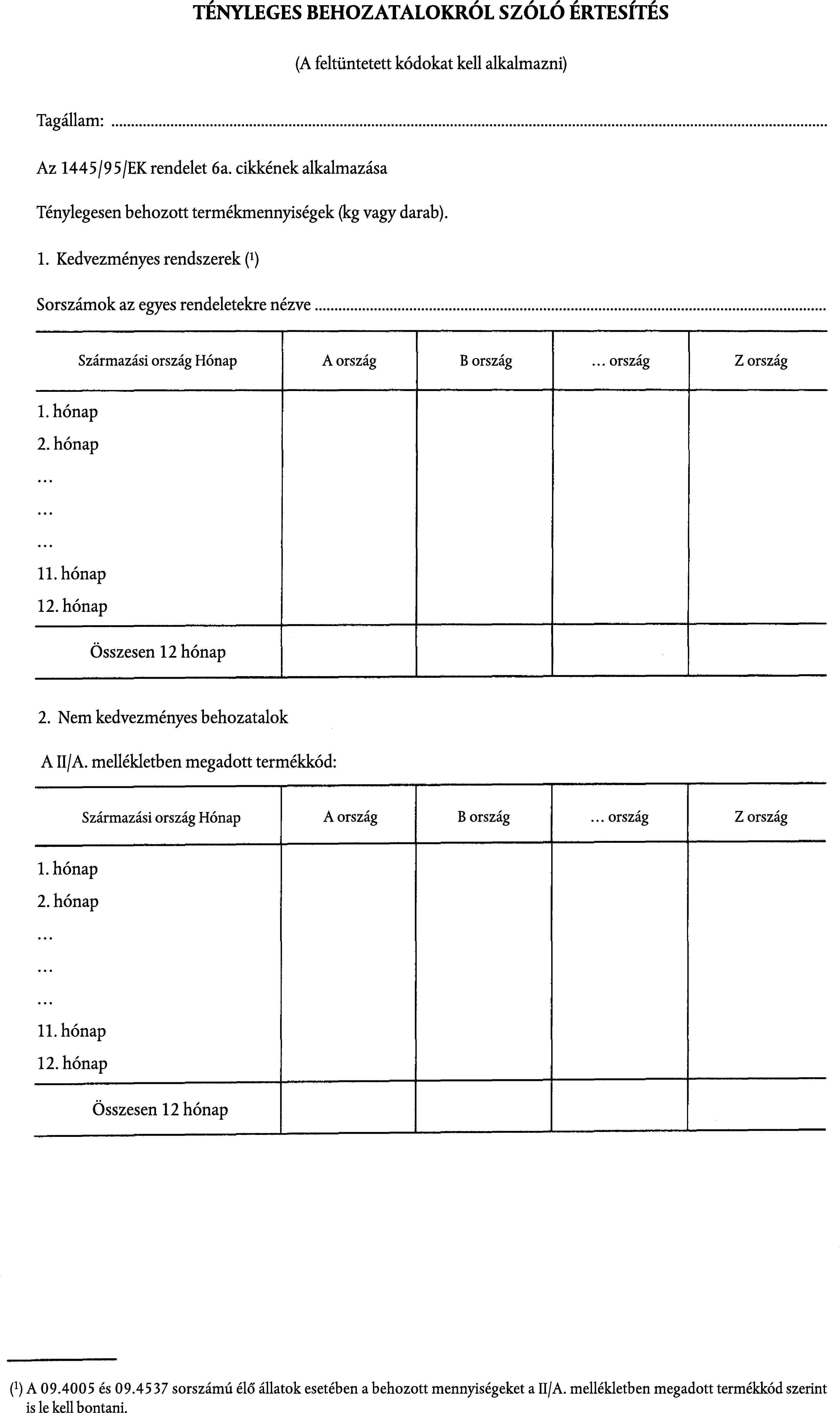 Valamennyi értesítést, a "nulla" bevallásokat is beleértve, a II/B. mellékletben megadottak szerint kell elkészíteni, és azok a behozott mennyiségeket tartalmazzák: