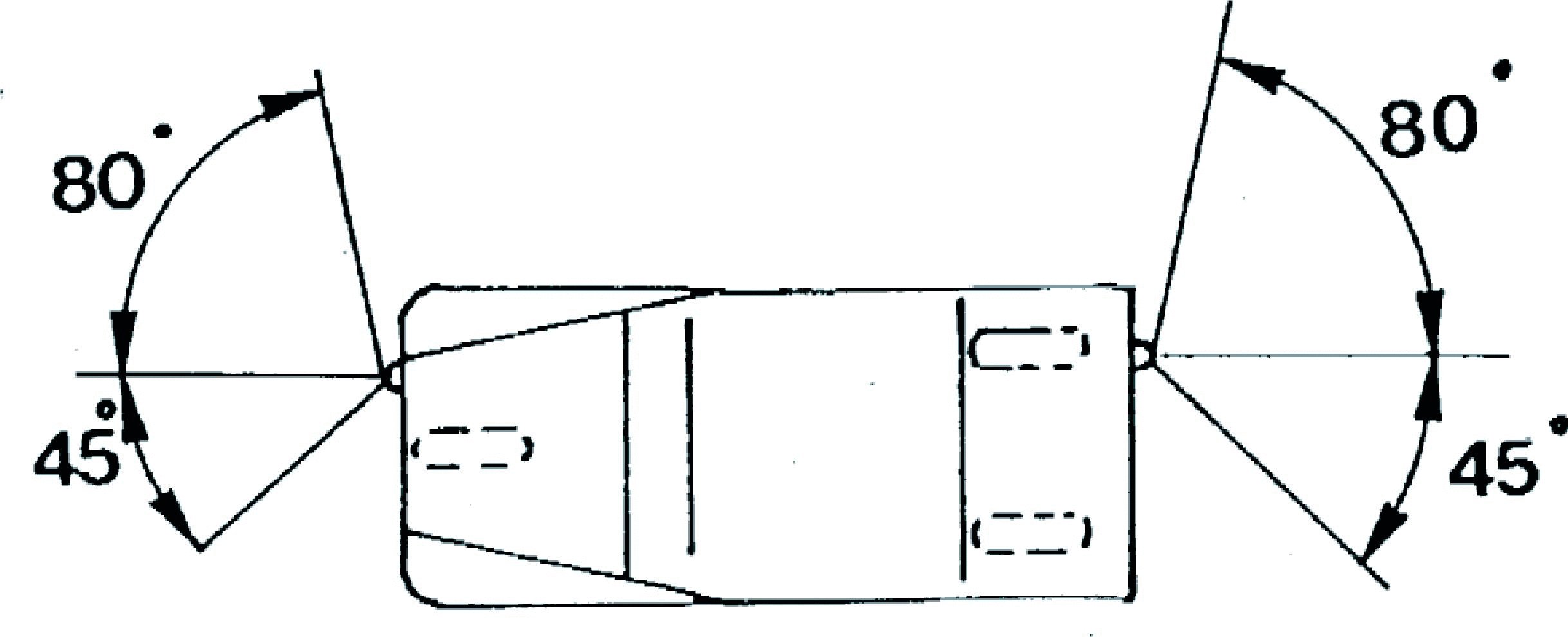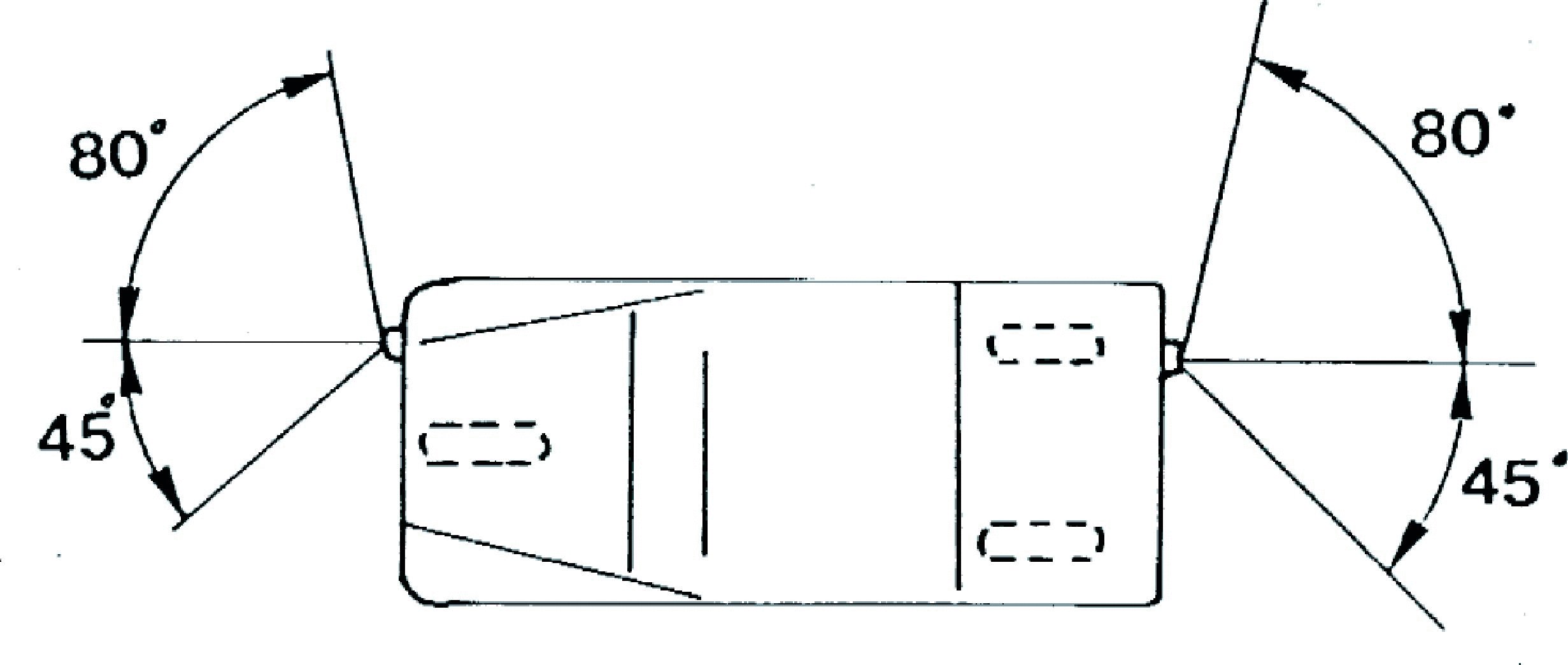 6.13.5. Irányítás: a fényvisszaverők vonatkozási tengelyének a jármű hosszanti középsíkjára merőlegesnek kell lennie, és kifelé kell irányulnia. Az elöl lévő fényvisszaverők elfordulhatnak a kormányzási szöggel együtt.