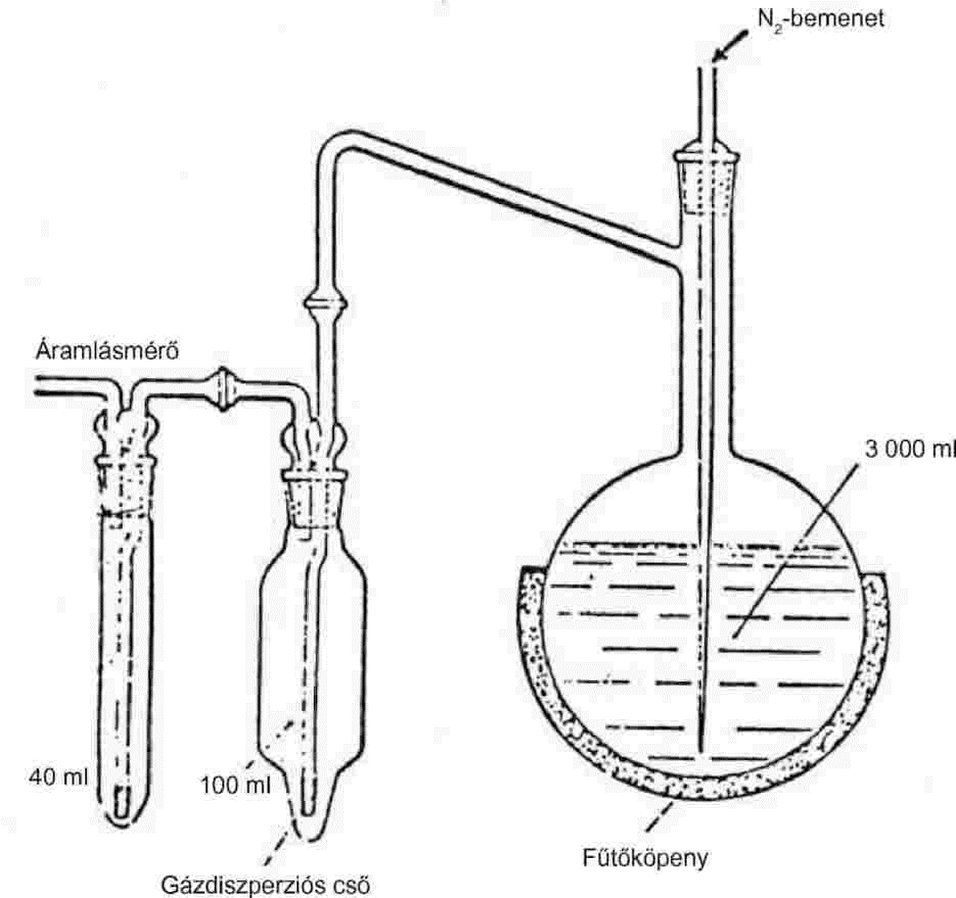 3.1. Desztillációs készülék, lásd az ábrát. A készülékben folyamatos a nitrogénáram.