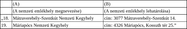 A Kötv. 2. melléklet II. pontjában foglalt táblázat a következő 18. és 19. sorral egészül ki: