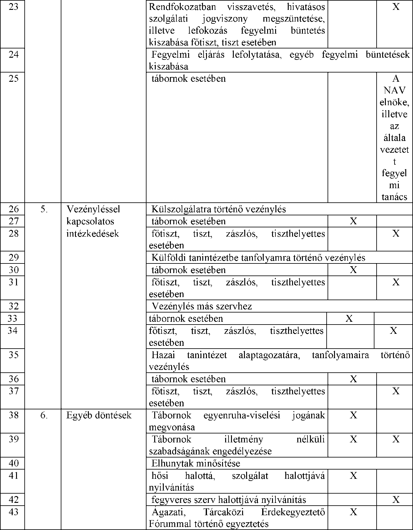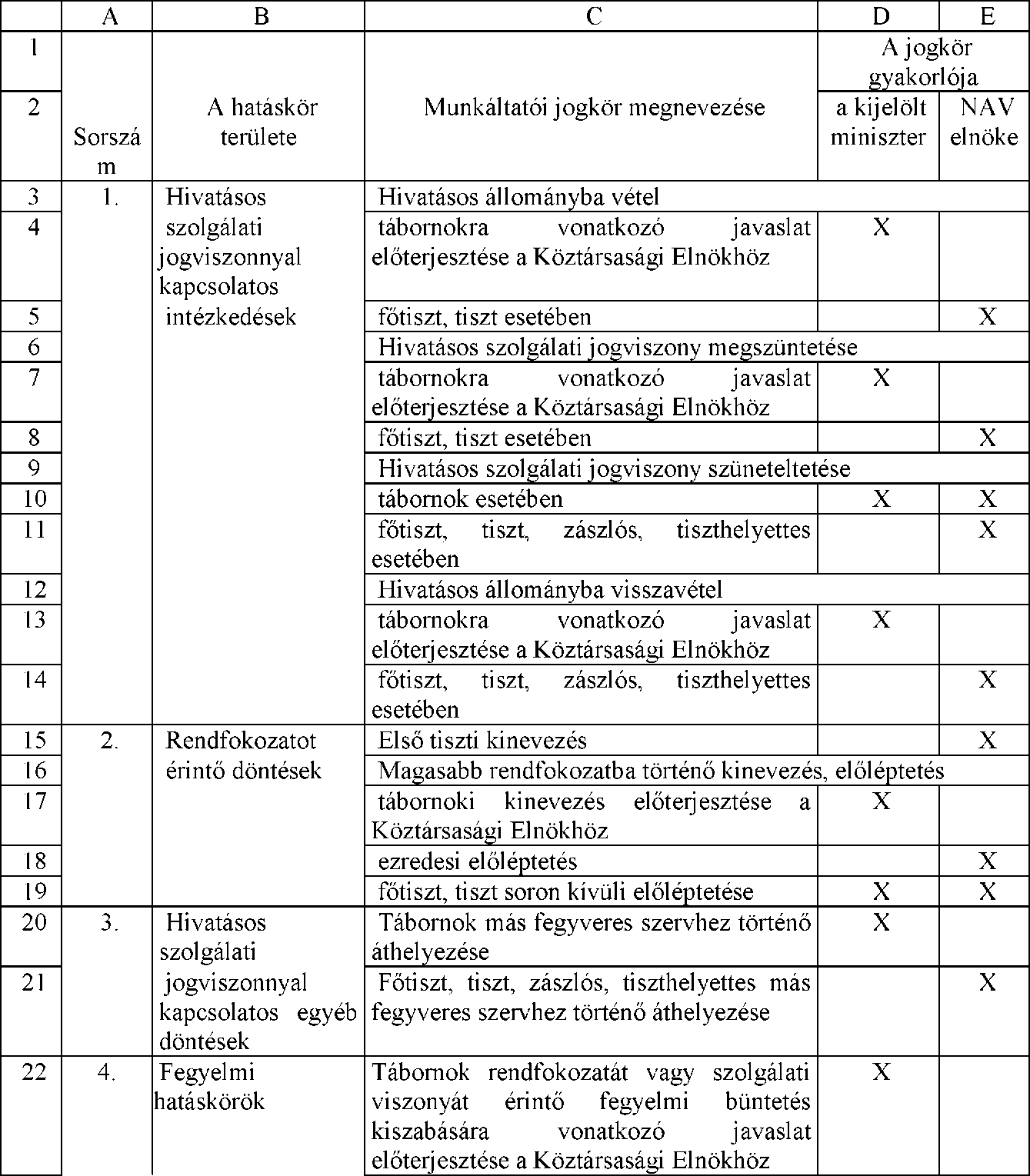 Kiemelt munkáltatói jogkörök gyakorlása vonatkozó táblázat módosítása.