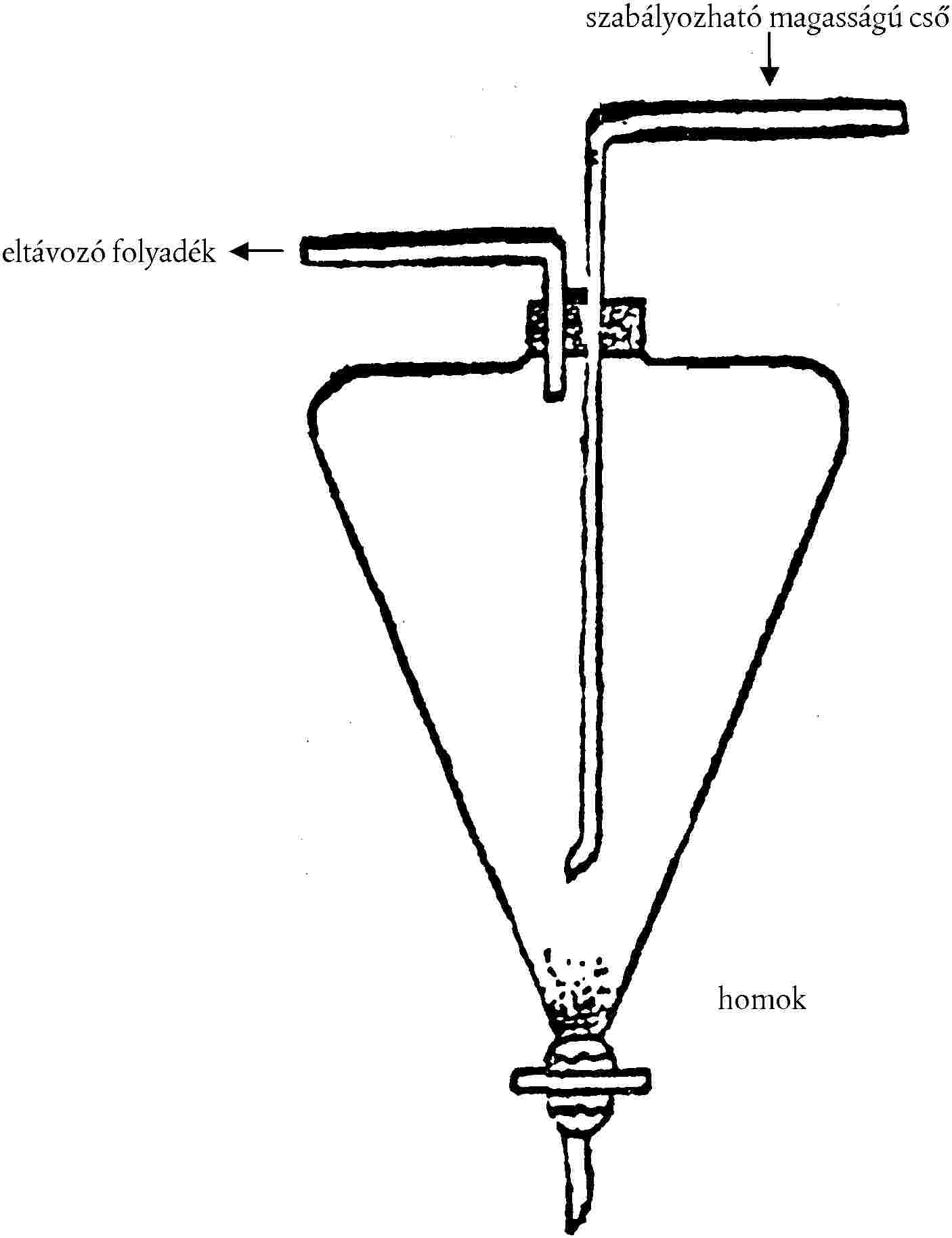 A vízoldhatatlan ásványi szennyeződések folyamatos elválasztásához használt berendezés vázlata