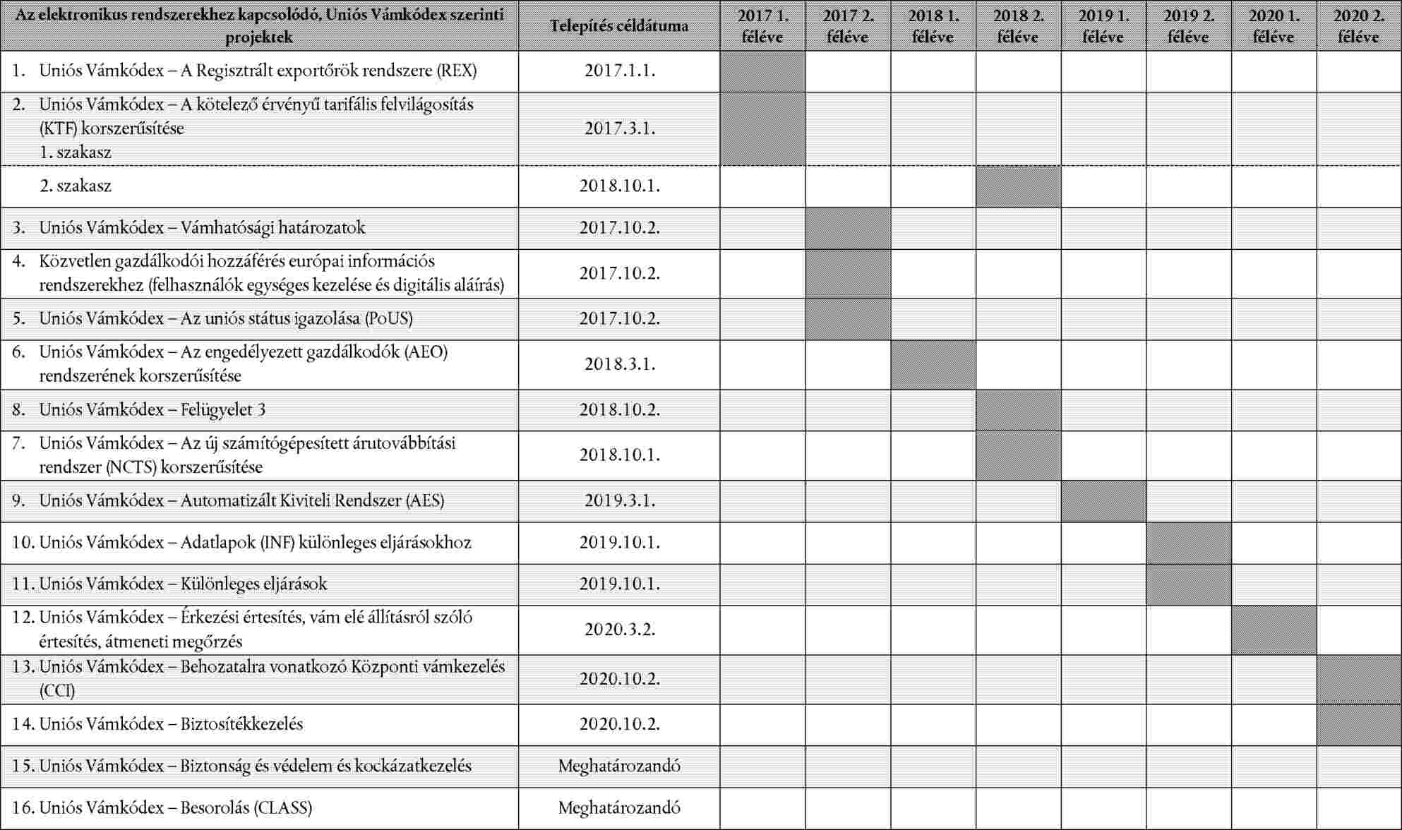 3. A munkaprogram felsorolja a 16. cikk (1) bekezdésben említett azokat az elektronikus rendszereket, amelyek a Vámkódex rendelkezéseinek alkalmazásához szükségesek és amelyek vonatkozásában átmeneti időszak van tervbe véve, a Vámkódex alkalmazásának kezdetétől, de legkésőbb 2020. december 31-ig.