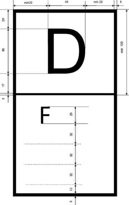 Azokat a járműveket, amelyek nem rendelkeznek a 2008/57/EK irányelv 23. cikkének (1) bekezdése értelmében az összes tagállamra érvényes üzembehelyezési engedéllyel, az üzembe helyezést engedélyező tagállamokat feltüntető jelzéssel kell ellátni. E jelzést a következő rajzok valamelyikén jelölt módon kell feltüntetni, ahol D jelöli az első engedélyt kiadó tagállamot (a példában Németország), és F jelöli a második engedélyt kiadó tagállamot (a példában Franciaország). A tagállamok kódjának feltüntetését a 2007/756/EK határozat 6. függelékének 4. részével összhangban kell elvégezni.