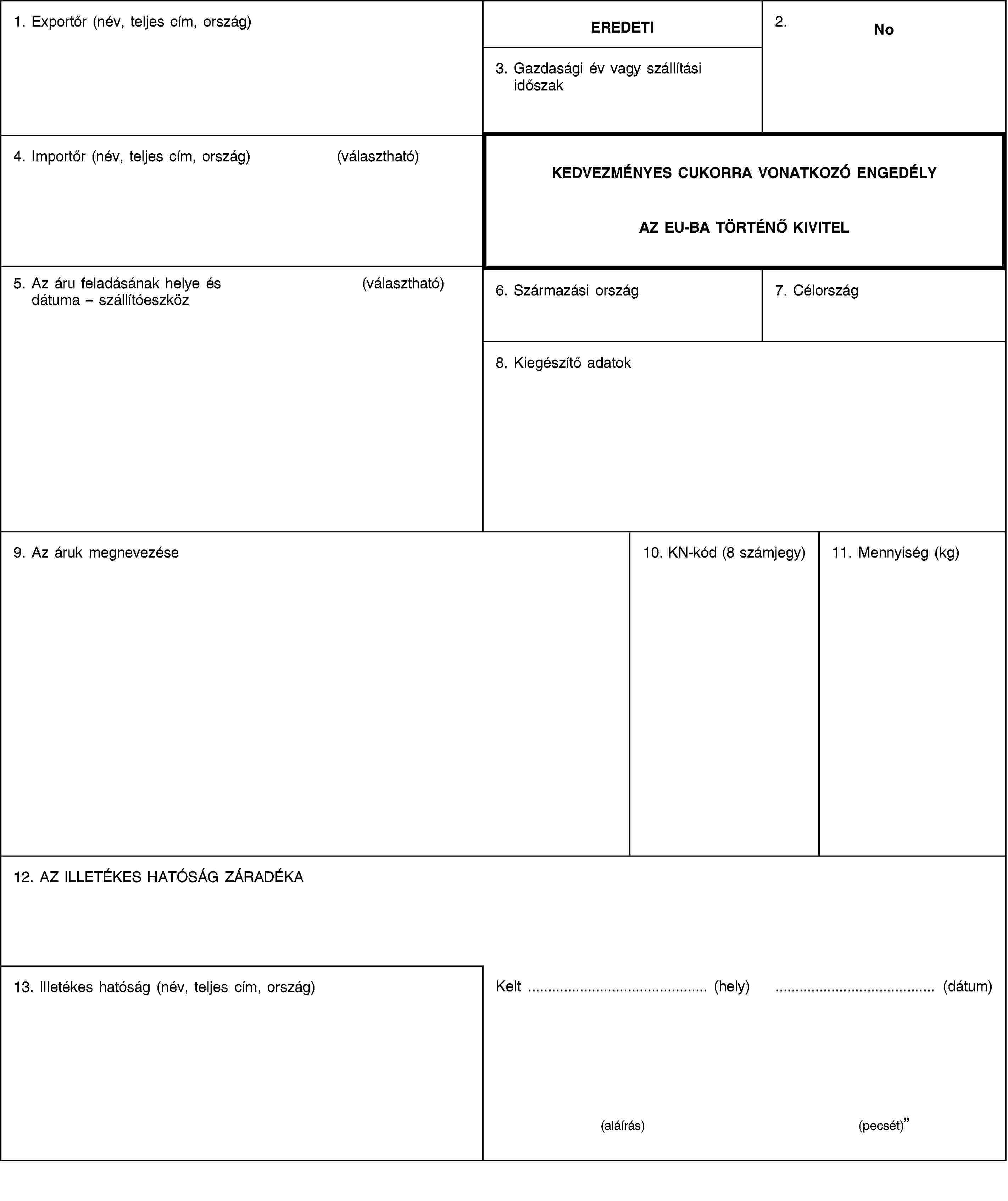 angol nyelven : Application of Regulation (EC) No 950/2006, exceptional import sugar. Serial No (serial number to be inserted in accordance with Annex I)