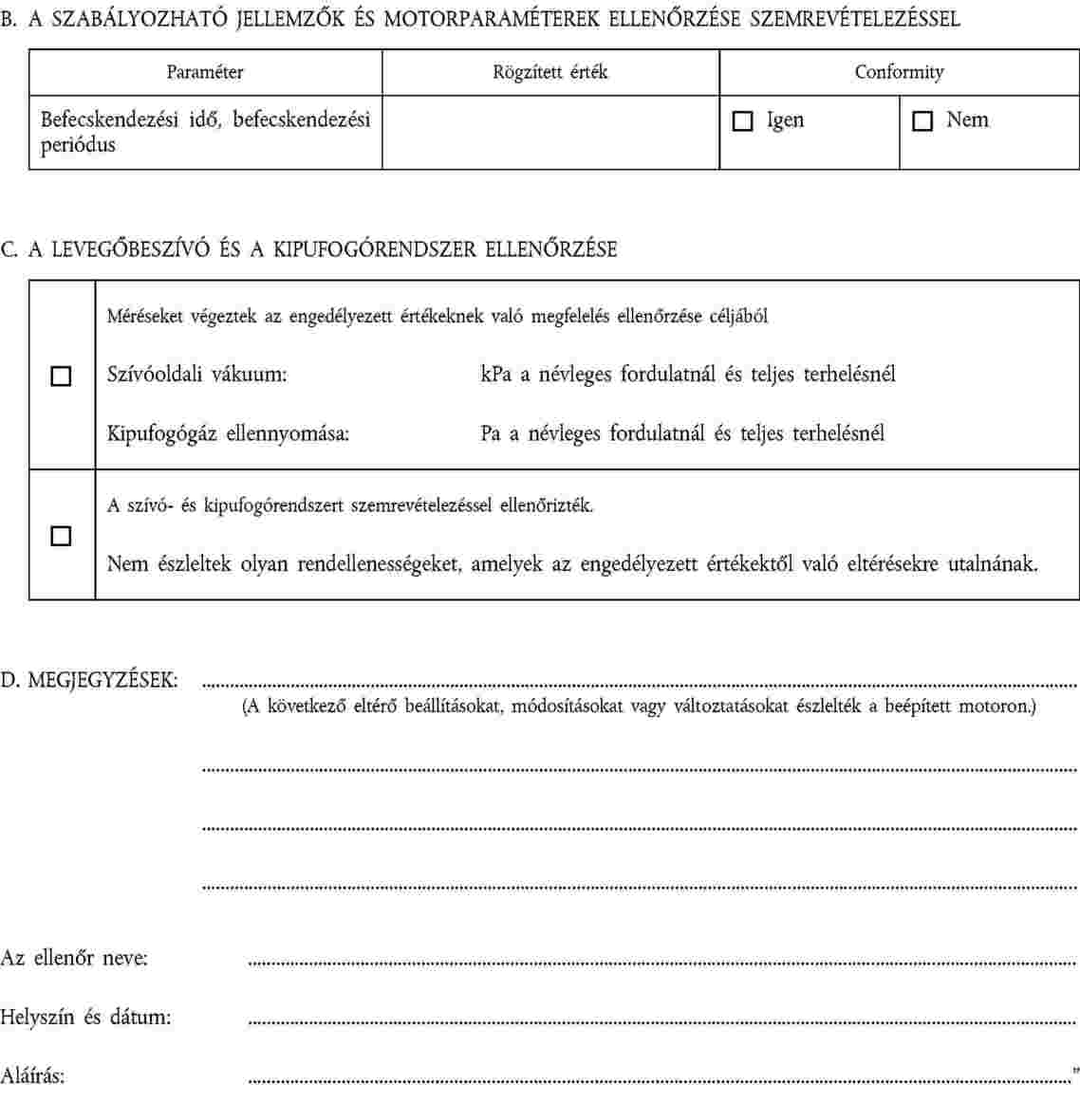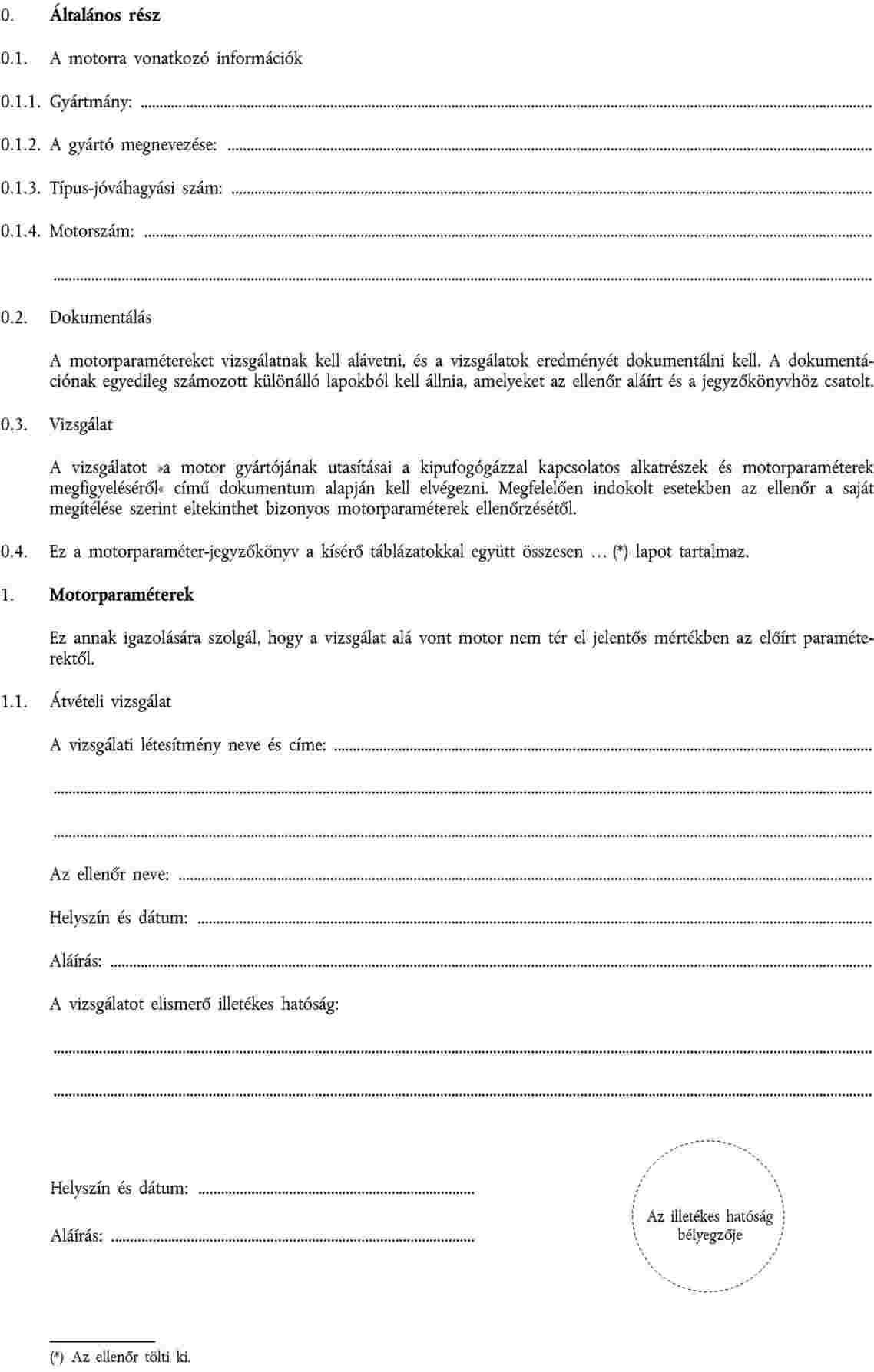V. FÜGGELÉK - MOTORPARAMÉTER-JEGYZŐKÖNYV"