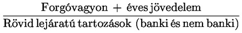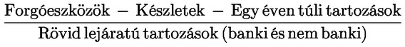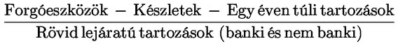 - a gyors arány (likviditás) 1,5-nél kisebb volt, vagy