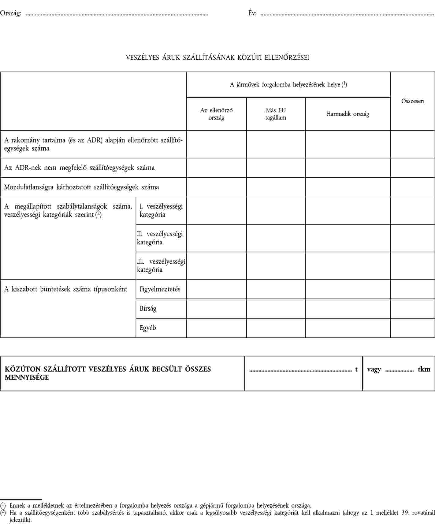 Abban az esetben, ha több súlyos szabálytalanság áll fenn a szállítóegységnél, akkor csak a legsúlyosabb veszélyességi kategória (amint azt ezen irányelv I. mellékletének 39. rovata jelzi) alkalmazandó a jelentéshez (Ezen irányelv III. melléklete).