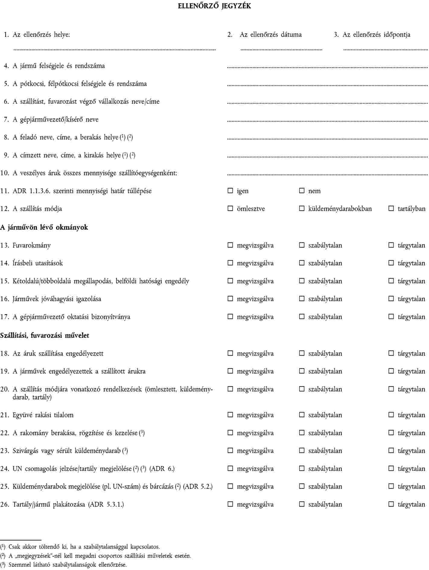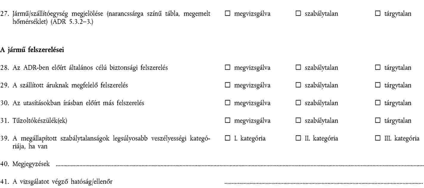4. A jármű nem viszi magával az ADR-ben vagy az írásos utasításokban megkövetelt felszerelést.