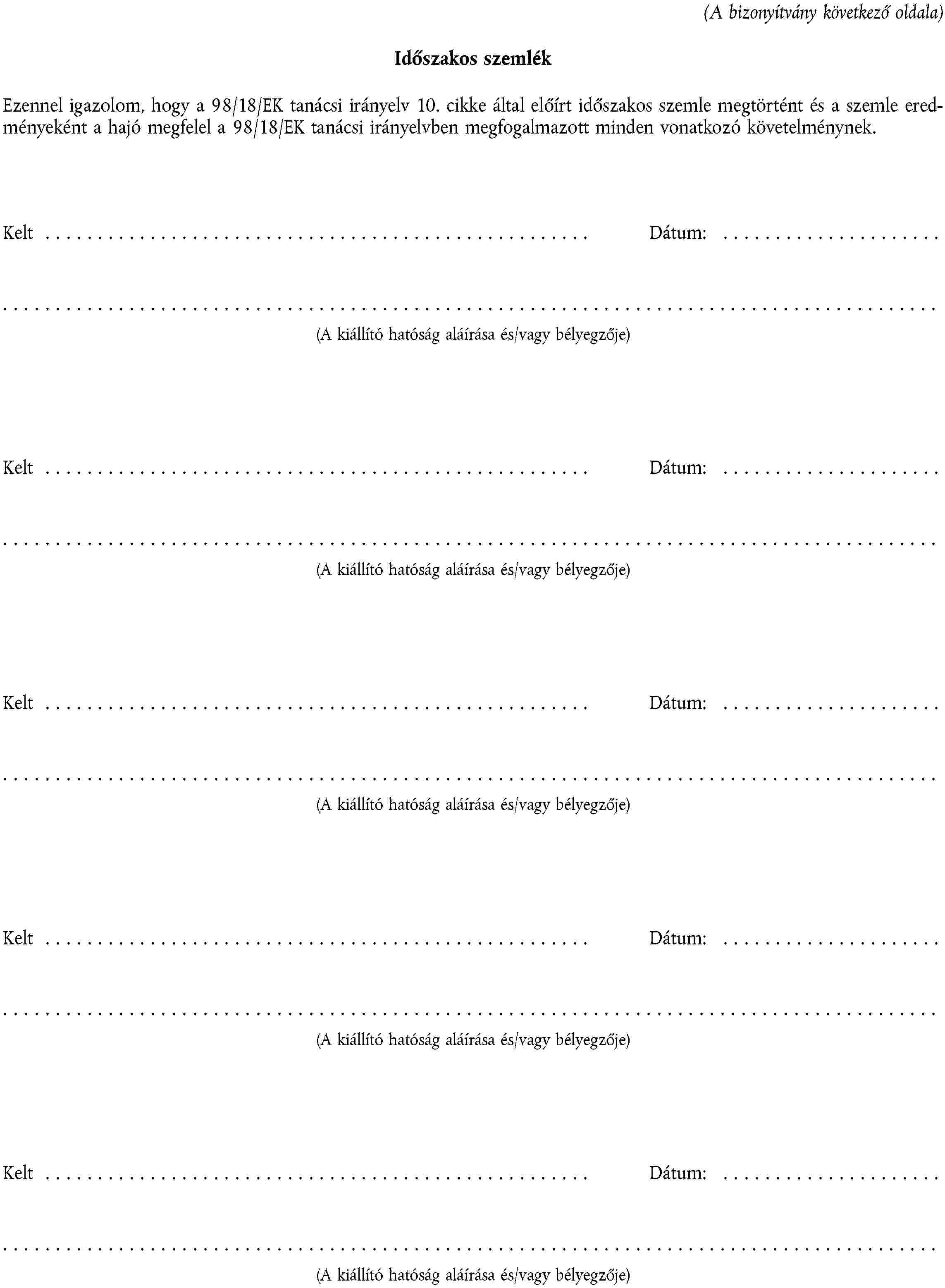 SZEMÉLYHAJÓ BIZTONSÁGI BIZONYÍTVÁNYMINTA
