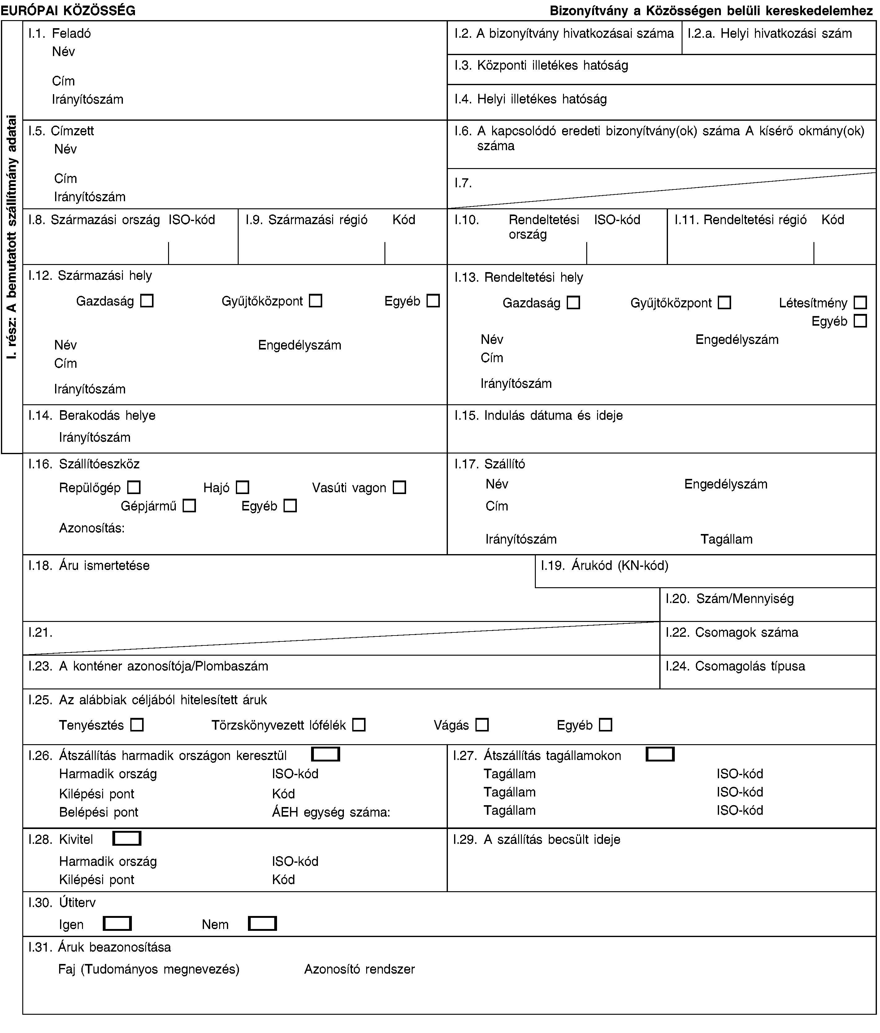a) a gazdaságokat elhagyó lóféléket a 4. cikk (4) bekezdésének a) pontjában előírt azonosító okmány, valamint - ha azokat Közösségen belüli kereskedelemre szánták - a II. mellékletben előírt egészségügyi igazolás kíséri;